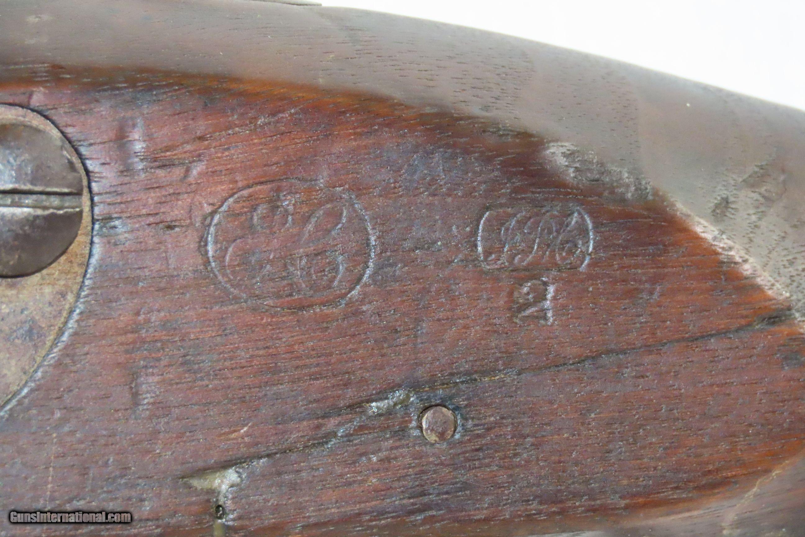 Description: WHITNEY ARMS Antique P. & EW BLAKE Model 1816 “CONE” Conversion MUSKET Converted Flintlock to Percussion Made in 1828 Here we present an antique first contract U.S. P. & E.W. Blake Model 1816 Percussion Conversion Musket, manufactured circa 1828 in New Haven, Connecticut. This musket was one of 15,000 muskets produced in this contract from the period between 1826 and 1830. Philos & Eli Whitney Blake were the nephews of Eli Whitney Sr. and were believed to be the trustees of the Whitney Armory after his death from 1823 until Eli Whitney Jr. coming of age in 1842. The War of 1812 revealed many weaknesses in American muskets. In an attempt to improve both the design and manufacture of the musket, the Model 1812 musket was created. The Model 1816 made further improvements and replaced the Model 1812. The M1816 was a smoothbore, muzzle loading weapon which used a .69 caliber musket ball. It was in production at Springfield (325,000) and Harpers Ferry (350,000) between 1816 to 1844 with around 675,000 muskets produced during this run. Additionally, more than a dozen contractors also made the Model 1816 Muskets, like this one, during its production years, adding more than 146,000 muskets for a grand total of 821,421 M1816 Muskets produced. It saw service during the Mexican-American War and was even pressed into service during the Civil War in both the updated percussion and the original flintlock format, due to the shortage of guns. In the 1850’s, many 1816’s went through the conversion from flintlock to percussion. These were some of the most abundant weapons available to both sides, being in the hands of state militias, in the first days of the American Civil War. The overall condition is good. Strong action. The bore has darkened but remains in good shape for its age. This example has a good stock, although there is a repaired crack around the wrist, of which is stable. A visible cartouche remnant is on the left stock flat. Legible markings. “JC”, for Sub-Ordnance Inspector James Carrington, is stamped on the barrel along with two cartouche marks on the left side of the stock. “US” is marked on the buttplate tang. The lock reads “US/ P. & E.W. BLAKE” & “NEW HAVEN/1828”. Here we have a nice Percussion Conversion musket that’s likely seen action in many conflicts! Own the original! This is a legitimate antique and not a reproduction. Barrel is 30 inches. Caliber: .69 Percussion Conversion Overall condition as seen in photos. Very Fast. Very Safe. FREE SHIPPING WORLDWIDE. Delivered directly to your door by express mail! Guaranteed AUTHENTIC & Includes CERTIFICATE OF AUTHENTICITY. ancestryguns $1800 #227586 SOLD Antique: Yes |