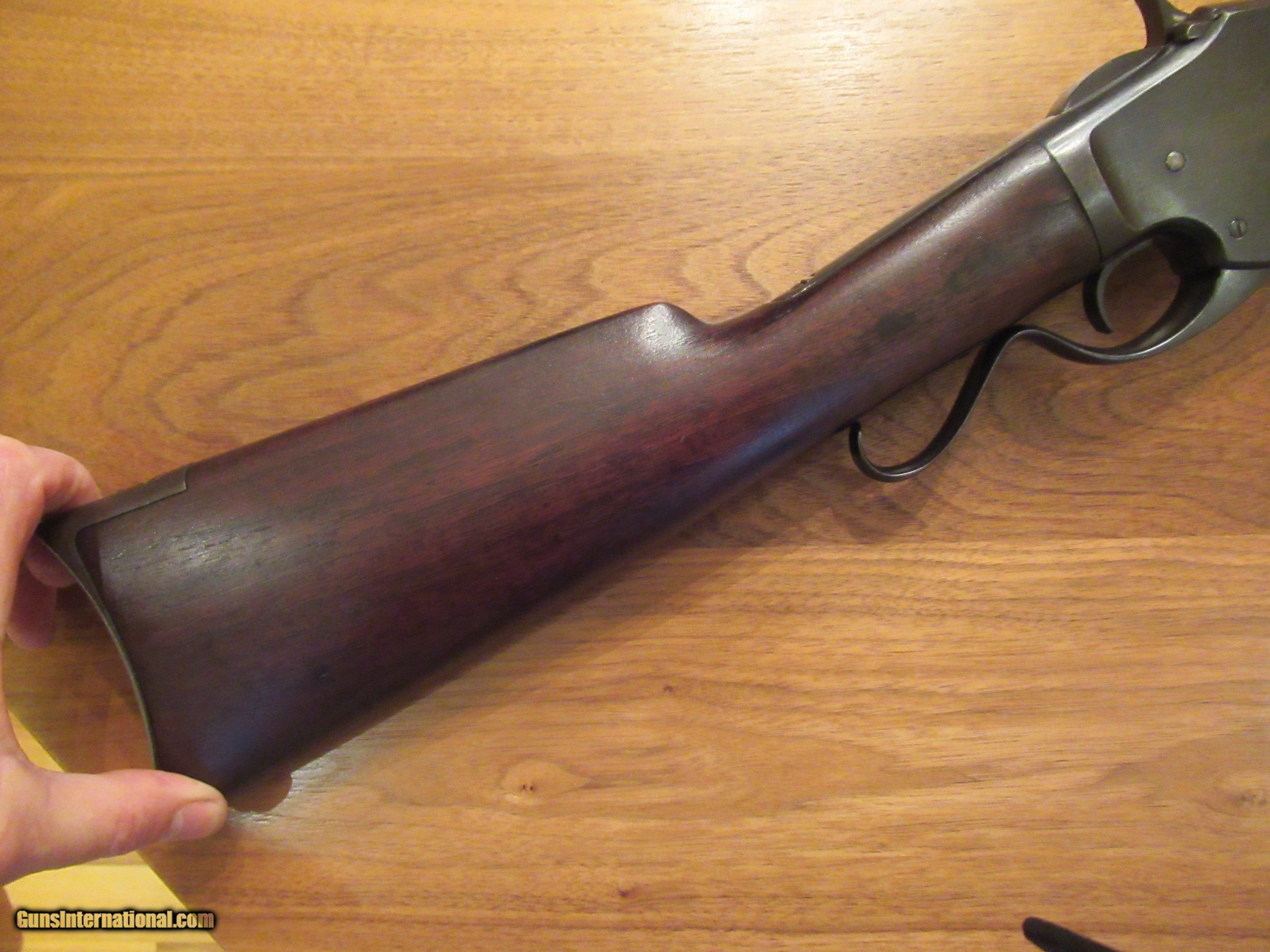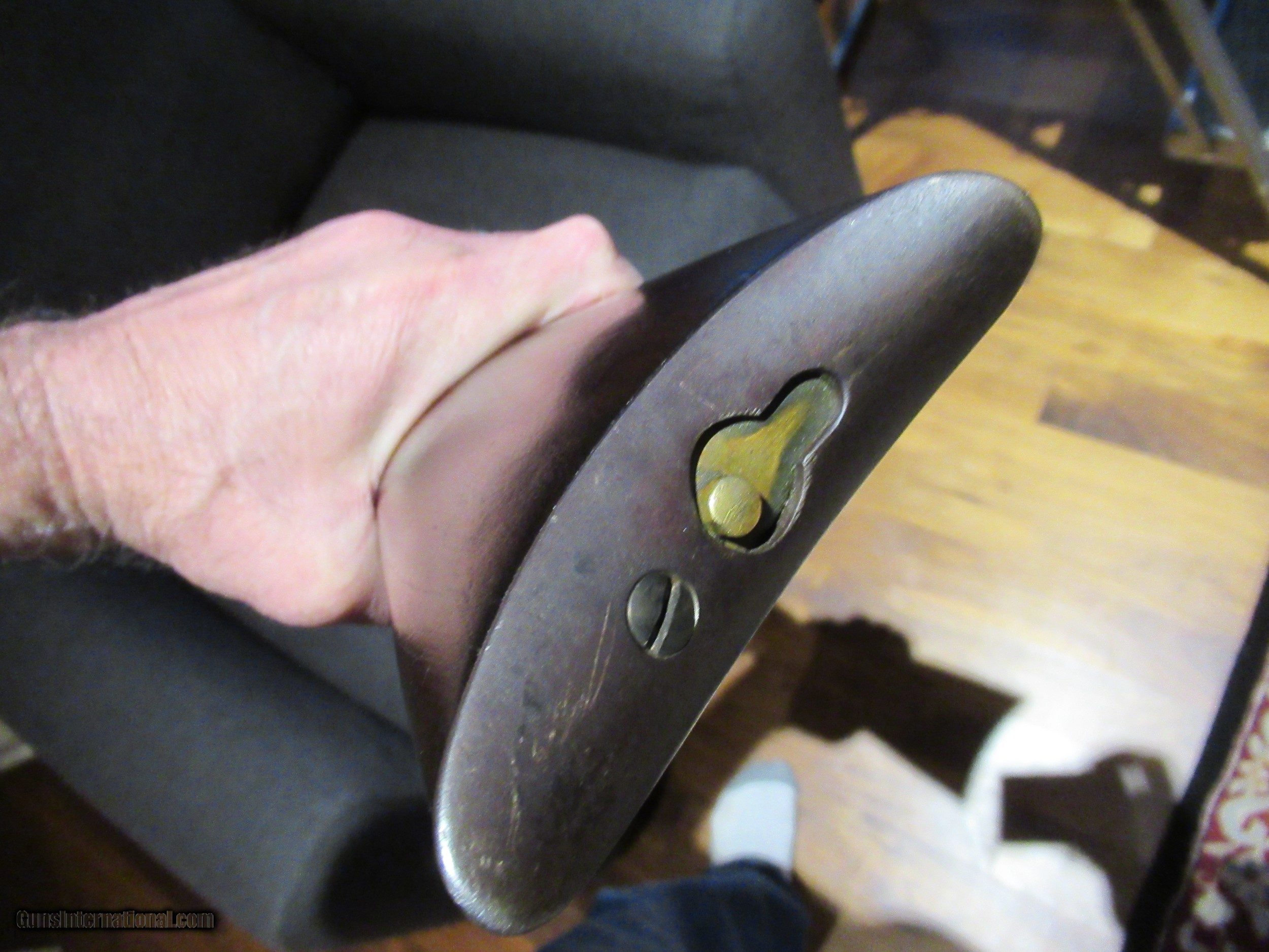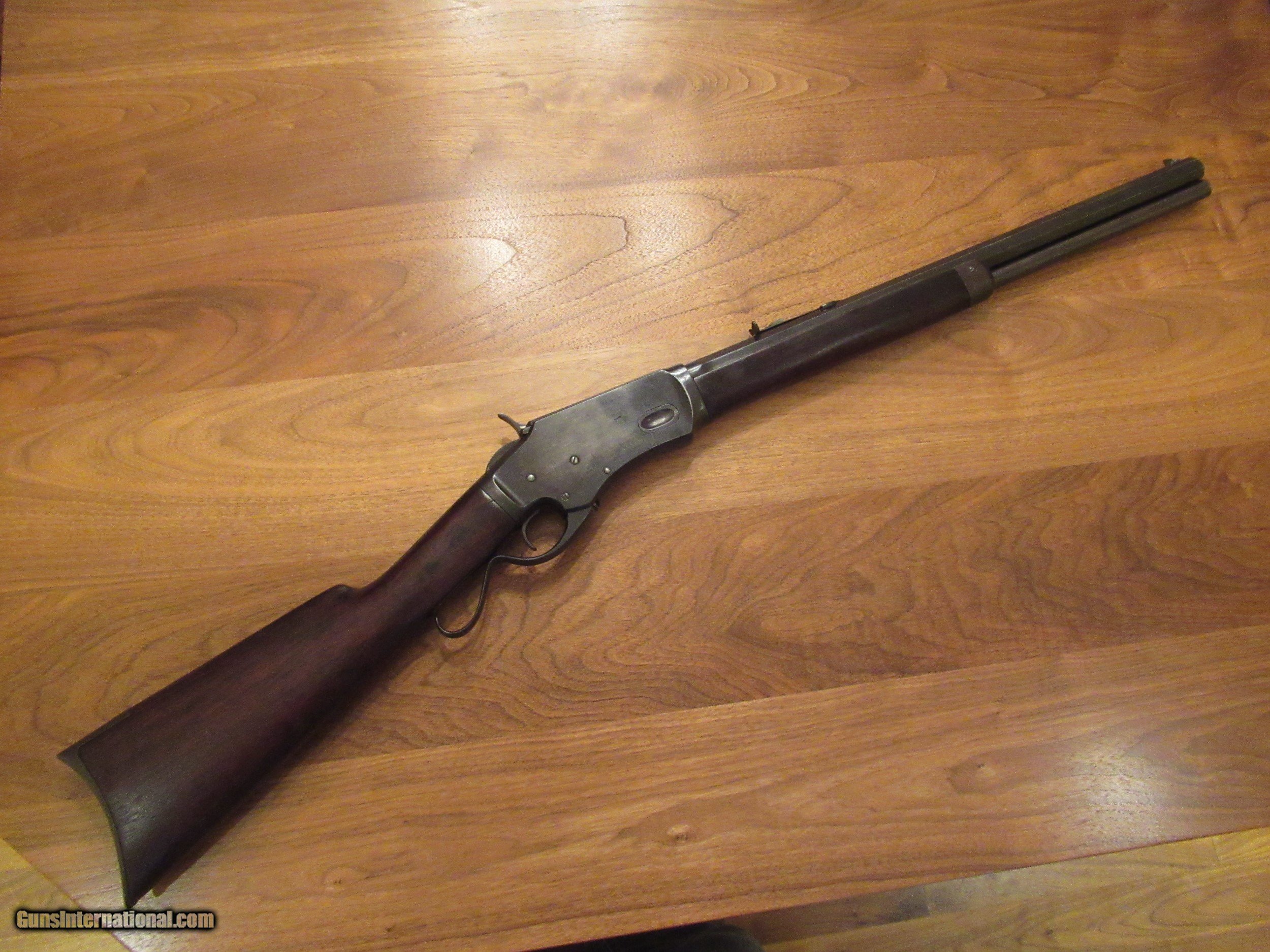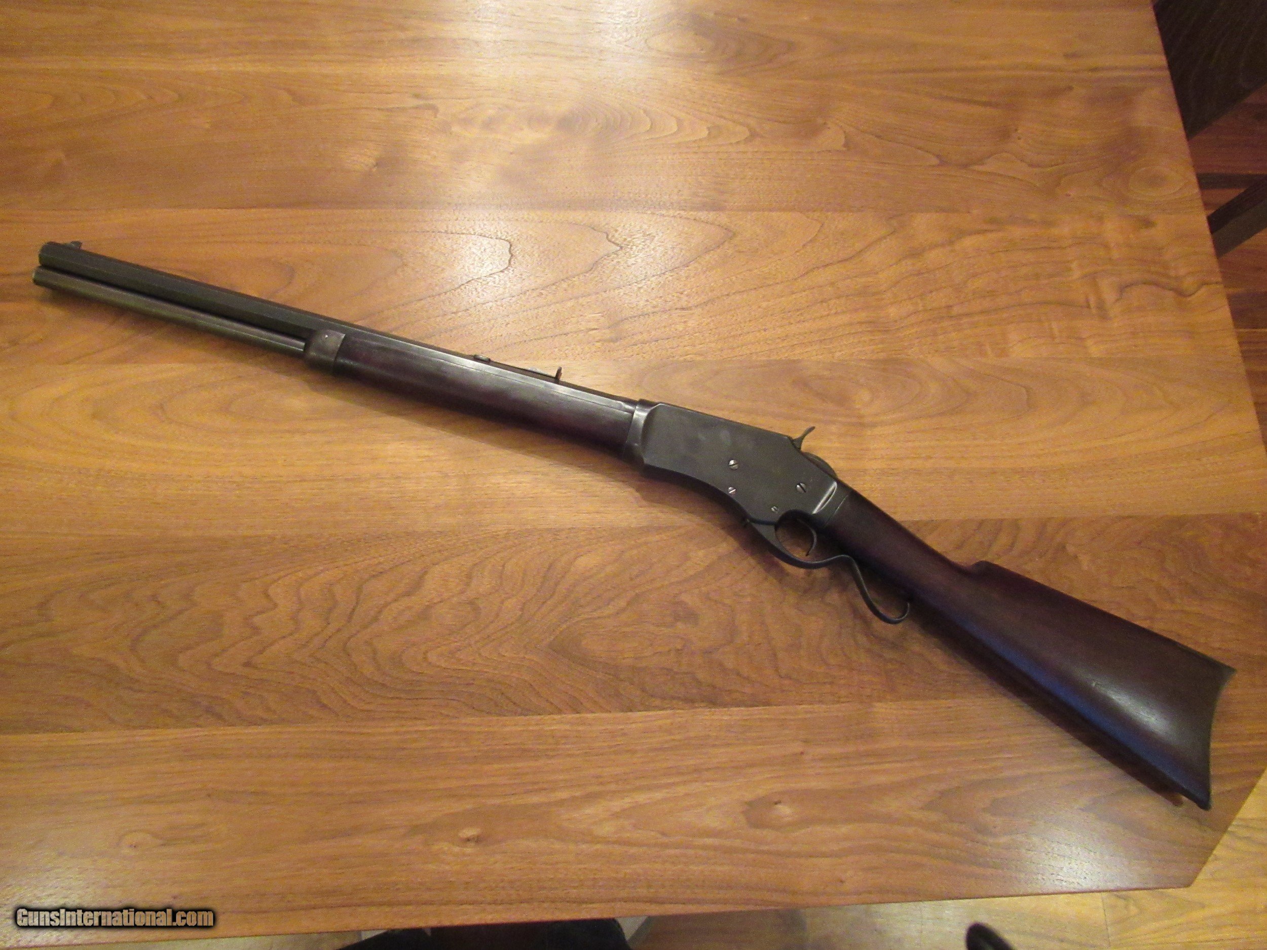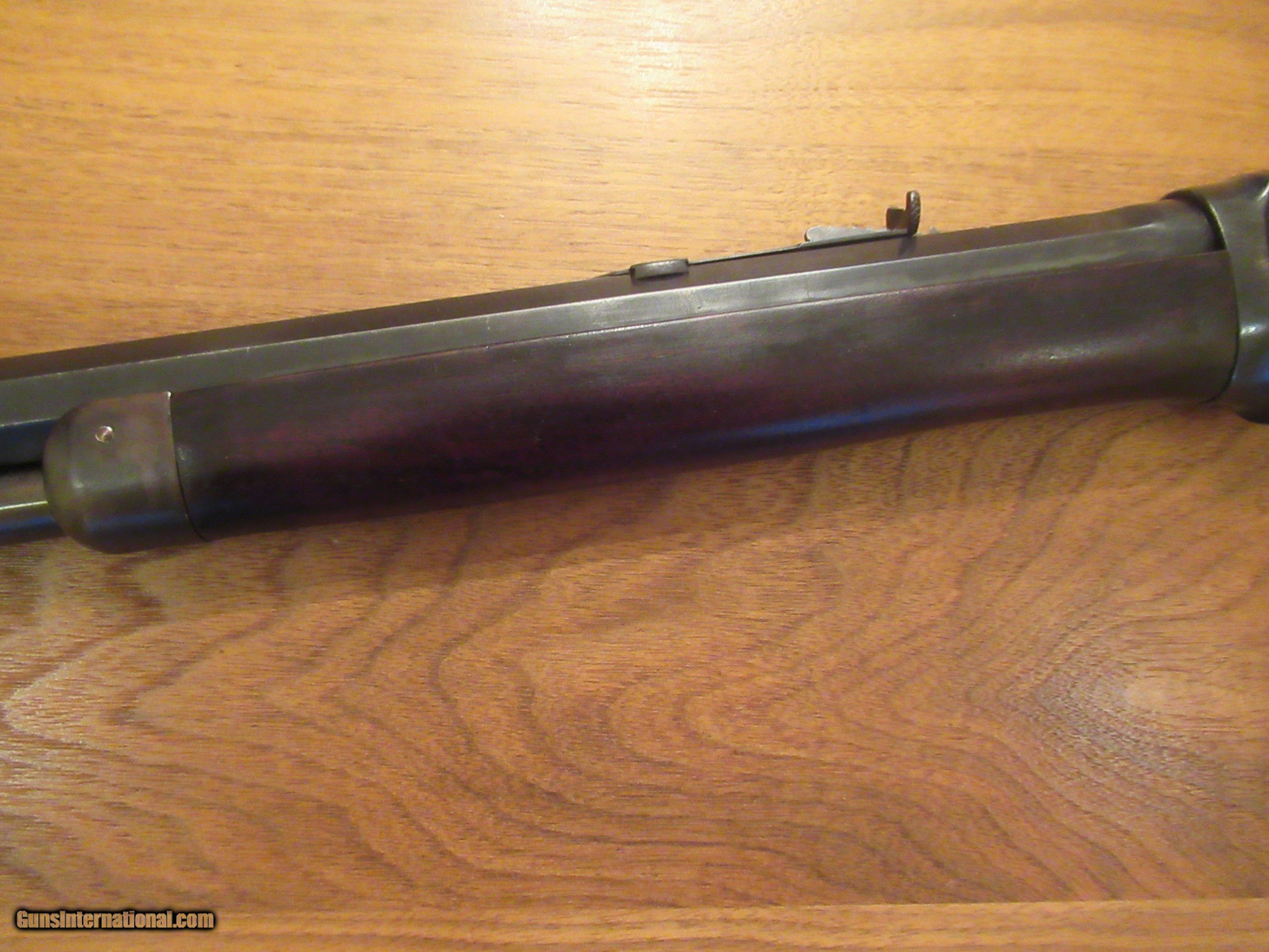 Description: A scarce Whitney Kennedy Lever Action Rifle with only about 15,000 made ending in 1887. Mechanically excellent with a good shootable bore with some typical black powder pitting but strong rifling. Barrel is 20 inches and 44-40 caliber. This gun looks to be an old refinish but nicely done with some lightening to the markings on the tang. The barrel is 20 inches which means it was probably shortened many years ago for better handling as the octagon barrel is substantial. The wood shows an old hard to see repair at tang and the forend looks to have old repairs along the top sides. Whitney Kennedy's are hard to find and if this was all original would bring around $3000. It will make a good shooter or cowboy action gun. Please see the detailed pictures. Shipping is $40. No sales to Alaska or Hawaii or where prohibited. Please email with any questions. SOLD Antique: Yes Rifle Caliber: .44-40 Winchester |