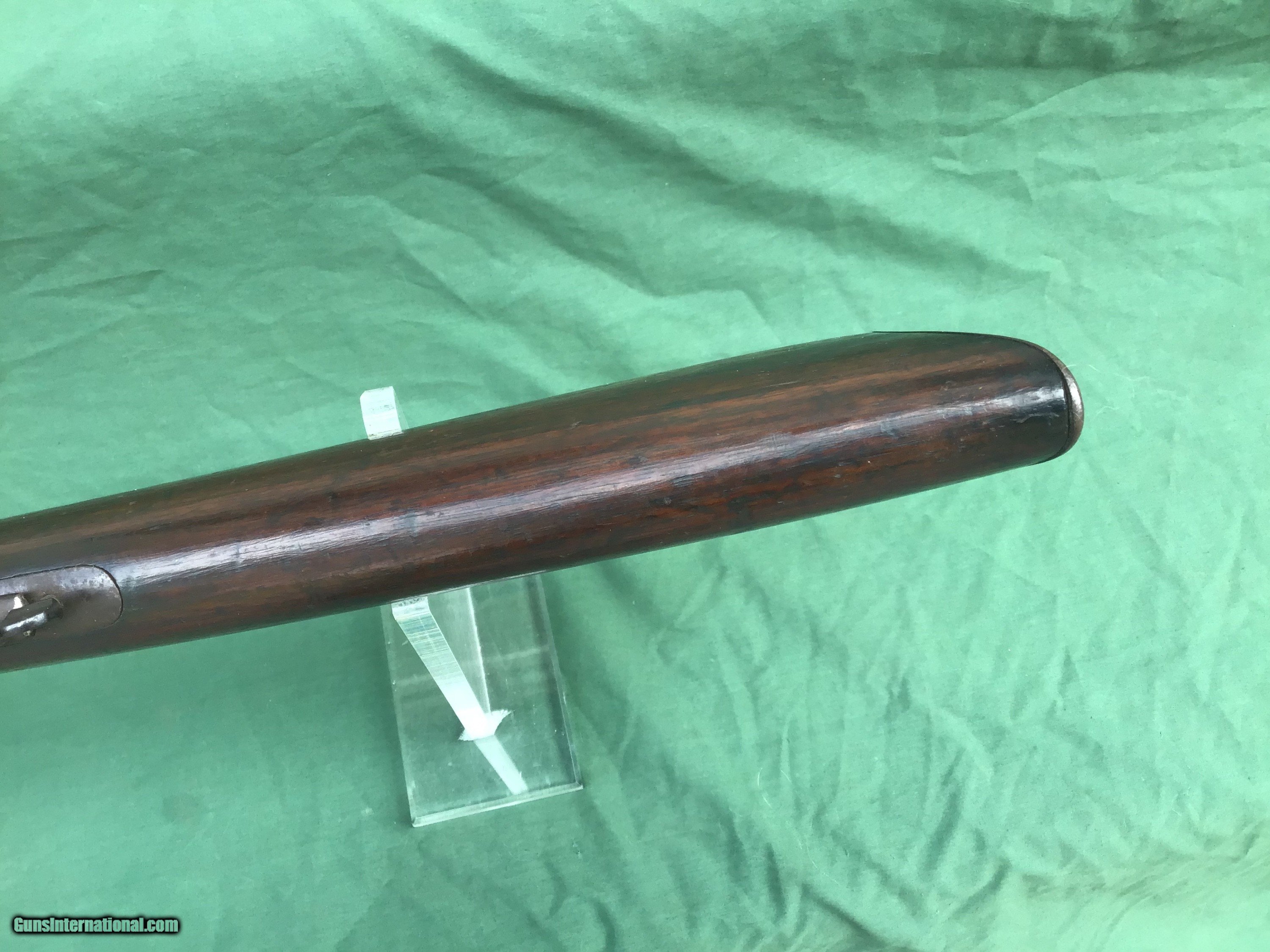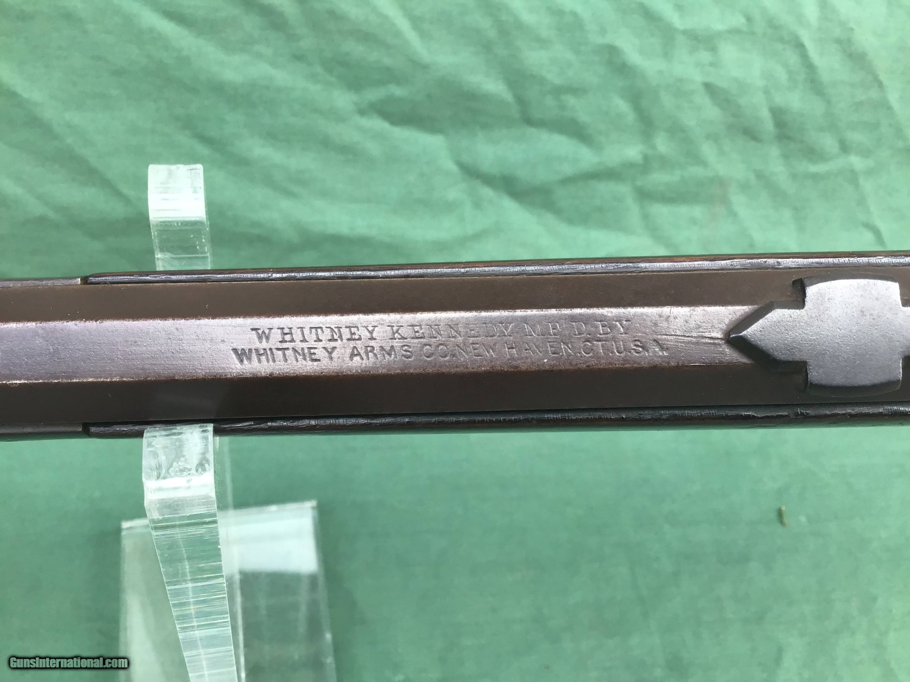 Description: Very rarely seen Whitney Kennedy Small Frame rifle in 32-20. 24" octagon barrel and full magazine. Original front and rear sights. Very nice barrel address markings. I will rate the bore a 6.5 maybe a 7 on a scale from 1 to 10. This rifle has an overall nice chocolate brown patina throughout. Action functions nicely. Both forend and buttstock are in good condition showing normal handling marks, scratches, scrapes, and dings. All in all a desirable small frame Whitney Kennedy that has not been abused. Antique and can be shipped directly to your doorsteps. Please feel free to ask questions. SOLD Antique: Yes |