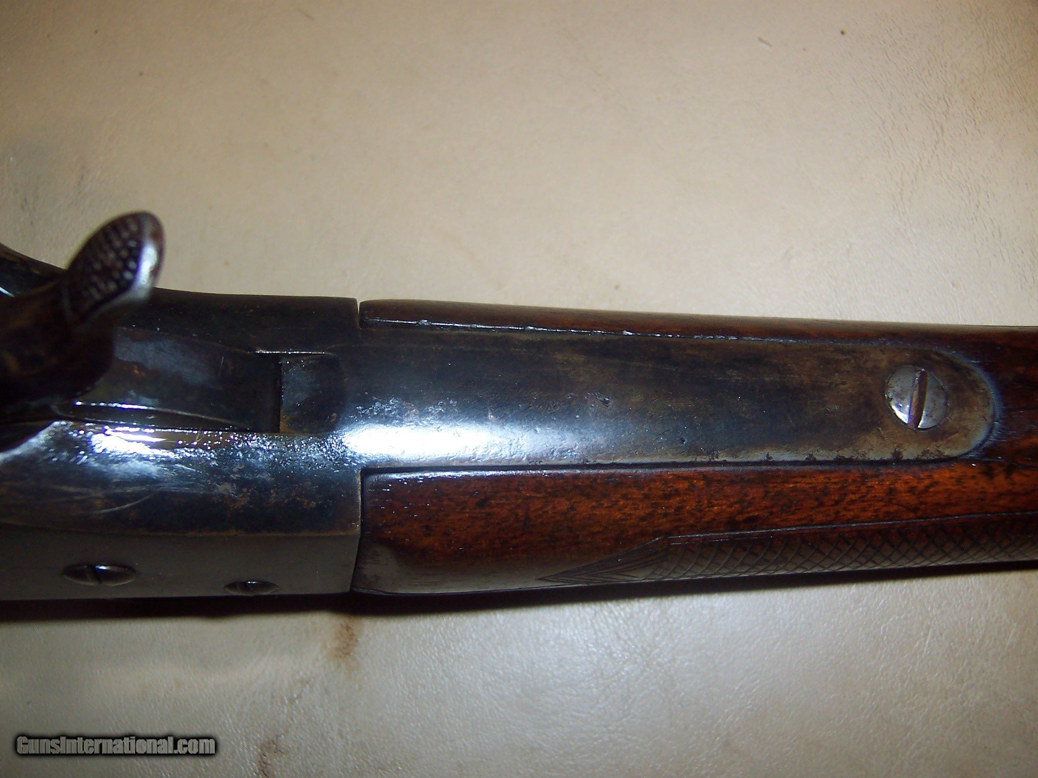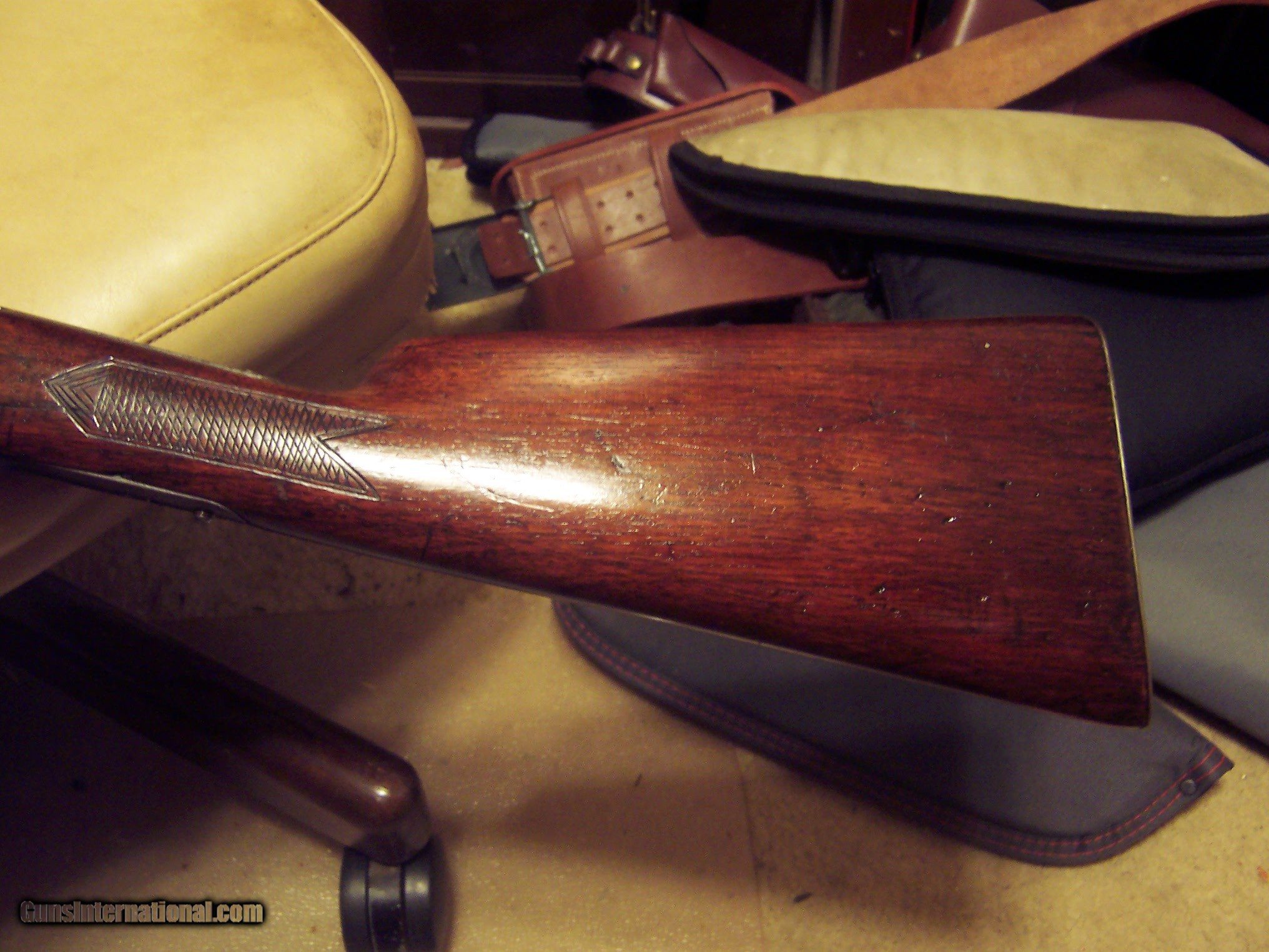 Description: 12 gauge 29 inch pitted bore barrel marked pat may26 74 phoenix cal. 12 ;;;;;;;;;; works fine in dry fire ;;patina finish stock sanded added checkering to grip area crack on left side of grip area see photo antique looks like steel barrel SOLD Antique: Yes Manufacturer: whitney Model: phoenix |