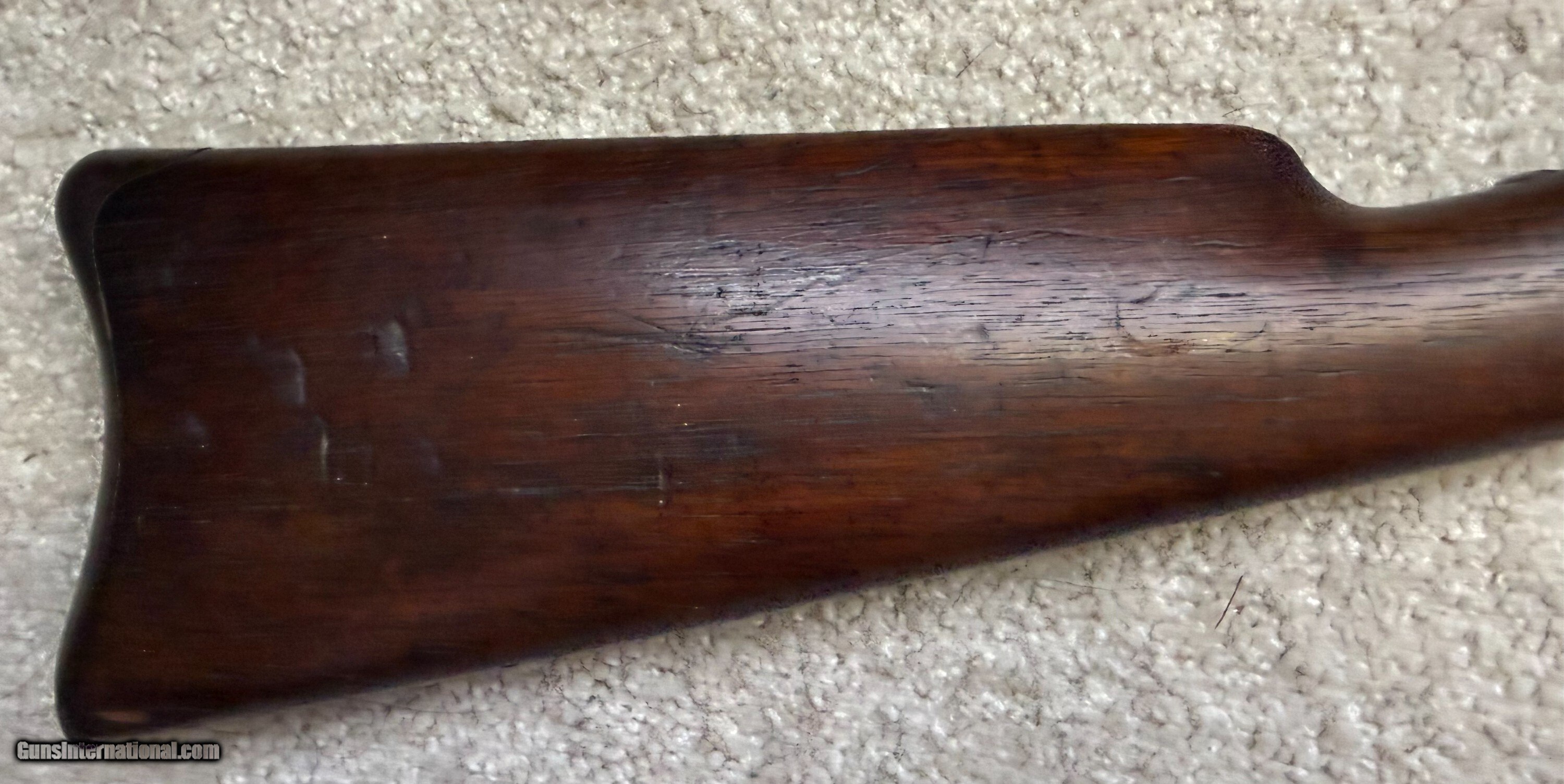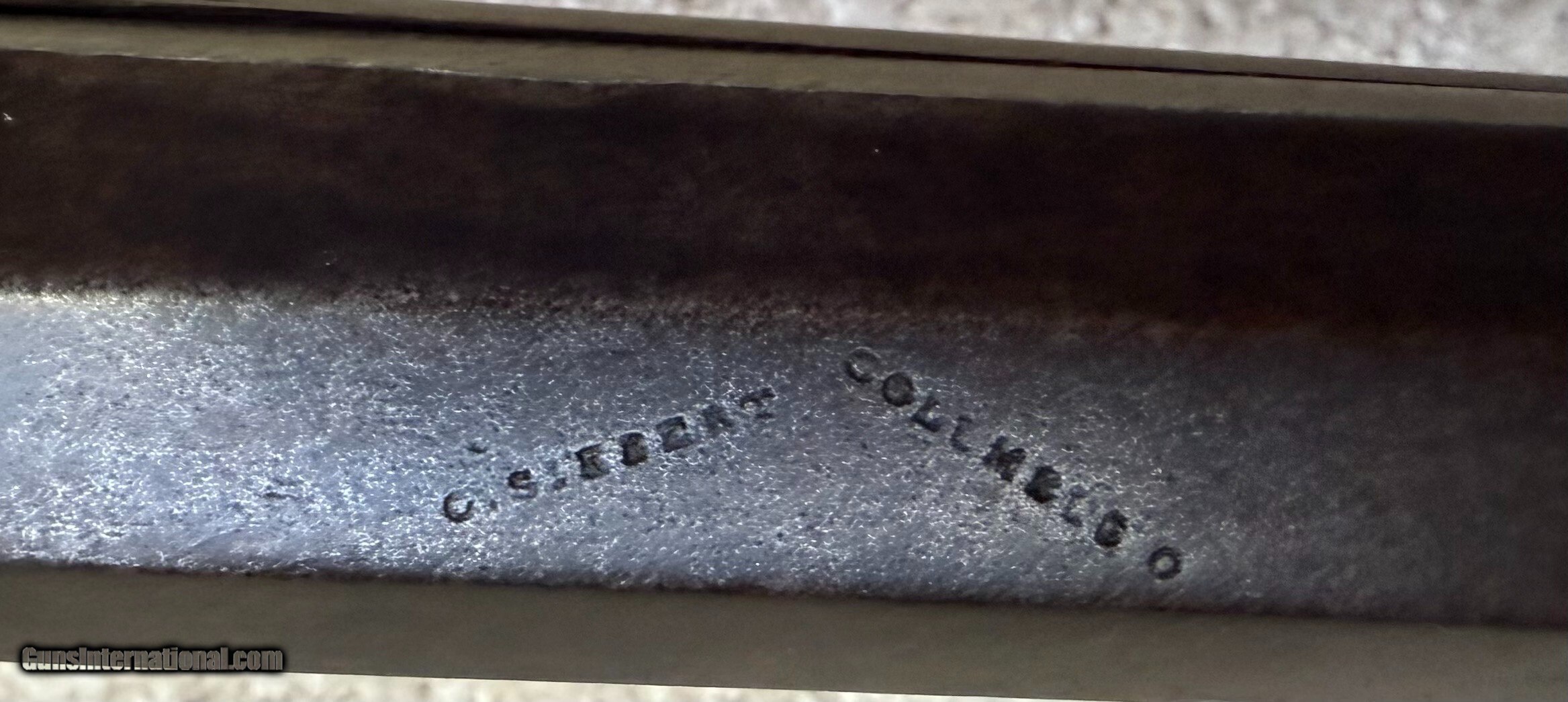 Description: An interesting conversion of a Whitney Rolling Block rifle. Overall it is in good untouched condition, and displays a nice patina. The heavy octagon barrel measures out to 34 inches (from breech to the end of the barrel), and is chambered for an unknown .38 cal. CF cartridge. The rifling is decent, though shows wear that is common with these old black powder guns. Interestingly, the barrel is marked “C SIEBERT COLUMBUS O”, indicating that this was the gunsmith who performed the conversion. Not much can be found, but as per American Gunsmiths by Frank Sellers, brothers Charles M. Siebert and Christian Siebert were active in Columbus, Ohio from 1851 until 1886; it appears they were a family of gunsmiths. The action functions as it should. The wood is solid, and there are no wobbles. All in all, a cool rolling block that likely saw the frontier. The payment methods listed are the only ones that I will accept. Fully insured shipping is included in the price. Antique: Yes Price: $1,450.00 Buy Now Contact Seller |
