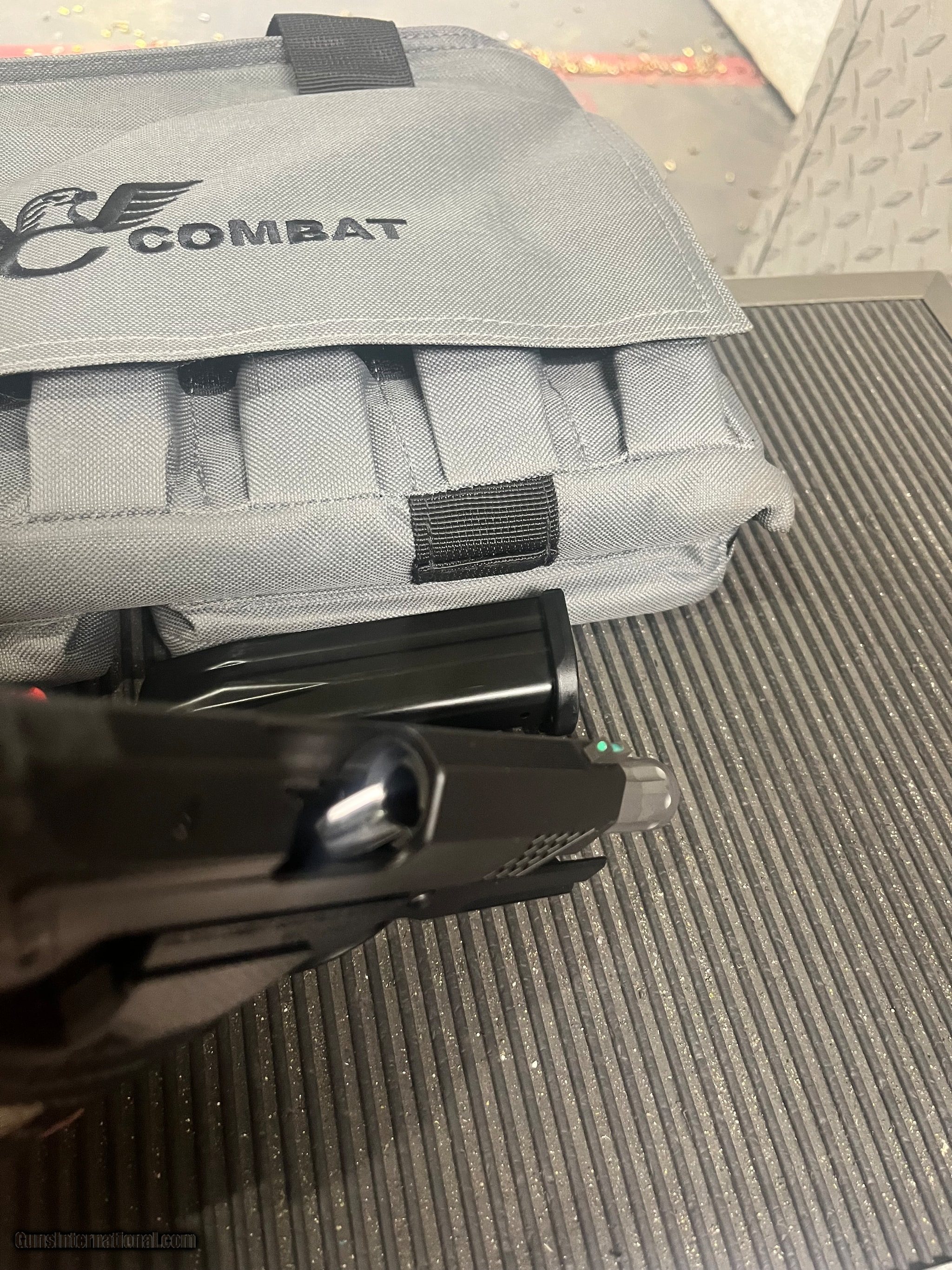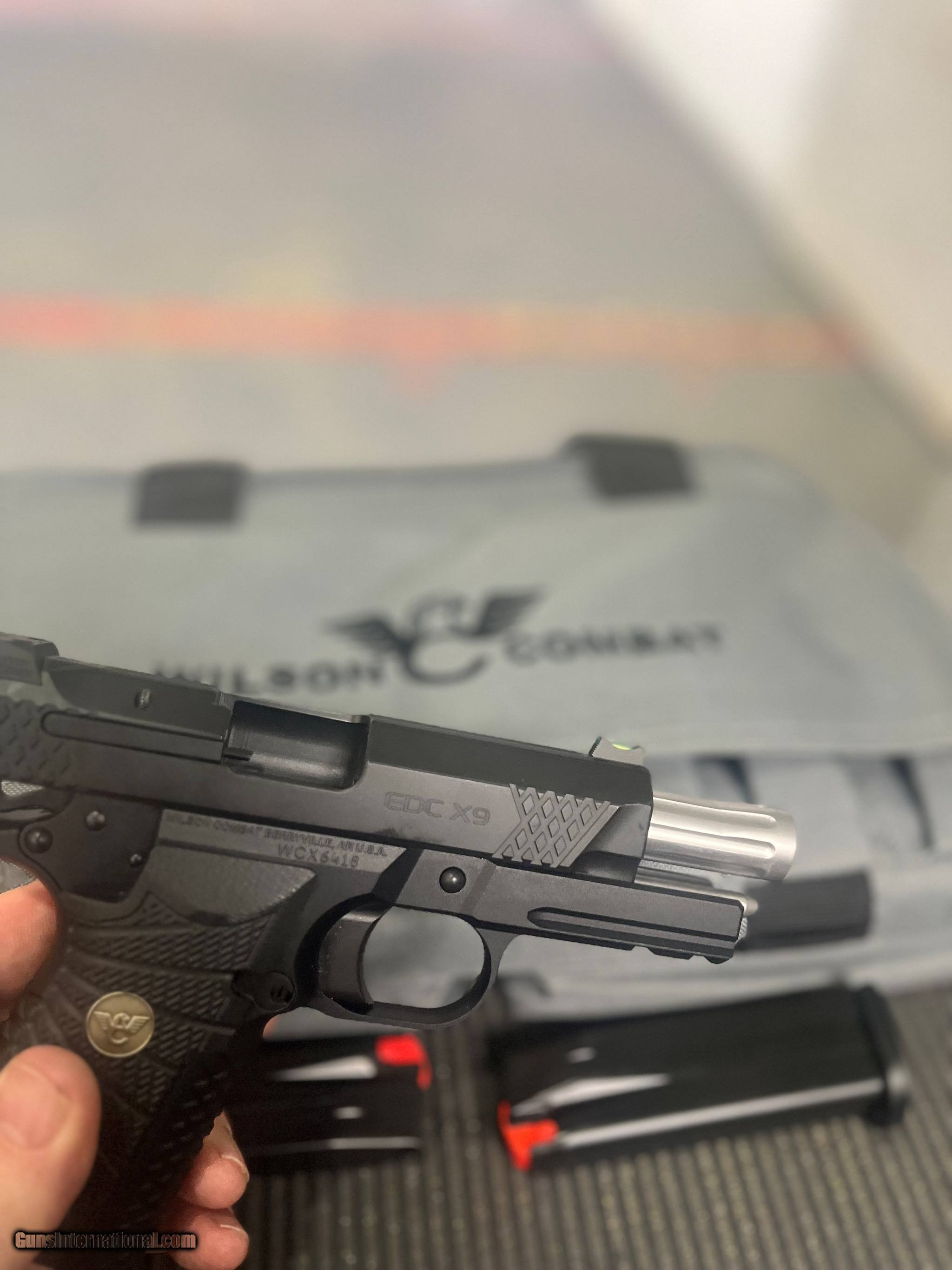 Description: Guns Listing ID: 864127 Like new! Hard to find and in high demand. Comes with the orginal soft case, 2 mags and all of the paperwork and accessories. Wilson Combat has redefined the defensive handgun with the EDC X9, a modern hybrid of our EDC 9 1911 slide assembly mated with the all new high-capacity X-frame. This groundbreaking design combines the accuracy, ergonomics and trigger pull of the classic 1911 design with enhanced reliability, and concealable, high capacity performance. Designed by Bill Wilson and Wilson Combat engineers, the X-frame is a 15-round, high capacity 9mm 1911 frame that is similar in size to a traditional compact, single stack 1911. The X-frame is machined at Wilson Combat from T6-7075 aluminum and accepts a high capacity magazine with a grip that is smaller in circumference than a standard 1911 while retaining traditional 1911 controls. The EDC X9 15 and 18-round, double column magazines were developed jointly with Mec-Gar, industry leaders in double column magazine design. SPECIFICATIONS High-Capacity Compact Size Aluminum X-Frame with Reliability Enhanced Frame Rails Unique X-TAC Frontstrap/Mainspring Housing Treatment Concealment Bullet Proof® Hammer Bullet Proof® Thumb Safety 3 ½# – 4 ½# Crisp Trigger Pull with Lightweight Medium Pad Bullet Proof® Magazine Release Black G10 Aggressive Starburst Grips with Pewter Medallions 4” Stainless Steel Tri-Top Slide with External Extractor Black DLC Finish on Slide Unique X-TAC Rear & Front Cocking Serration Treatment on Slide Heavy Machine Chamfer on Bottom of Slide Elevation Adjustable Tactical Battlesight with Fiber Optic Front Sight with 4-40 Hex Head Cap Screw 4” Stainless Cone Barrel with Reliability Enhancing Lock-up, Flush Cut Reverse Crown Fluted Chamber Fluted Barrel 30 LPI Slide Top Serrations 40 LPI Serrated Rear of Slide Carry Cuts/Ball Endmill Cuts 2 18-Round Capacity Magazines With Optional Magwell 2 15-Round Capacity Magazine Without Magwell SOLD Manufacturer: WILSON COMBAT Model: EDC X9 Caliber Info: 9MM LUGER (9X19 PARA) Condition: Used - Non-Certified Barrels: 4 BARREL Finish: BLUE AND BLACK |