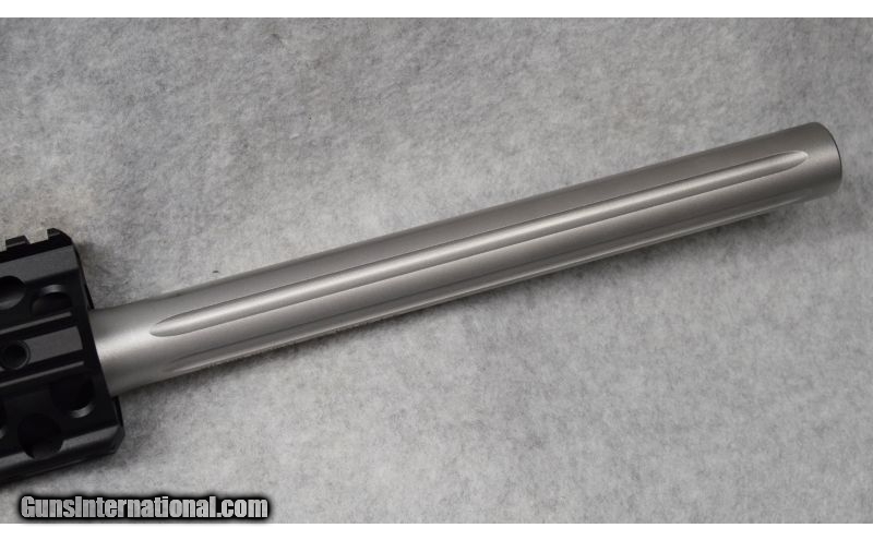 Description: Includes soft case and magazine. SOLD Caliber Info: .223 Wylde. Metal Condition: Excellent. Wood Condition: Excellent. Bore Condition: Bright shiny with crisp rifling. Barrels: 18½" fluted stainless. Stock: Adjustable synthetic. Fore End: Aluminum handguard. Butt Pad: Rubber. Weight: 6-lbs., 14-ozs. Sights: Picatinny rail. Item Location: Fort Worth, TX |