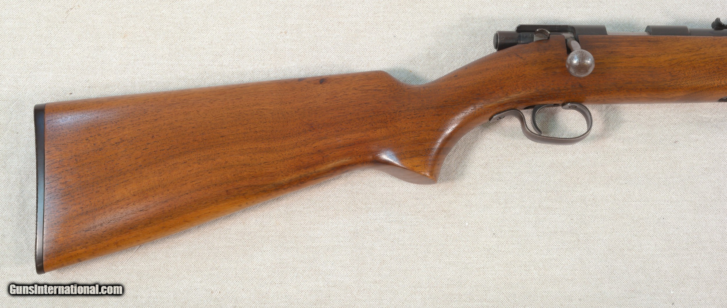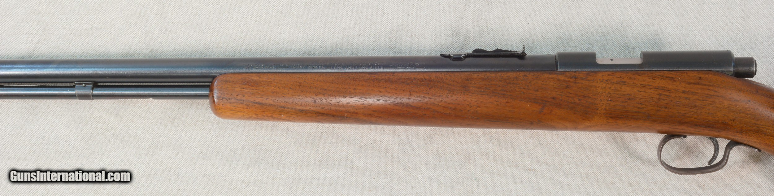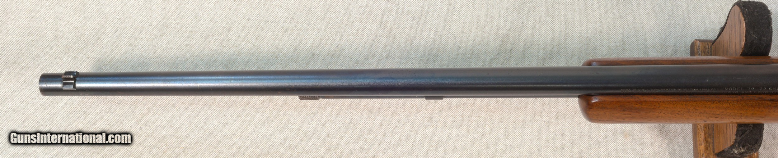 Description: Here we have an honest Winchester Model 72 bolt action rifle chambered in .22 long rifle caliber. The Winchester Model 72 is an American bolt-action .22 caliber sporting rifles produced by the Winchester Repeating Arms Company from 1938 to 1959. Available in a number of configurations, the Model 72 was Winchester's first design for a tube magazine-fed rifle. This fine rifle has some high edge wear and retains almost all of it's original finish. The rifle has very few marks of any kind. There are a very few small marks on the barrel and some blue has been lost at the muzzle. The 25 inch barrel has a very good bore with strong rifling and a dovetailed front sight with an elevation adjustable rear. The trigger guard finish has worn to a warm grey patina. The butt plate has no cracks or chips. This rifle has been well cared for over the years and would make a strong addition to an existing collection or a great way to start a new collection. PRICE: $495 We are Antique & Modern Firearms in Lexington, KY, dealer of fine firearms since 1974. PH. 859-276-1419 We Buy, Sell and Trade Firearms & Knives. Have a Individual Firearm, Firearms Collection, or Firearms Estate to sell, let us know, we can buy or consignment sell it for you. NOTE: No additional fee for a Credit Card payment. SOLD Rifle Caliber: .22 Long Rifle Manufacturer: Winchester Model: 72 Serial Number: NSN Barrel Length: 25 inches Condition: Very Good Metal Condition: Very Good Wood Condition: Very Good Bore Condition: Very Good |
