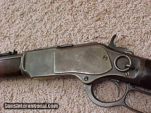 Description: A fine Winchester 1873 saddle ring carbine, SN 398xxx(1891). The gun retains a good 60% original blue, and faded case colors on the frame. The bore shows some wear but no pits or bulges. A good cleaning would help. The wood was apparently ordered specially because it is tiger maple, not a regular wood for model 3 1873's. It really shows off the gun to its advantage.SOLD!!! SOLD Antique: Yes |