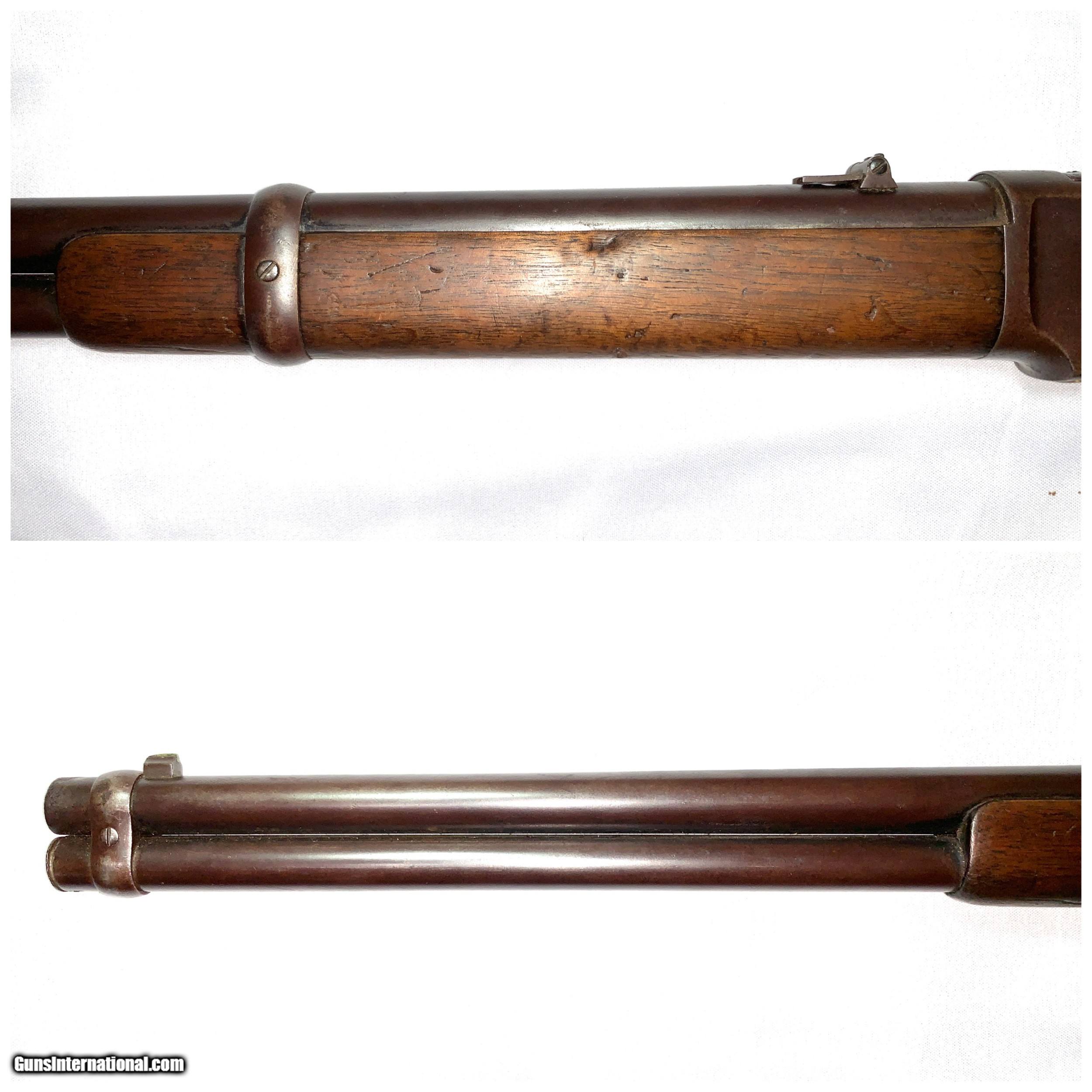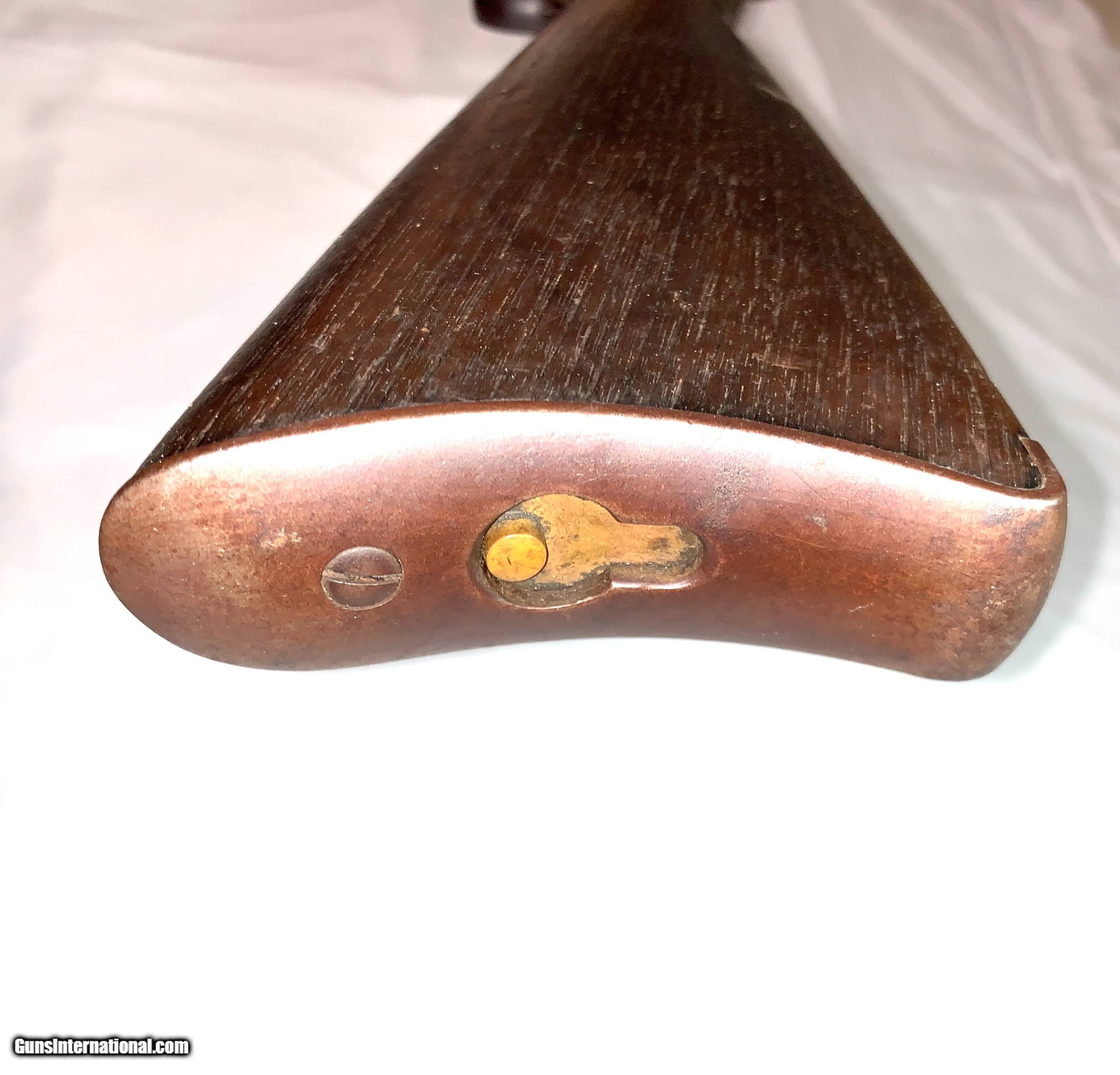 Description: This saddle ring carbine left the fractory in 1881. It is in good all original condition with 85% original blue, and an excellent bore. The wood stocks are much better than you usually see, with no cracks and only a few superficial dents. These carbines chambered in 44/40 are the most desirable configuration and rarely seen in this condition,especially in a pre 1882 antique. SOLD Curio/Relic: Yes Antique: Yes Rifle Caliber: .44-40 Winchester Manufacturer: Winchester Model: 1873 Serial Number: 68271 Barrel Length: 20 Condition: Good Metal Condition: Good Bore Condition: Good |