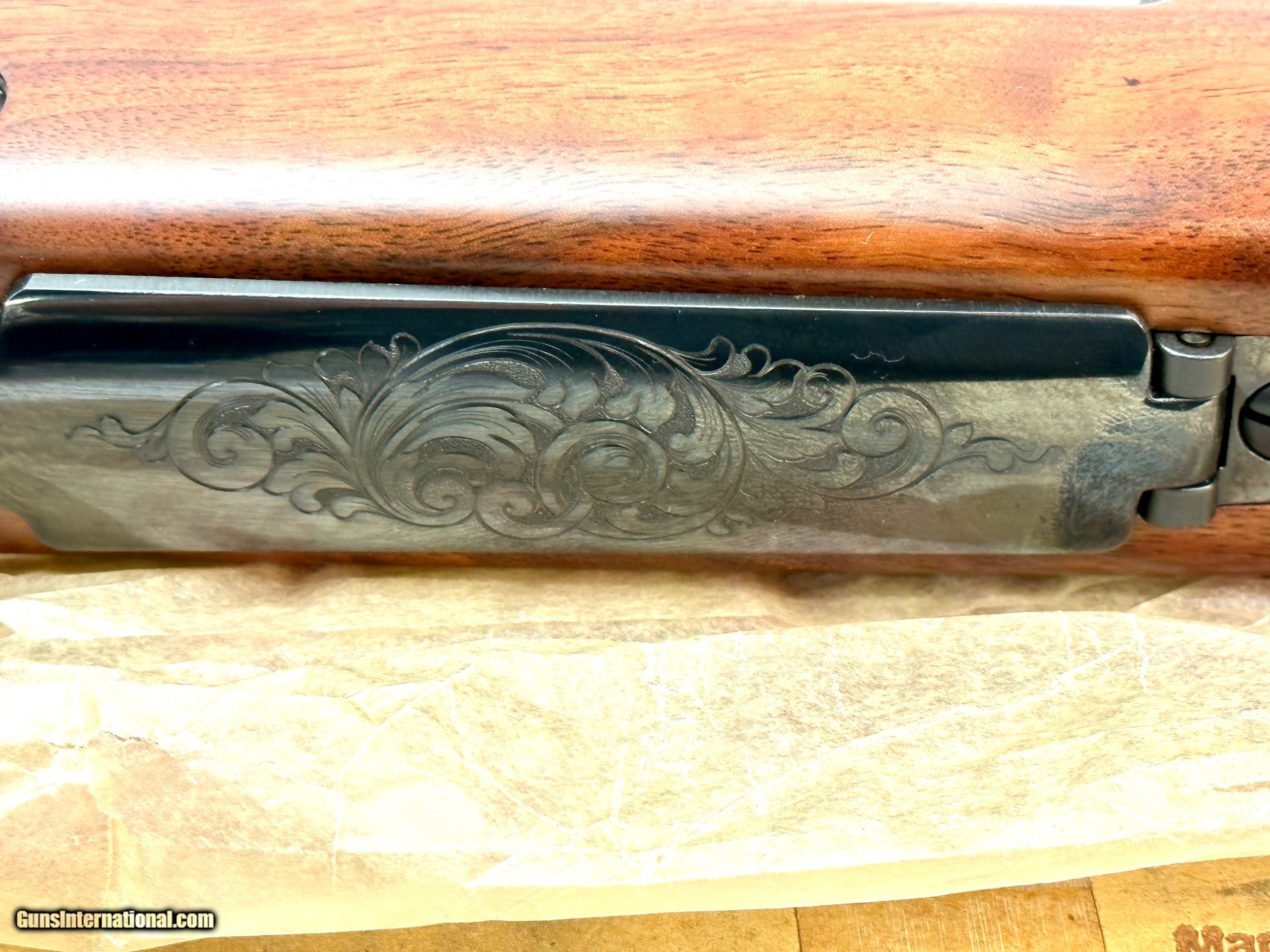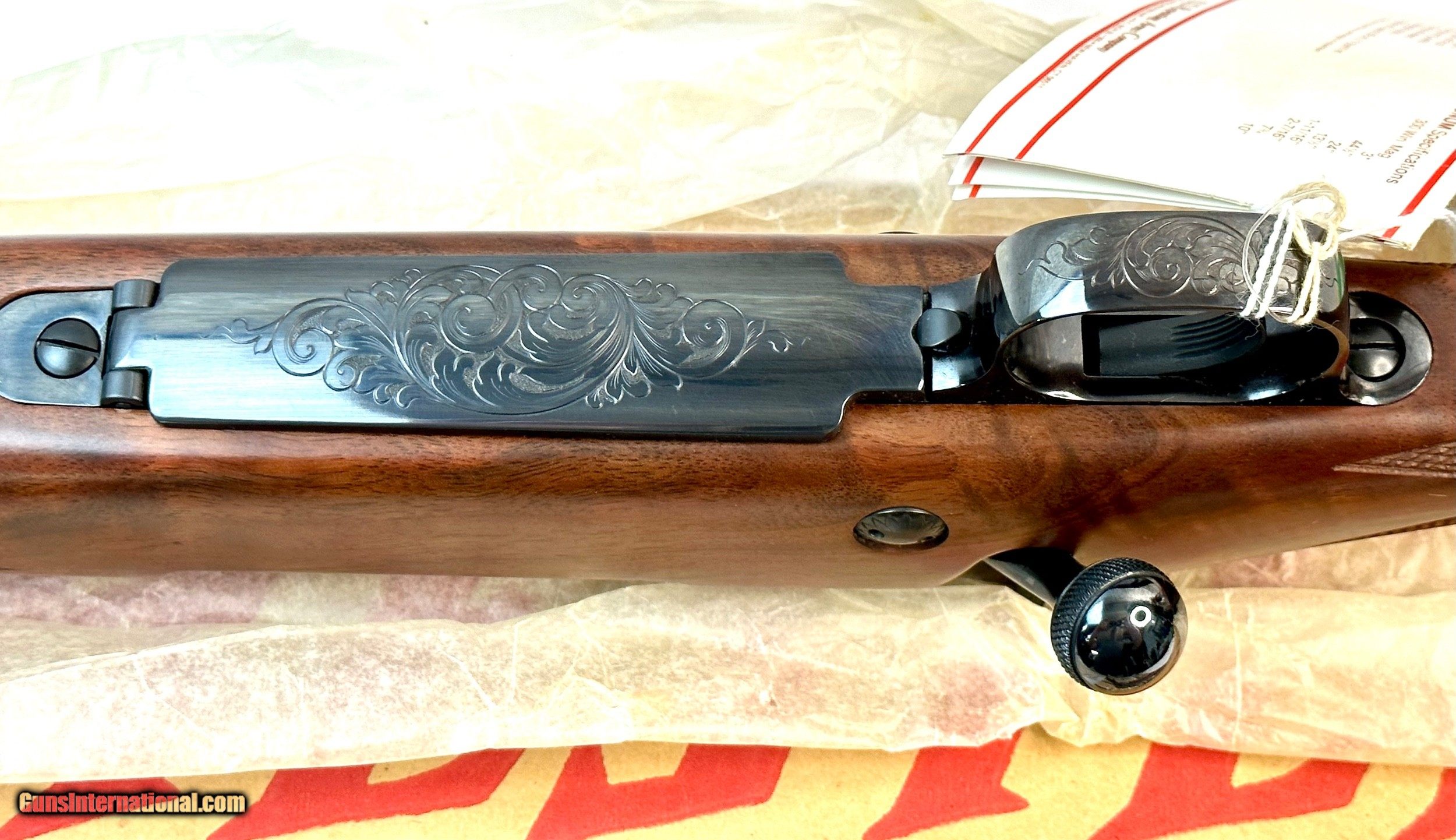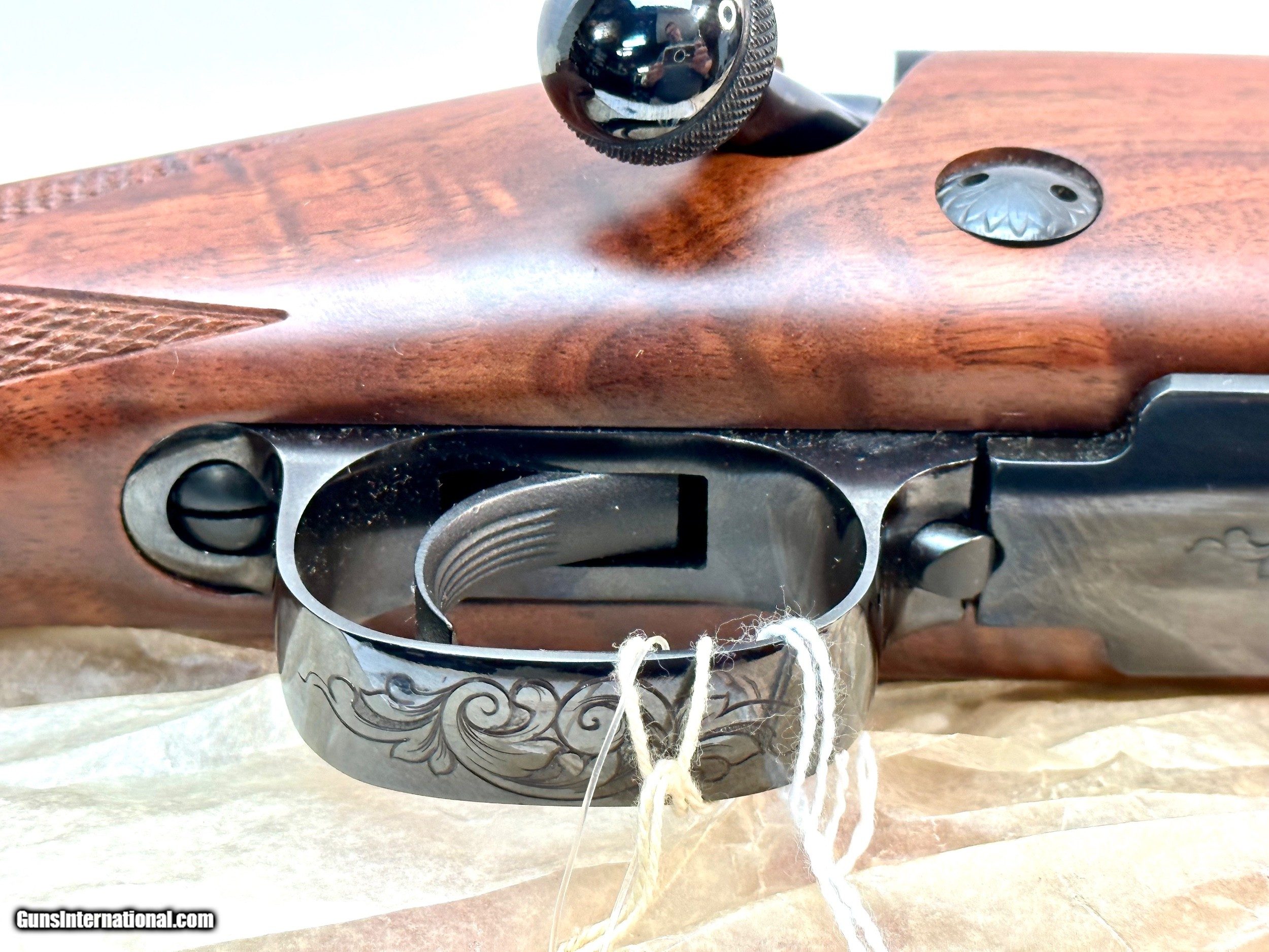 Description: This is truly a rare find. 300 Win Mag 50th anniversary special edition model 70, rumored to have been owned by Ted Williams (provenance has not yet been confirmed) this rifle has the same SN as the famous Ted Williams Red Sox Jersey "09" the story that came with it when I purchased it was ted Williams was the previous owner. This firearm has never been shot. Comes with the original box, warranty letter, and Hanging tags! It also includes An original copy of the 1987 Winchester gun catalog featuring this "Riflemans Rifle" special edition on the front cover. This rifle is in Mint original unfired condition and features beautiful scroll engraving. I have started to research the provenance of this rifle if confirmed the value will more than double. Maine Residents must add 5.5% Sales Tax Price reflects a 3.5% Cash Discount ($75.25) Please call for any questions I would be glad to discuss them with you SOLD Rifle Caliber: .300 Winchester Magnum Manufacturer: Winchester Model: 50th Ann Model 70 XTR Special edition Serial Number: 50ANV009 Barrel Length: 24 Condition: New In Box Metal Condition: New In Box Wood Condition: New In Box Bore Condition: New In Box Action: Bolt Action Push Feed Finish: Blued Manufacture Date: 1987 Engraving: Scroll engraving on Reciever, Barrel trigger guard and floor plate Extras: Engraving, Fancy Stock, Special edition 50th Anniversary Item Location: Buxton Maine |