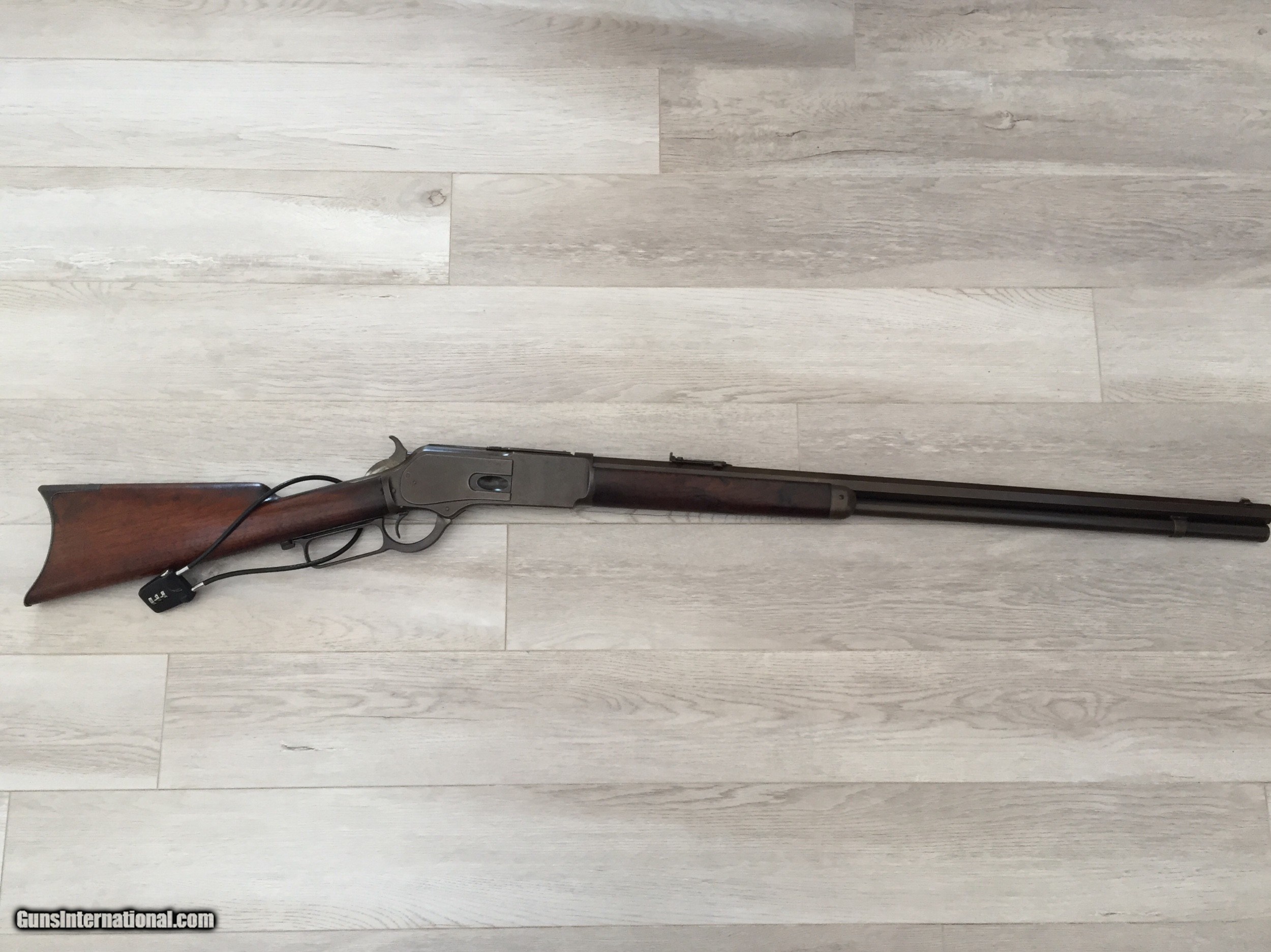 This is an 1876 rifle that would make a great addition to ones collection and/or a perfect vintage hunting rifle, or a cornerstone of your 1876 collection. Set aside the unarguable rarity of this rifle, the rarity of which speaks for itself among collectors, it also has a very handsome appearance with the saddle ring attached.