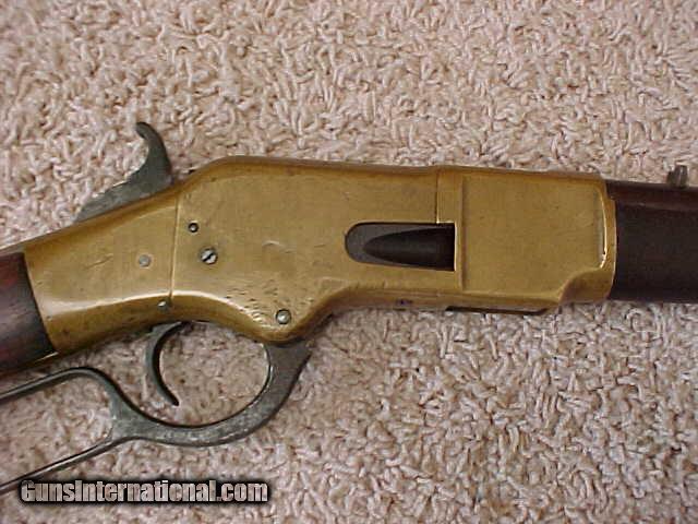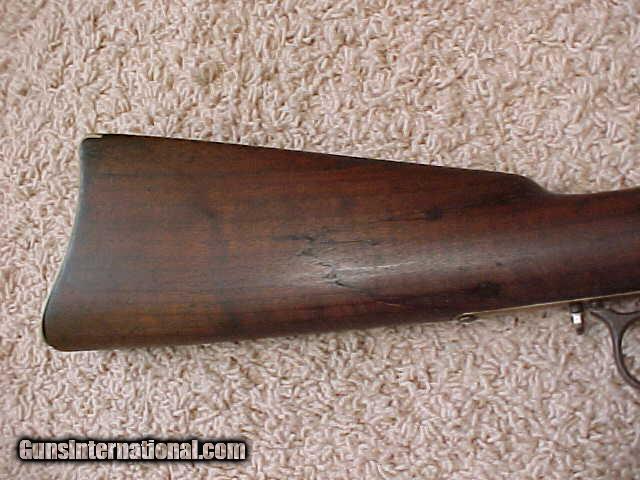 Description: A very good example of a Winchester 1866 saddle ring carbine in .44 rimfire caliber. SN 126xxx. The gun works fine and locks up tight. The patina on the frame and buttplate is excellent and uniform. The markings are crisp and legible. The bore shows wear but no abuse. A good cleaning would help a great deal. A very nice example of a hard to get Winchester. REDUCED!! SOLD Antique: Yes |