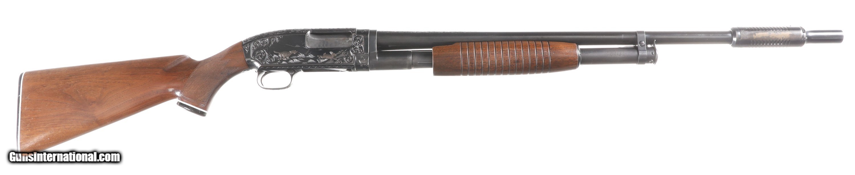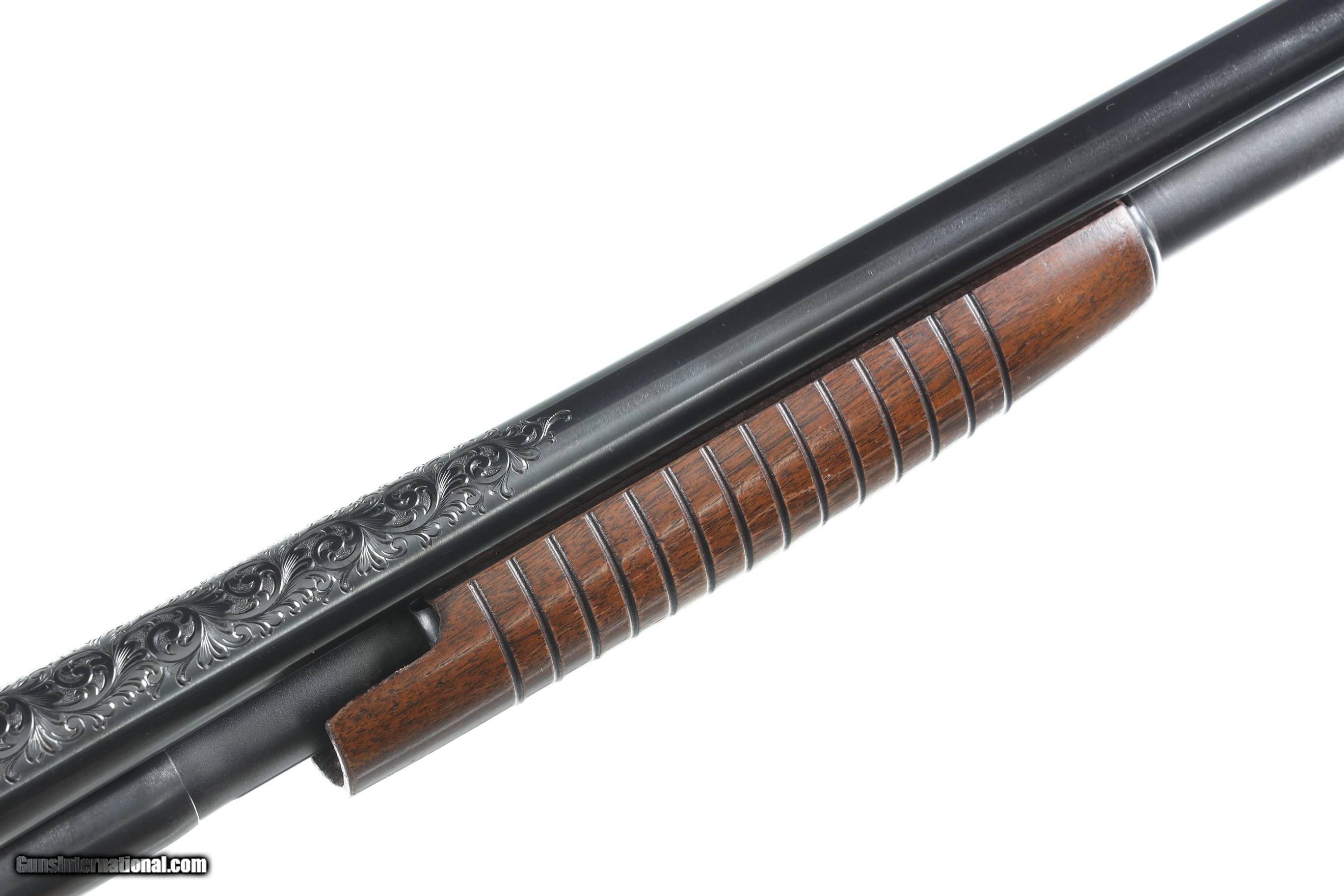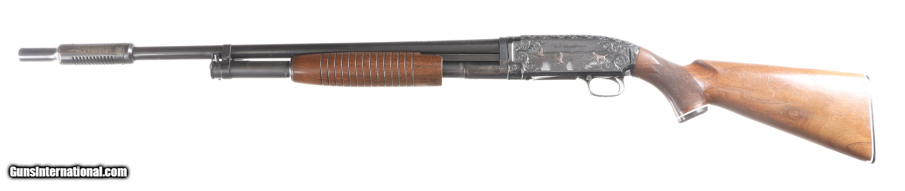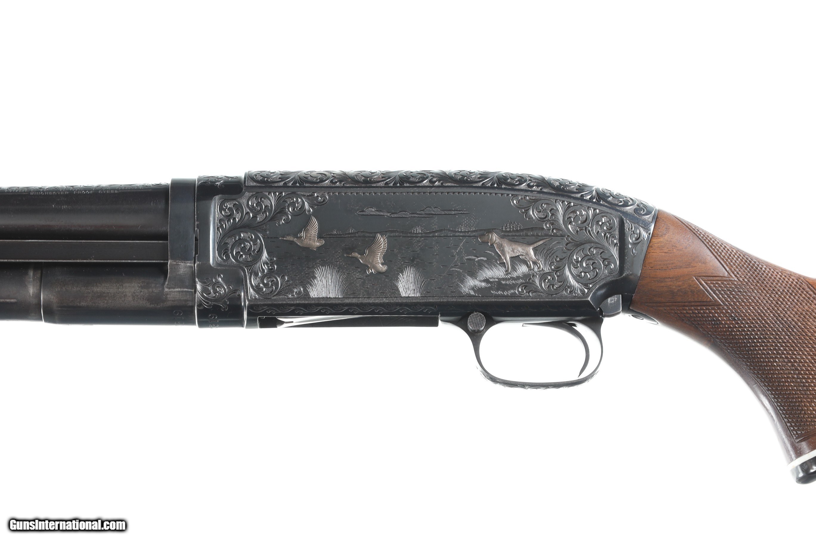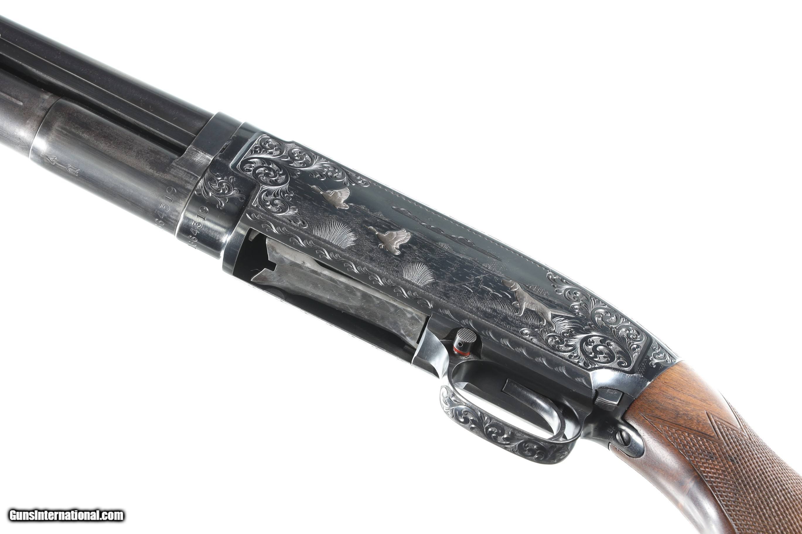 Description: Well executed scroll relief engraving with silver mounts depicting Pointer and Duck on left side of receiver, and hare on right side of receiver. Barrel properly unmarked for choke. Small chip in toe. Manufactured in 1955. Factory installed Cutts compensator installed, chamber marked 2 3/4", and 14" LOP. • Free Shipping, No Credit Card Fees. • Lay-a-way available for this firearm. • 1/3 Down, a 1/3 in 30 Days 1/3 in 60 Days. SOLD Curio/Relic: Yes Shotgun Gauge: 12 Gauge Manufacturer: Winchester Model: 12 Serial Number: 1664319 Barrel Length: 22 1/2 |