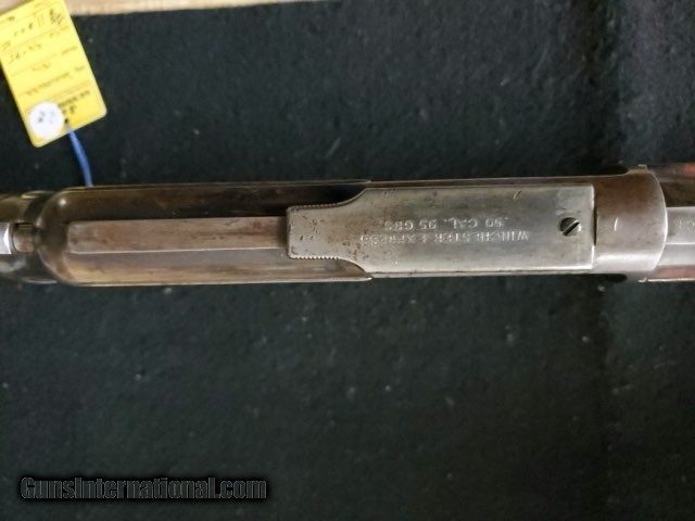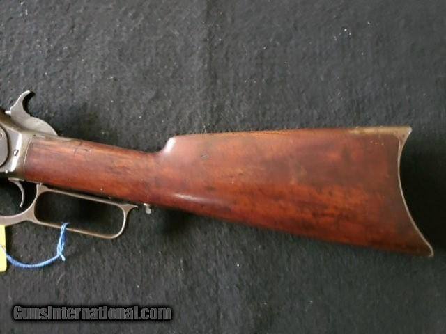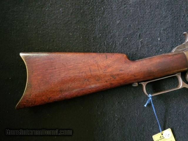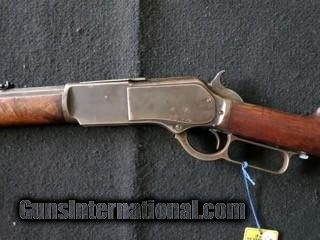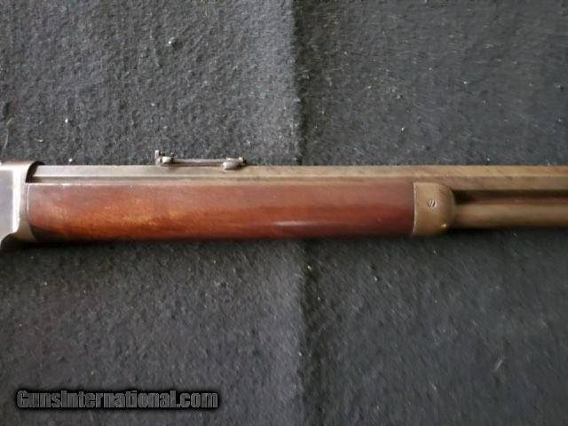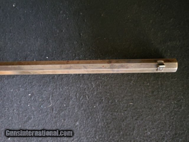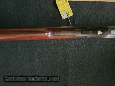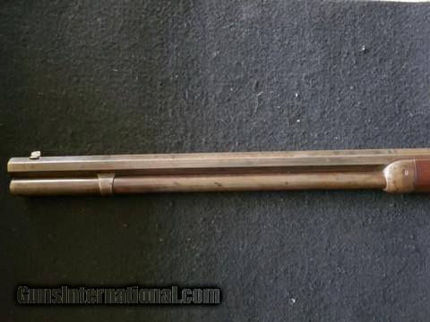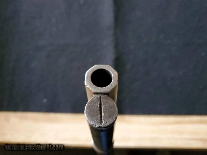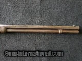 Description: This is a Winchester 1876 rifle in 50-95 express caliber. Winchester manufactured fewer rifles in this caliber than the other calibers. The action works perfectly and the bore is good with some light pitting through out. A little finish is still visable on receiver while the remainder of the rifle is grey patina. Some light pitting and freckling on barrel and mag tube. Overall, nice old rifle. Manufacture date is 1887. SOLD |
