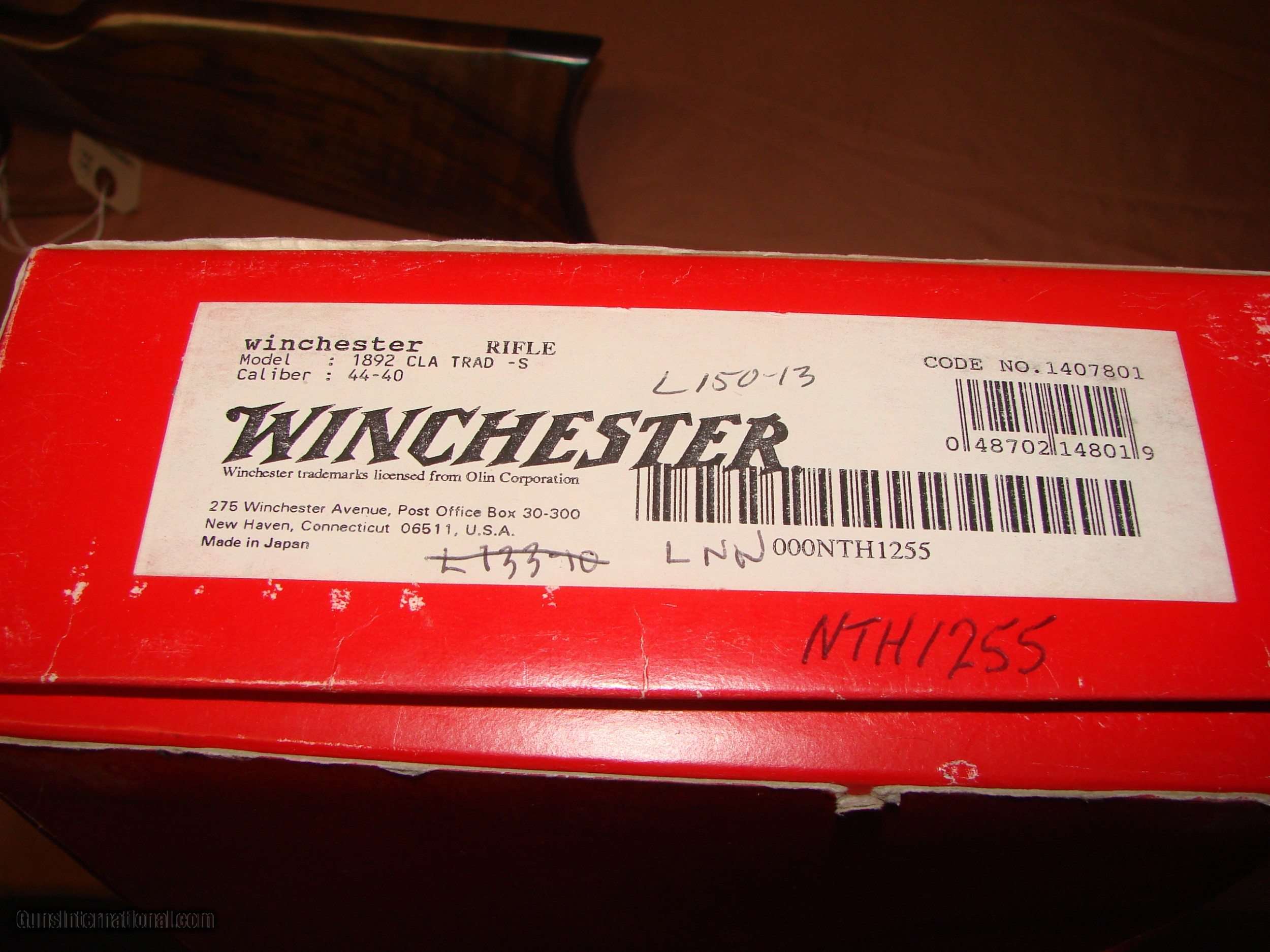 Description: Wincehster 1892 European High Grade in 44-40 with 24" round barrel, checkered walnut stocks, engraved receivers. Rifle is unfired with box. This particular rifle was made for the European market with only 200 being made and even less being sold in the US. *Legendary Guns in Phoenix AZ 602-242-1195 Hours of operation Tuesday-Friday 10-6 Sat 10-5 Closed Sundays & Mondays *We accept all Major credit cards. We DO NOT charge an additional fee for Credit Cards. We also accept Postal Money orders or Certified Bank Checks{Check & Money order payments must arrive within 7 days of initial agreement and will be held for 3 days before items are shipped} *Shipping is $50 for rifles/shotguns {AK & HI Extra} and $35 for handguns. Arizona Residents Must Pay Sales Tax. We DO NOT ship Internationally. *We offer a 60 day layaway on purchases of $500 or more. Items require 1/3 of the total price as down payment which is NON-REFUNDABLE and you have 60 days to pay off the balance. *Please call or email with any questions and to confirm availability before buying. We are happy to answer all questions. All items listed are also for sale at our Phoenix, AZ location *We offer a 3 day inspection period on USED FIREARMS ONLY, We accept returns within the 3 day inspection period with NO REFUNDS ON SHIPPING CHARGES and a 10% restocking fee. *Trades are welcome for customers who can visit our Phoenix, AZ location, We DO NOT engage in online or mail in trades. SOLD Rifle Caliber: .44-40 Winchester Manufacturer: Winchester |