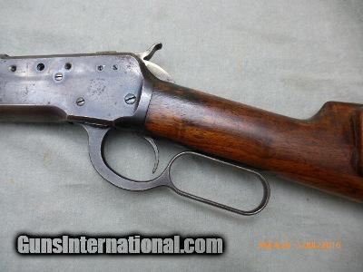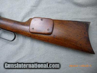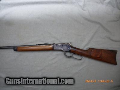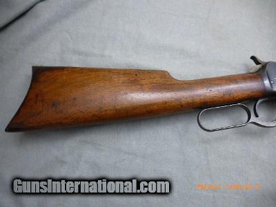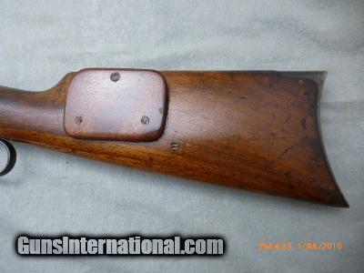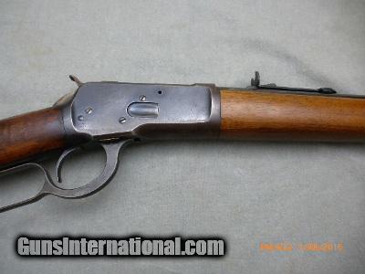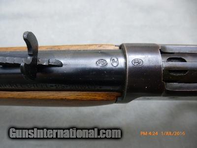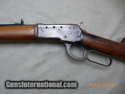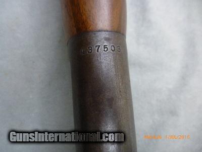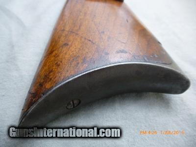 Description: Winchester 1892 Lever Action Carbine 16-60 Cal. 25-20 Serial #437503. Bbl. 22”. Md. Replacement marked “Model 53” with standard “WP” & circle “P” parts proof. Altered blade front sight with replacement elevator adjustable rear sight. Left side receiver has lg. extra holes. Original walnut forearm & straight grip stock with crescent steel buttplate. Left side of stock has added rectangular wood cheek rest. Condition: bbl. Retains 95% original blue. Action has 70% blue blending with patina & spots of light pitting. Forearm has good finish with light handling marks. Stock has worn finish with spots of oil soaking showing numerous scratches & handling marks. Very good bore. Curio or FFL. (16-60) $400.00 I take Visa/MasterCard, add 3%. Allow two weeks for all checks, whether bank, personal or certified to clear. It is also possible to wire funds to my account for instant credit for a $20.00 wire charge. 3 day- no questions asked return period for refund of price paid for gun. (Not including shipping or credit card charges.) All sales subject to prior sale at other sites or from shop. Call or email with any questions or for more pictures. Guns are antique and should not be fired without examination by gunsmith. $50 shipping for long guns, $30 for hand guns to lower 48 states, about $50-$75 to most European countries and $70-$80 to Australia for antique handguns, carbines $75-$125. We can generally get insurance if you want through shipper but coverage is very limited. Notify me if you want it. You can send 20% down- balance in 90 days for installment payment plan. No refunds on installment plans. I have shipped to Norway (long gun w/fragile stock) see feedback, England (Winchester1876, Rem. Dbl. Derr.), Northern Ireland, Austria, France, Netherlands ,(Holland), Australia, Denmark, and Sweden. Email if you are not U.S. for estimated shipping costs, payment methods, etc. I am always buying and trading for antique and collectible guns, Indian items, rare ammo, etc. Email what you have got for sale or trade. SOLD Antique: Yes Serial Number: 437503 |