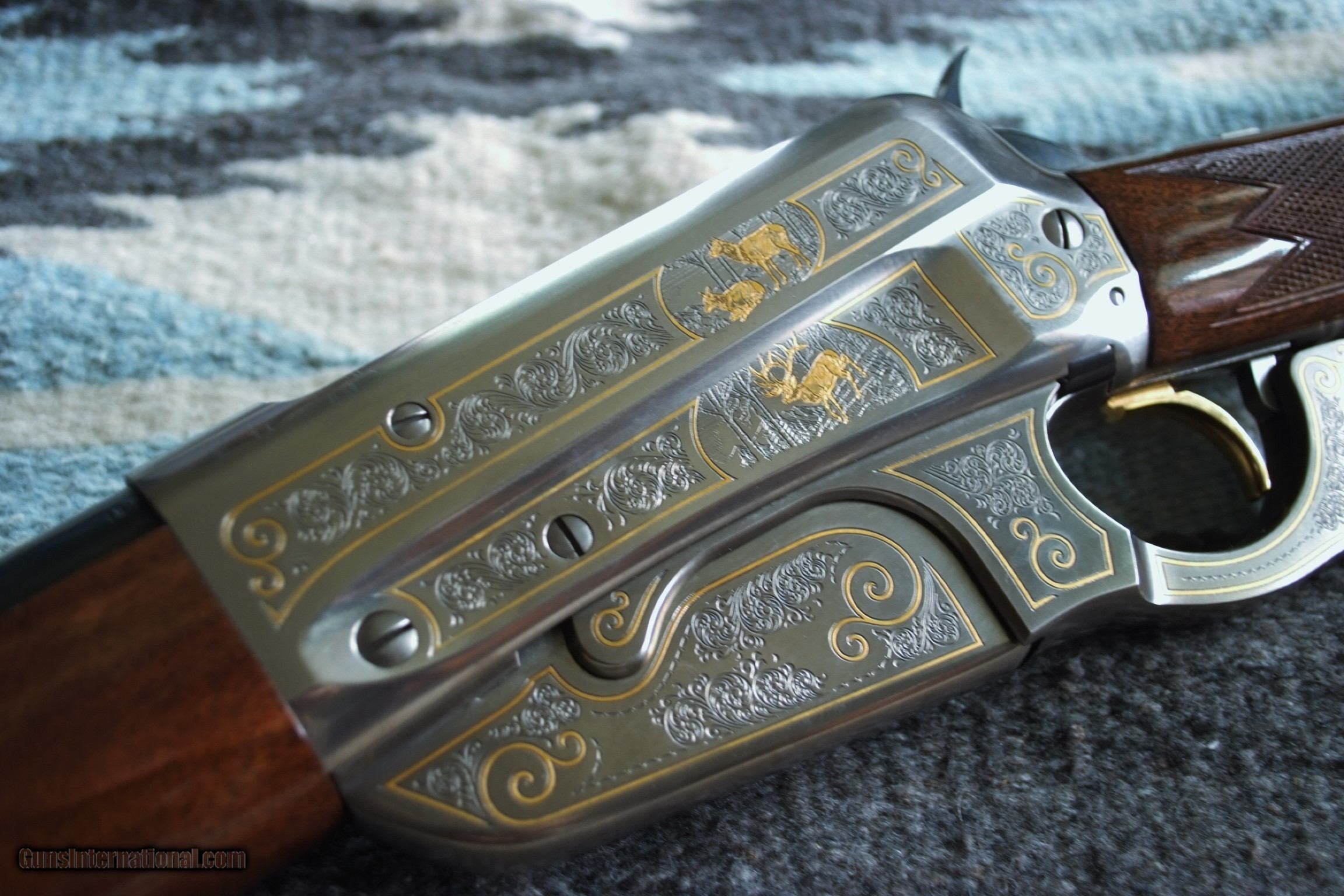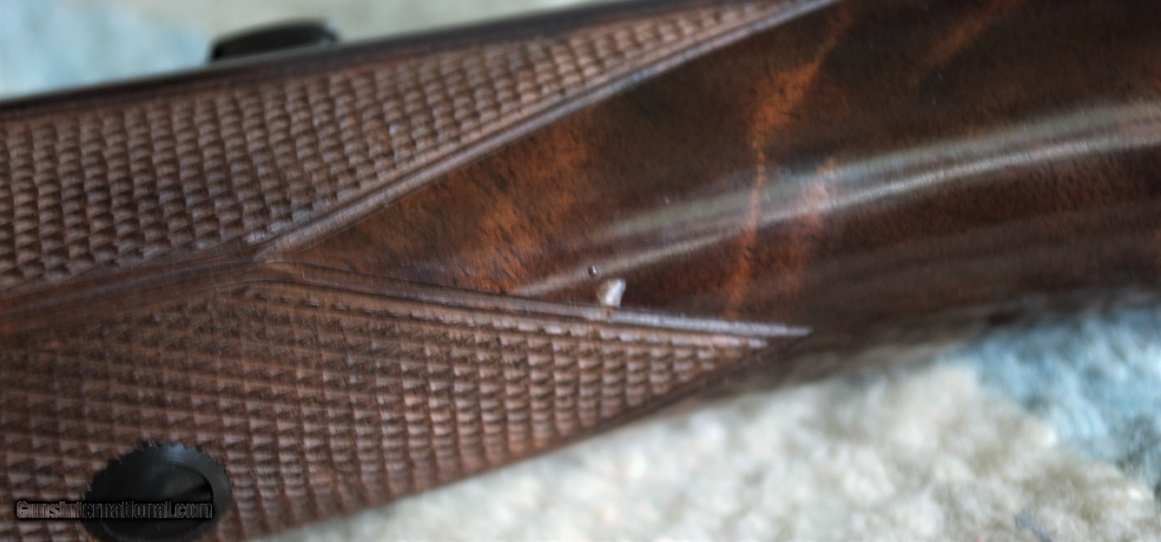 Description: Winchester 1895 high grade, 30-06, unfired without box. Near perfect, mark on forearm (see second picture) and stock. SOLD Rifle Caliber: .30-06 Springfield Manufacturer: Winchester Model: 1895HG Serial Number: NFH1117 |