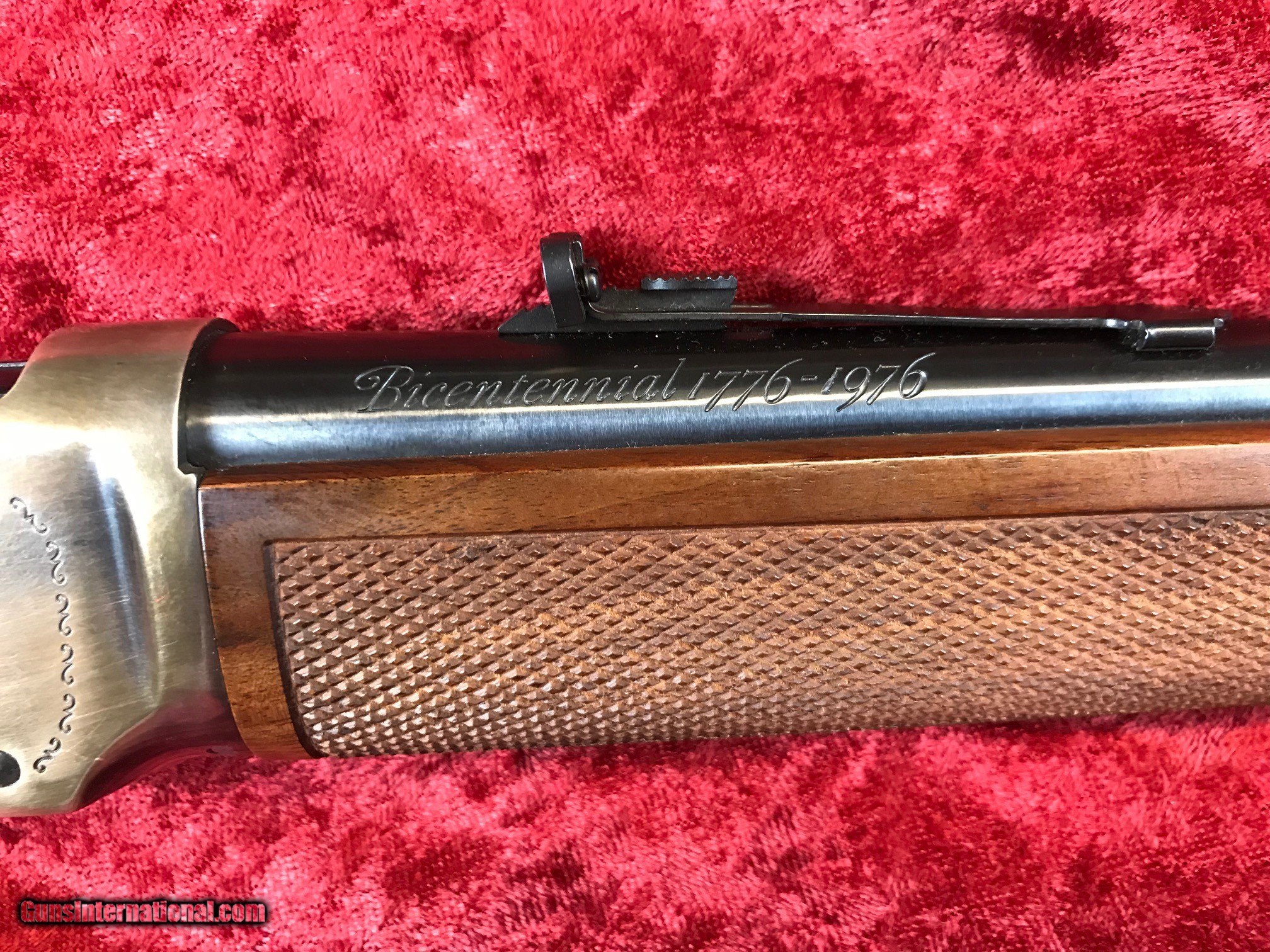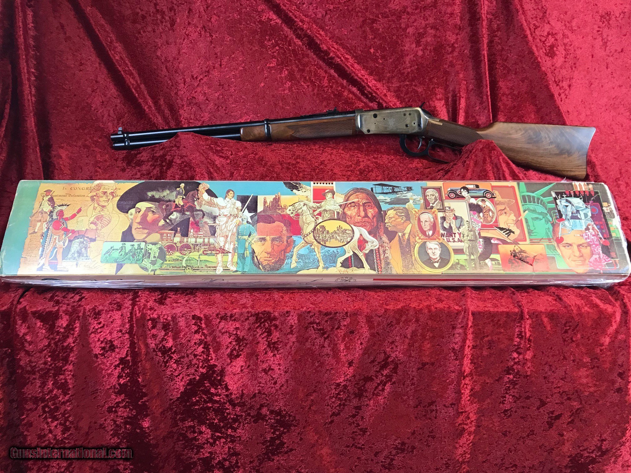 Description: This Winchester 94 Bicentennial Carbine in .30-30 is in great shape! The butt stock and fore end both exhibit great figure, with almost all of their original matte finish and just a few very light handling marks. The gun's receiver retains all of its original silver plating, which is starting to darken nicely with age but will polish right up, if desired. The balance of the gun's metal is deeply blued, and the right side of the barrel is engraved "Bicentennial 1776-1976." The receiver is also engraved, sporting an American Eagle on the left side and "76" on the right. Bore is bright and shiny. A beautiful, collectable Winchester 94 in tremendous condition! SOLD Manufacturer: Winchester Model: 94 Bicentennial Carbine Caliber Info: .30-30 |