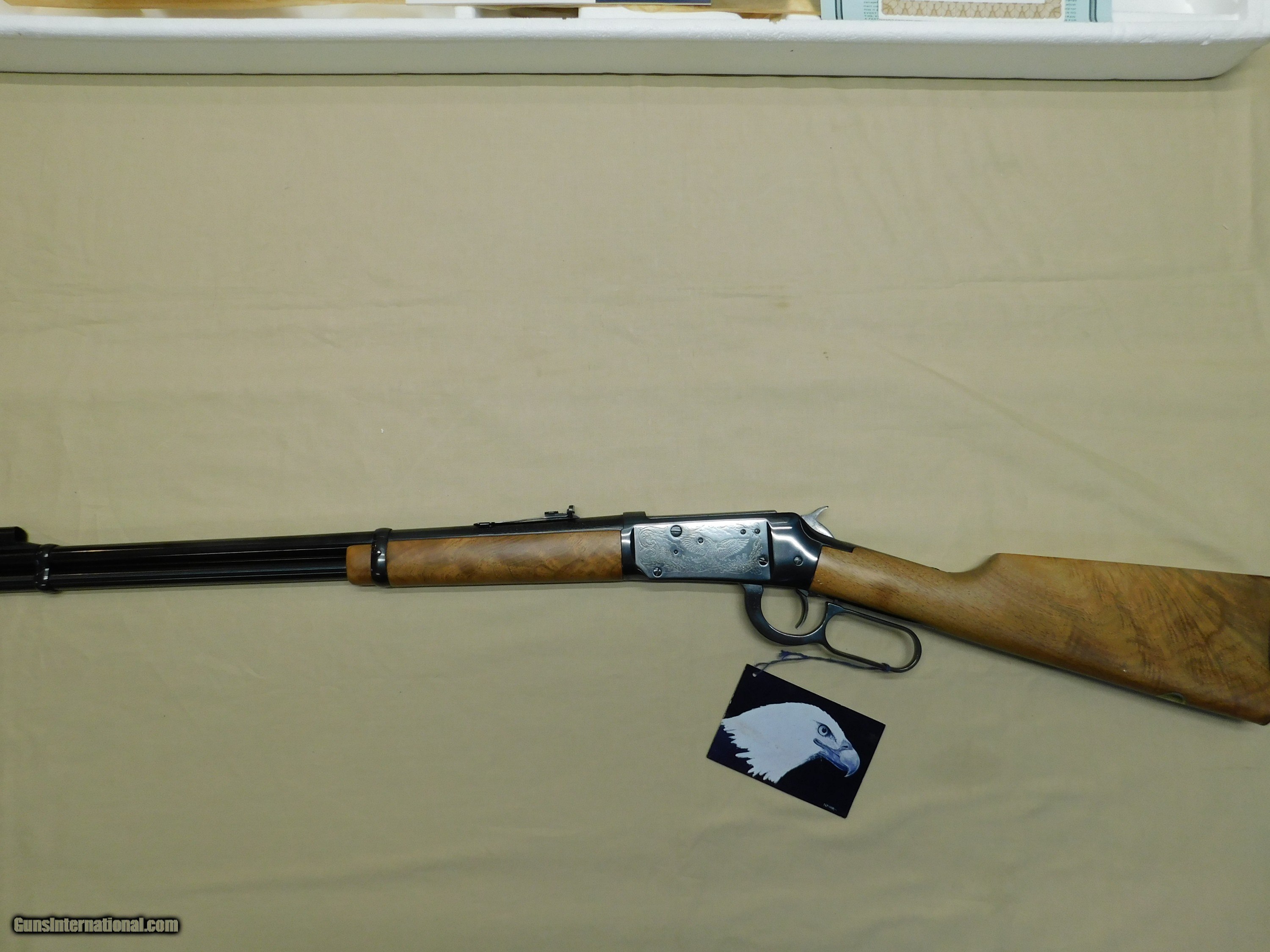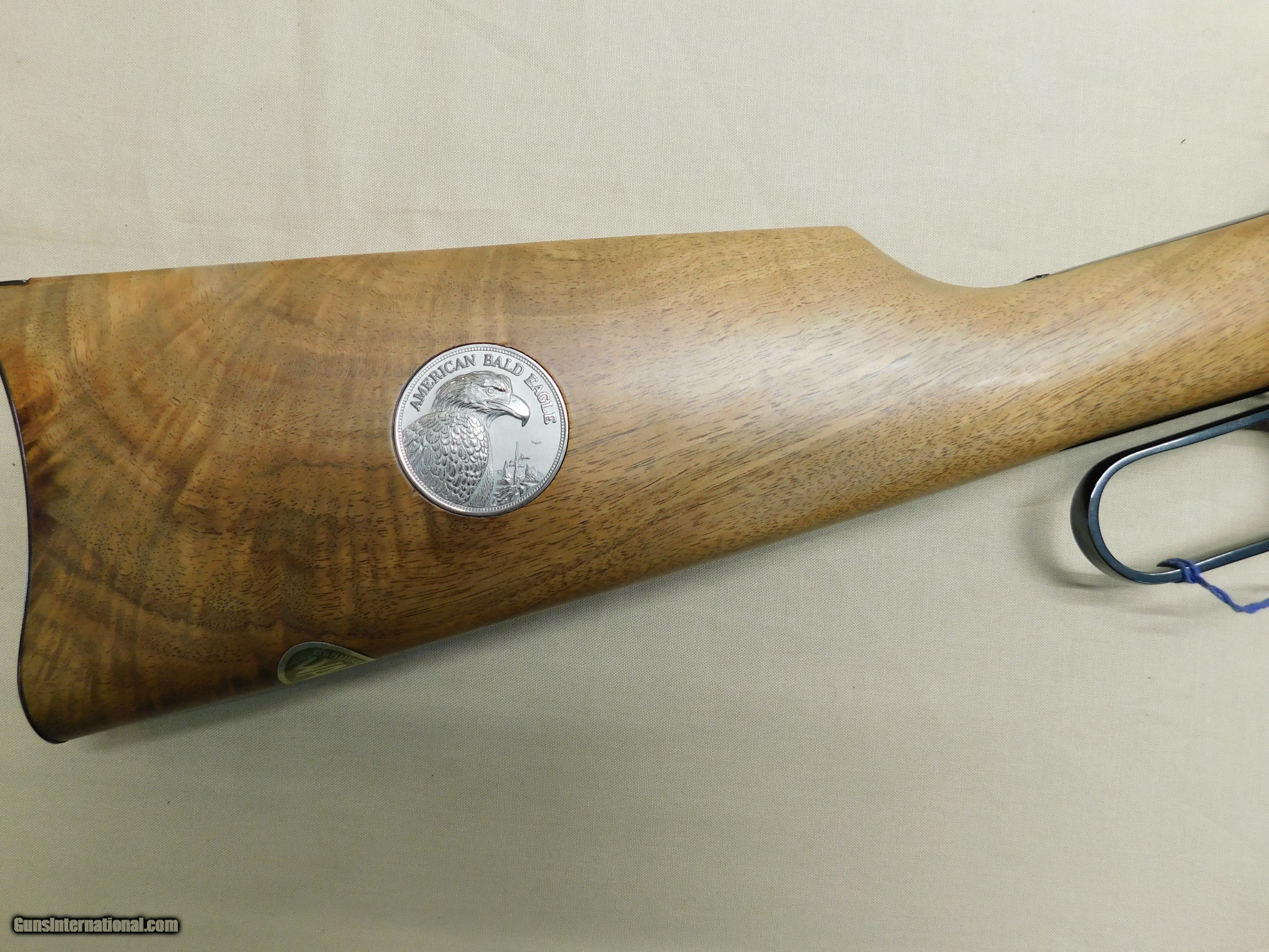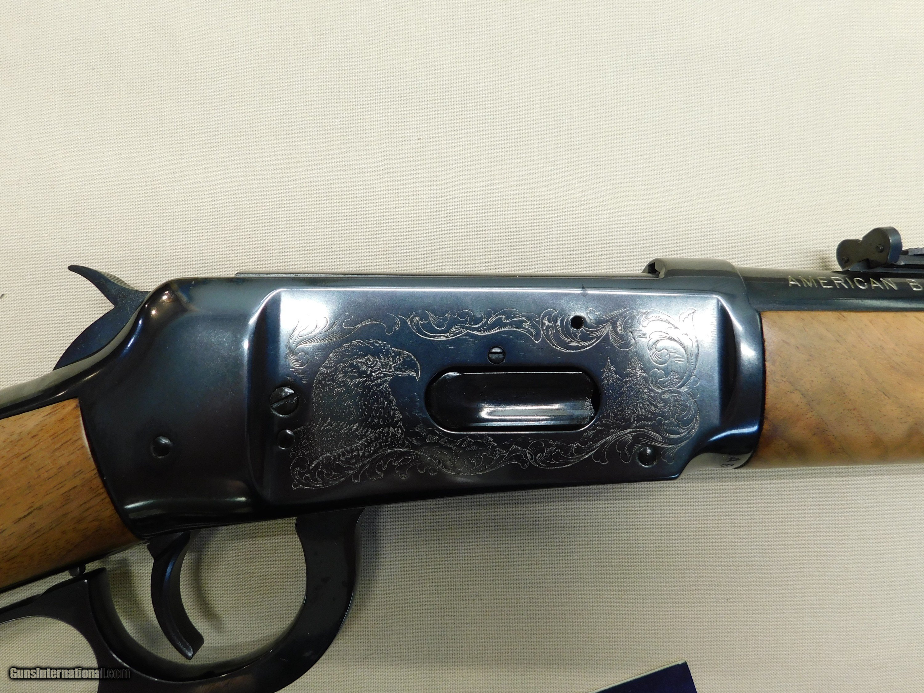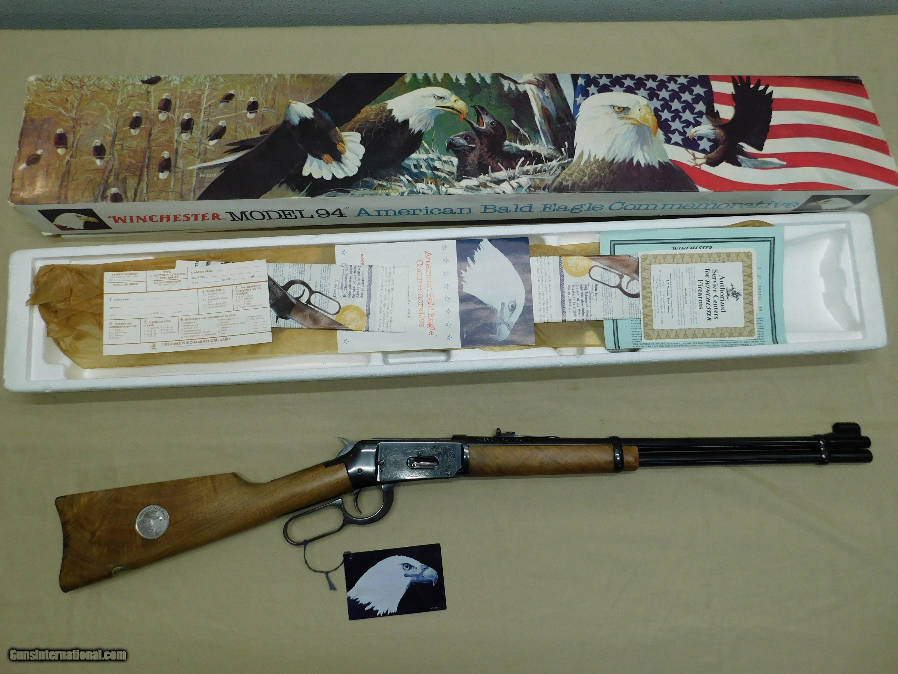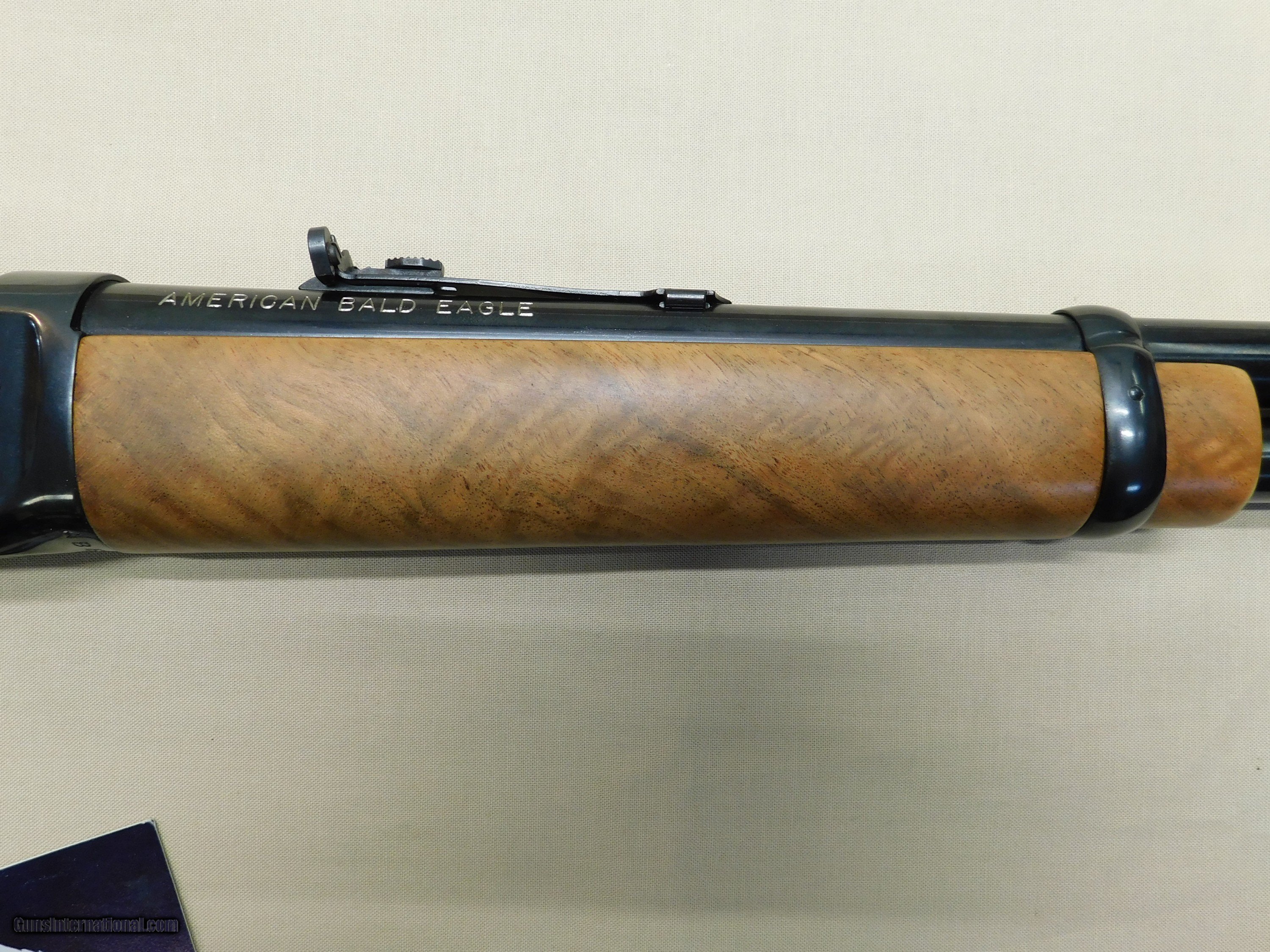 Description: For sale is a NIB Winchetser 94 XTR chamber in 375 Winchester. This is the Bald Eagle edition and is a rare rifle in this condition. It has the box and all the paperwork with it. A beautiful blued rifle with a 20 inch barrel and a magazine capacity of 6 plus 1. Serial number: ABE356 SOLD Rifle Caliber: .375 Winchester Manufacturer: Winchester Model: 94 Serial Number: ABE356 Barrel Length: 20 |