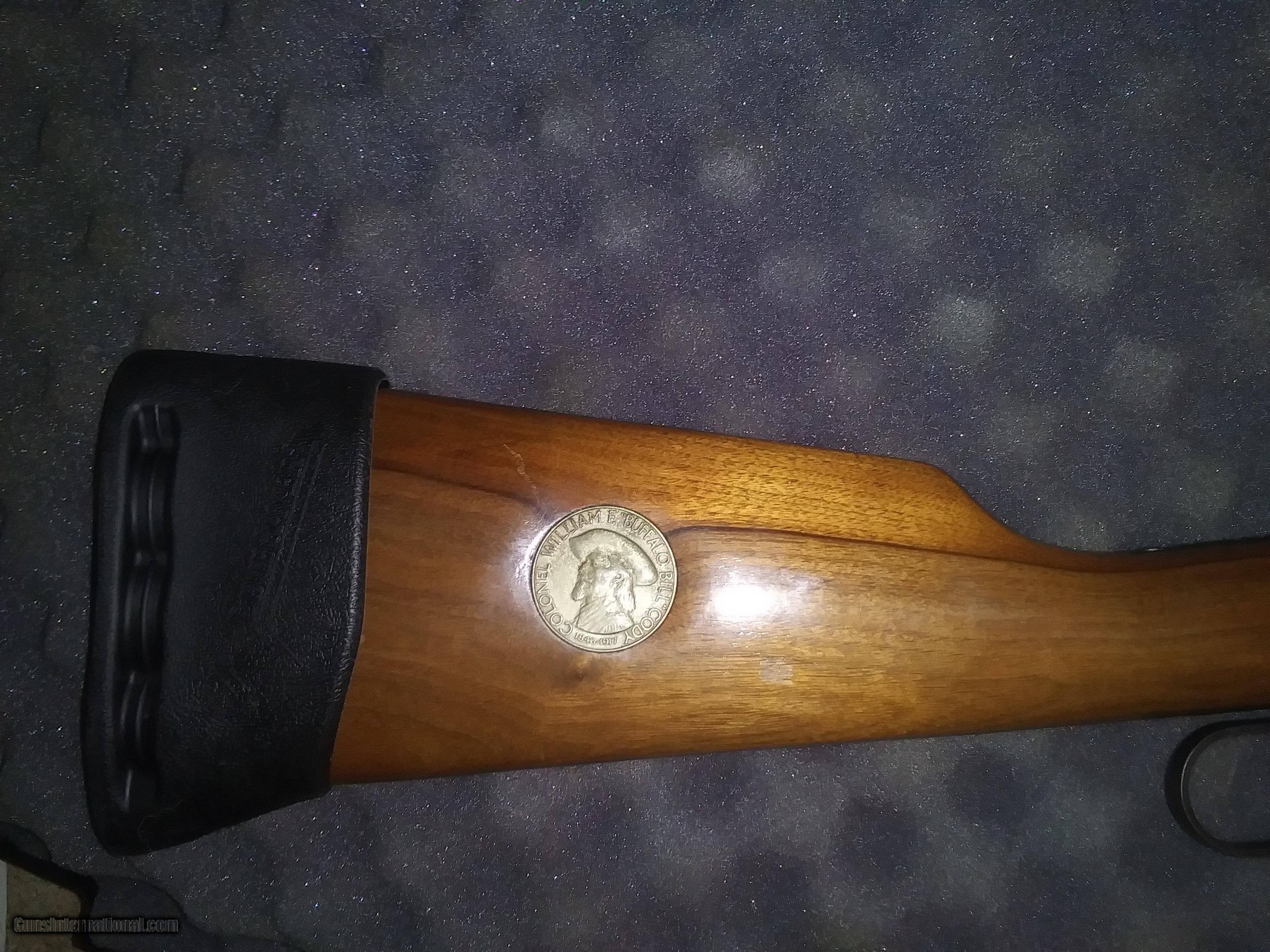 Description: Buffalo Bill Winchester, Rifle has handling scratchs, but in nice shape. Must Sell SOLD Rifle Caliber: .30-30 Winchester Barrel Length: 20 Condition: Good Metal Condition: Good Wood Condition: Good Bore Condition: Good Barrel Type: Octagon Action: Lever Engraving: Yes Case: Double Hardcase |