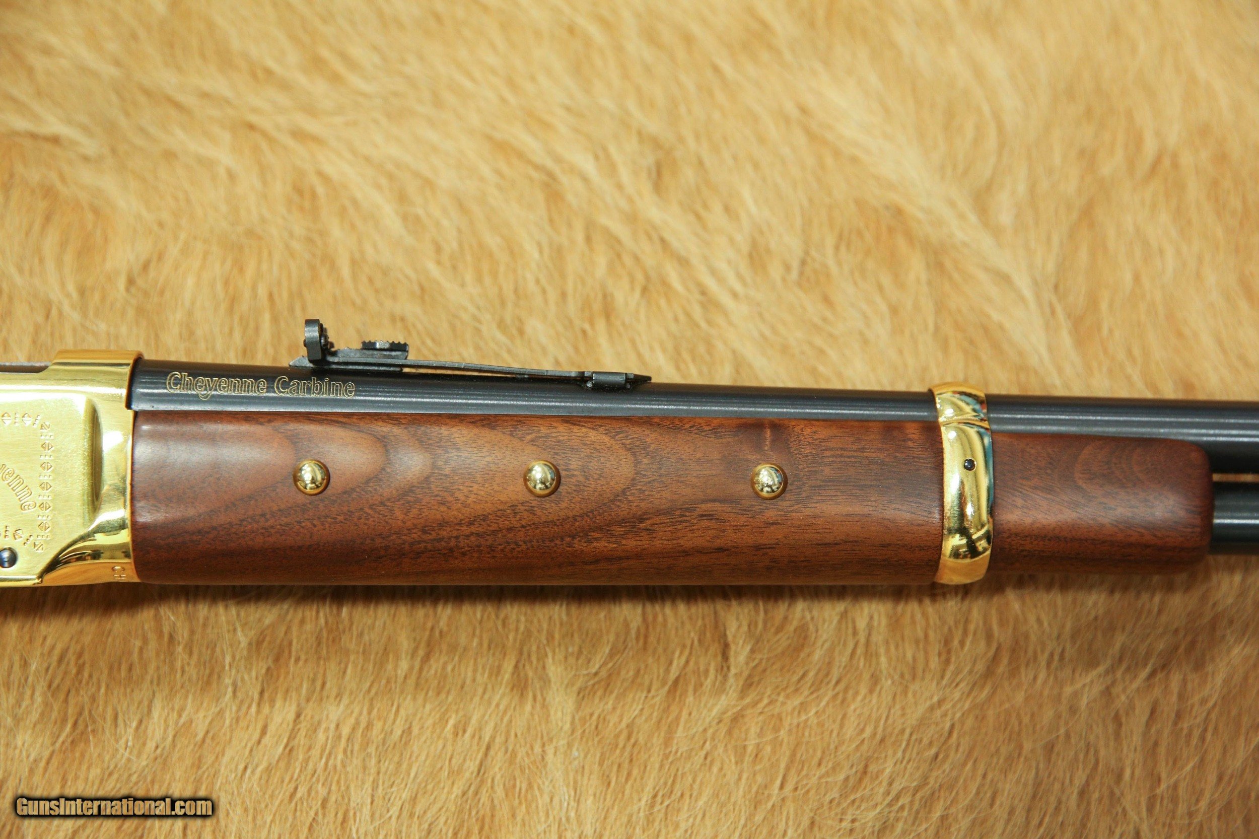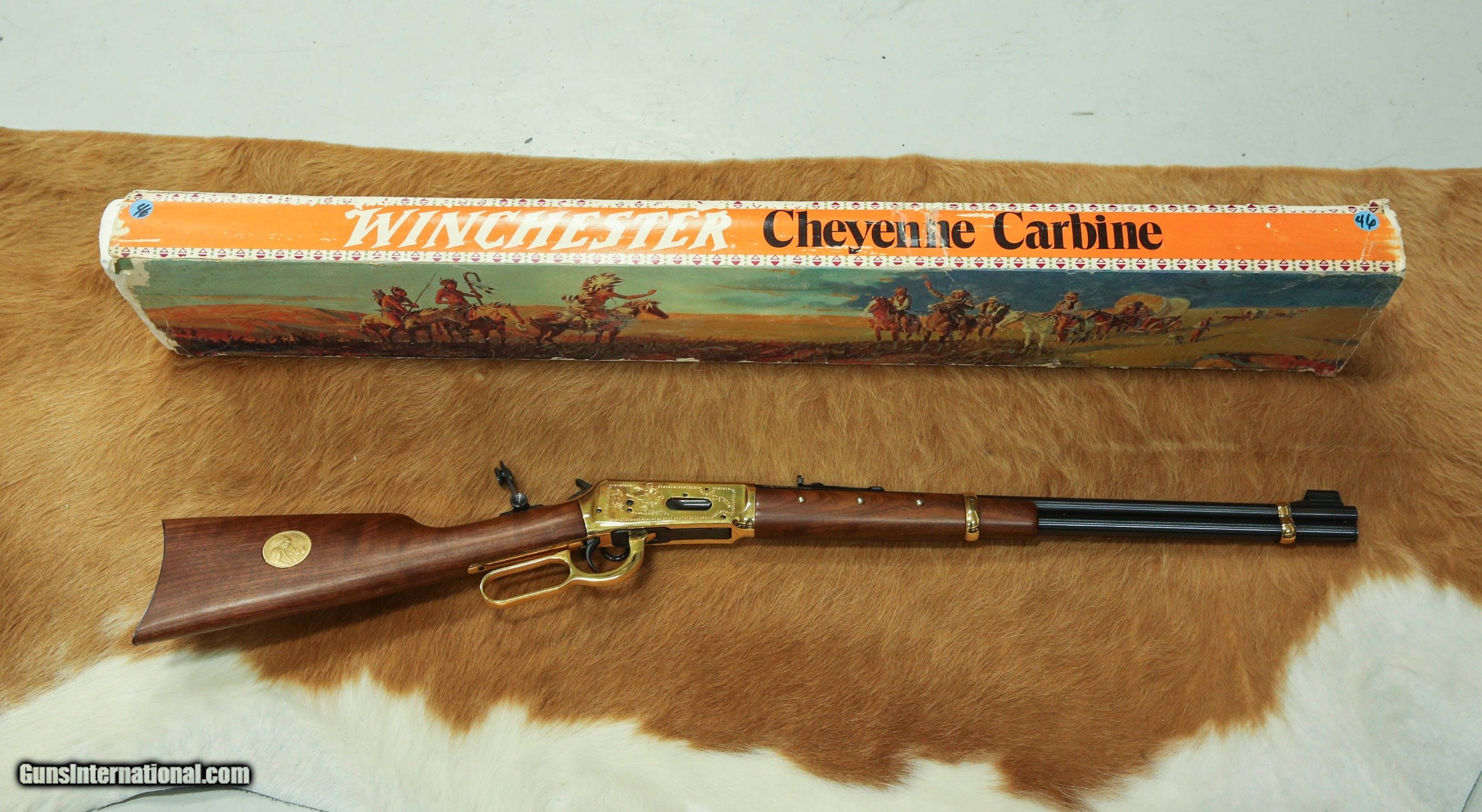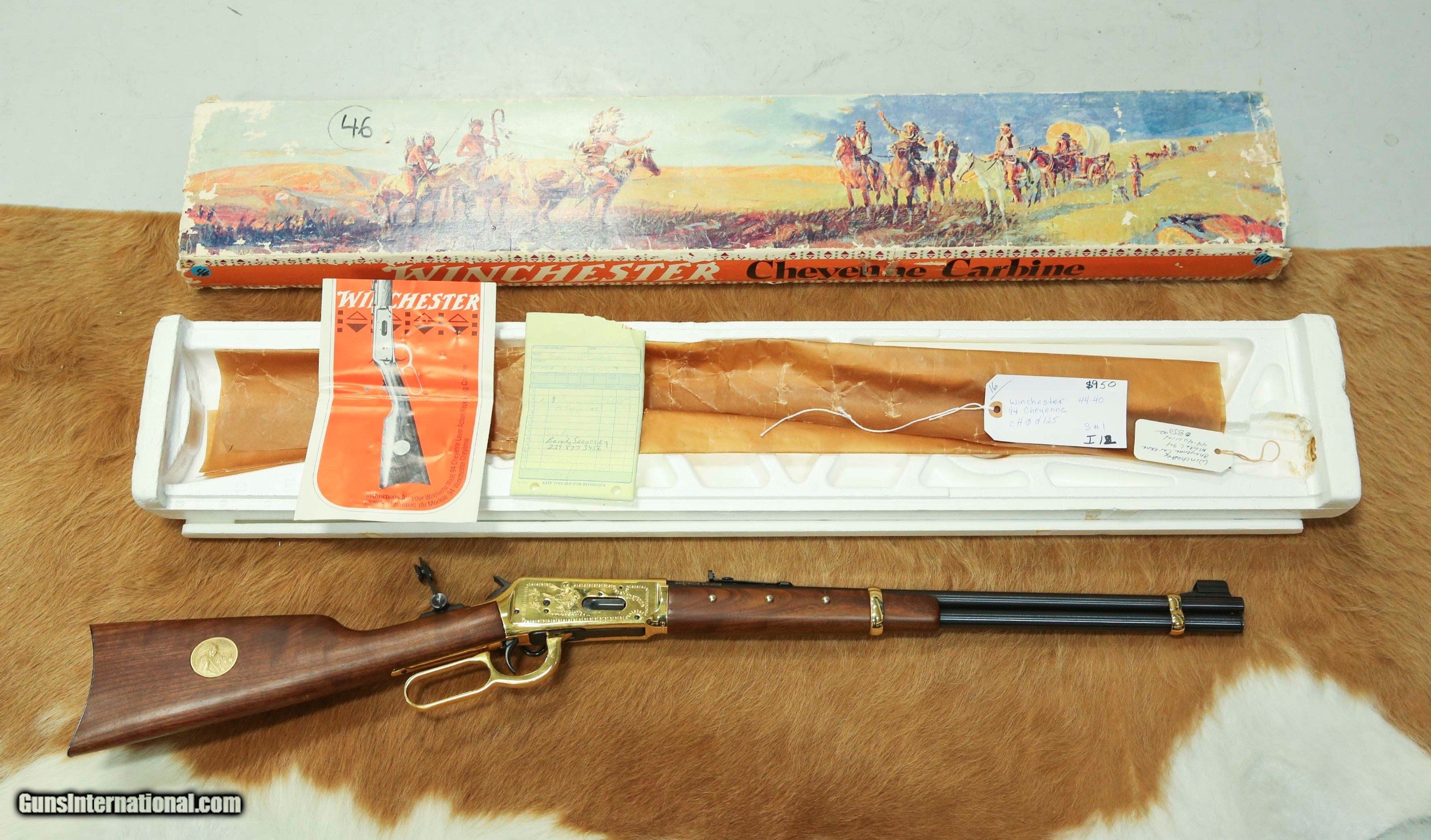 Description: Winchester Cheyenne Carbine 20” Model 94 in 44-40. Made in 1977. Unfired with box with sleeve. Little wear. Rifle Mint. Part of a collection. Pre-owned. Shipping cost is $45 and includes shipping insurance. We only ship to the CONTINENTAL US. There is a 3% charge for credit card transactions. PLEASE KNOW YOUR OWN LOCAL AND STATE LAWS PRIOR TO PURCHASE! Old West Guns Las Vegas. SOLD Manufacturer: Winchester Model: 94 Caliber Info: 44-40 |