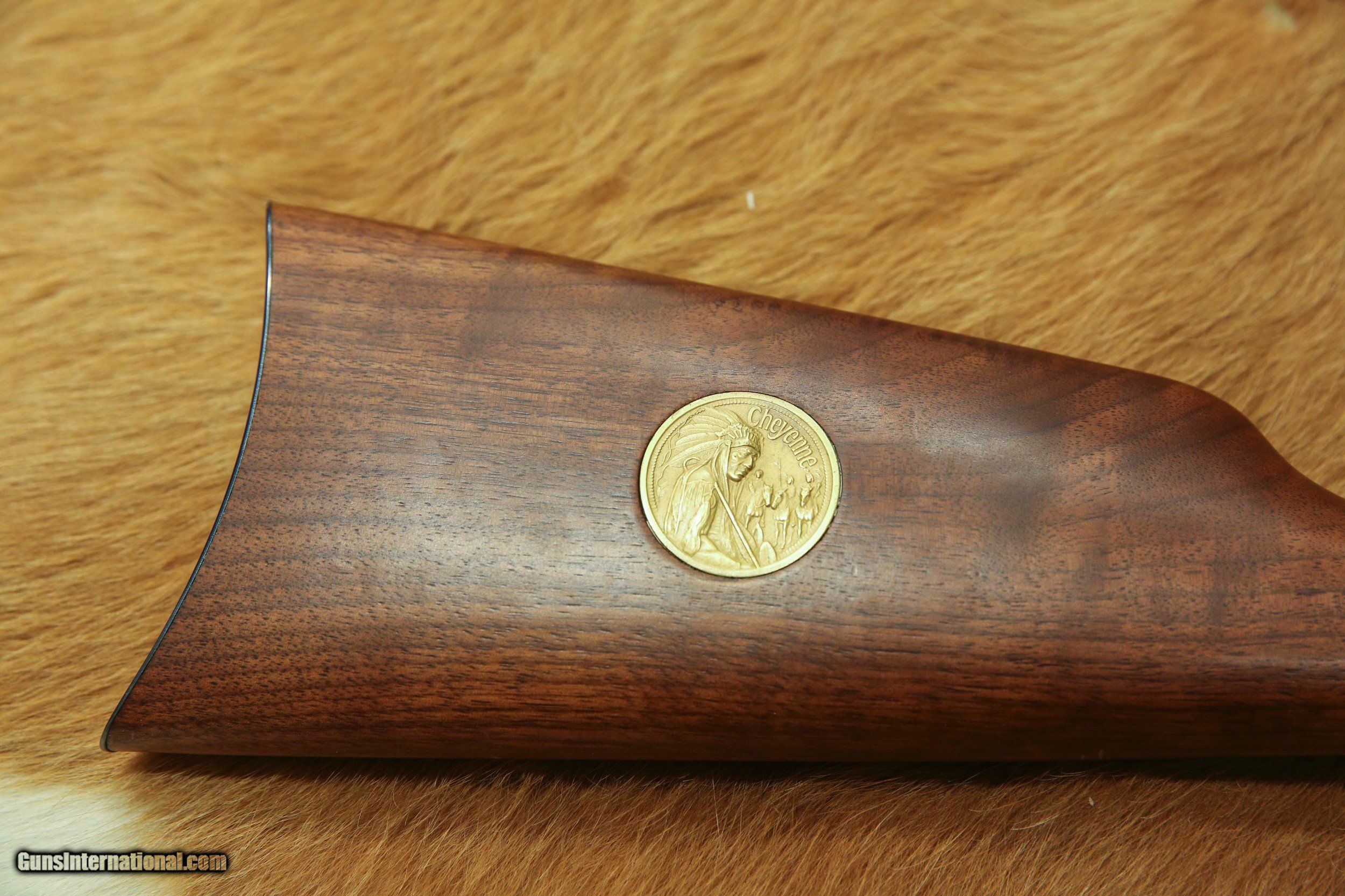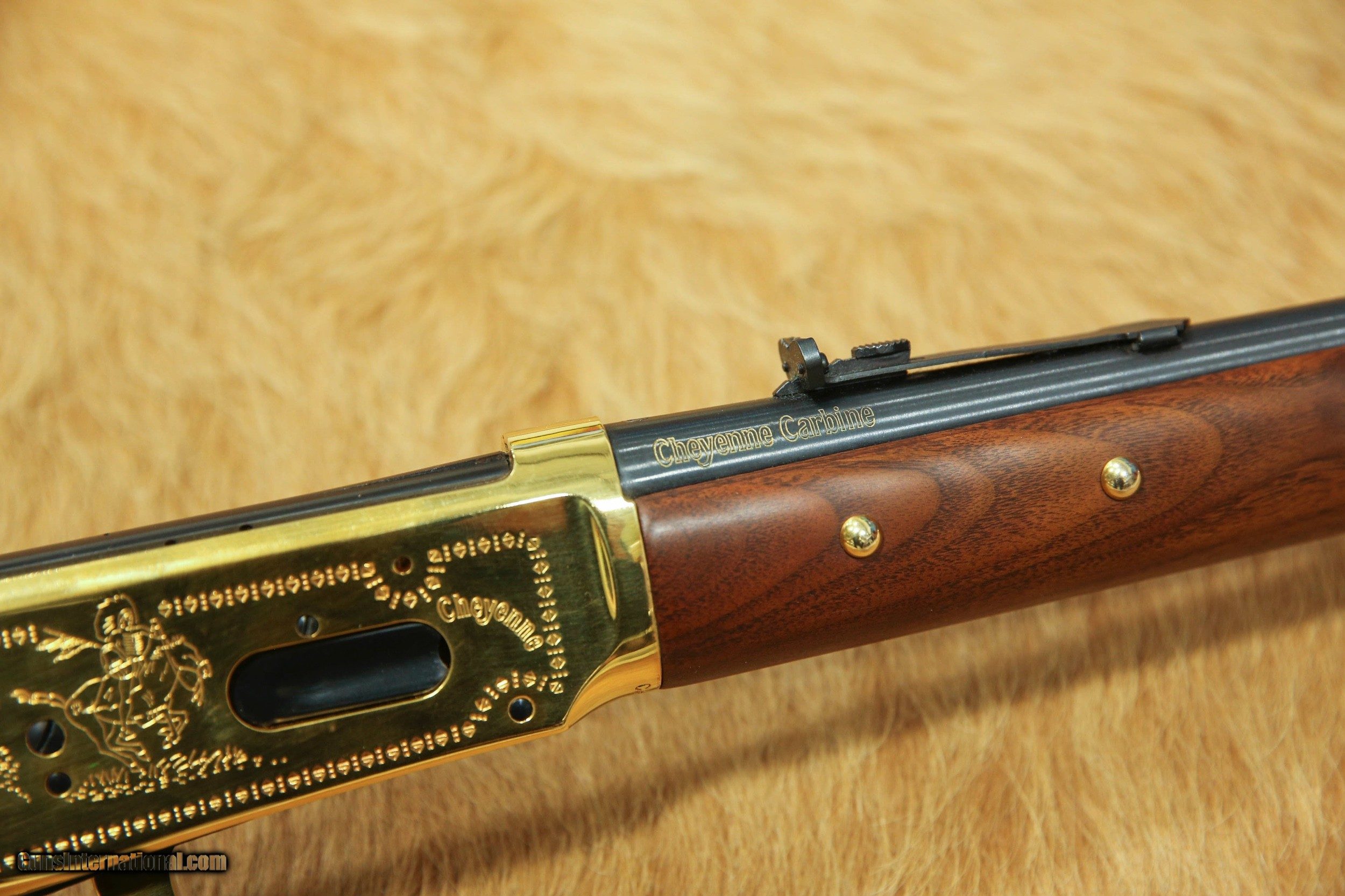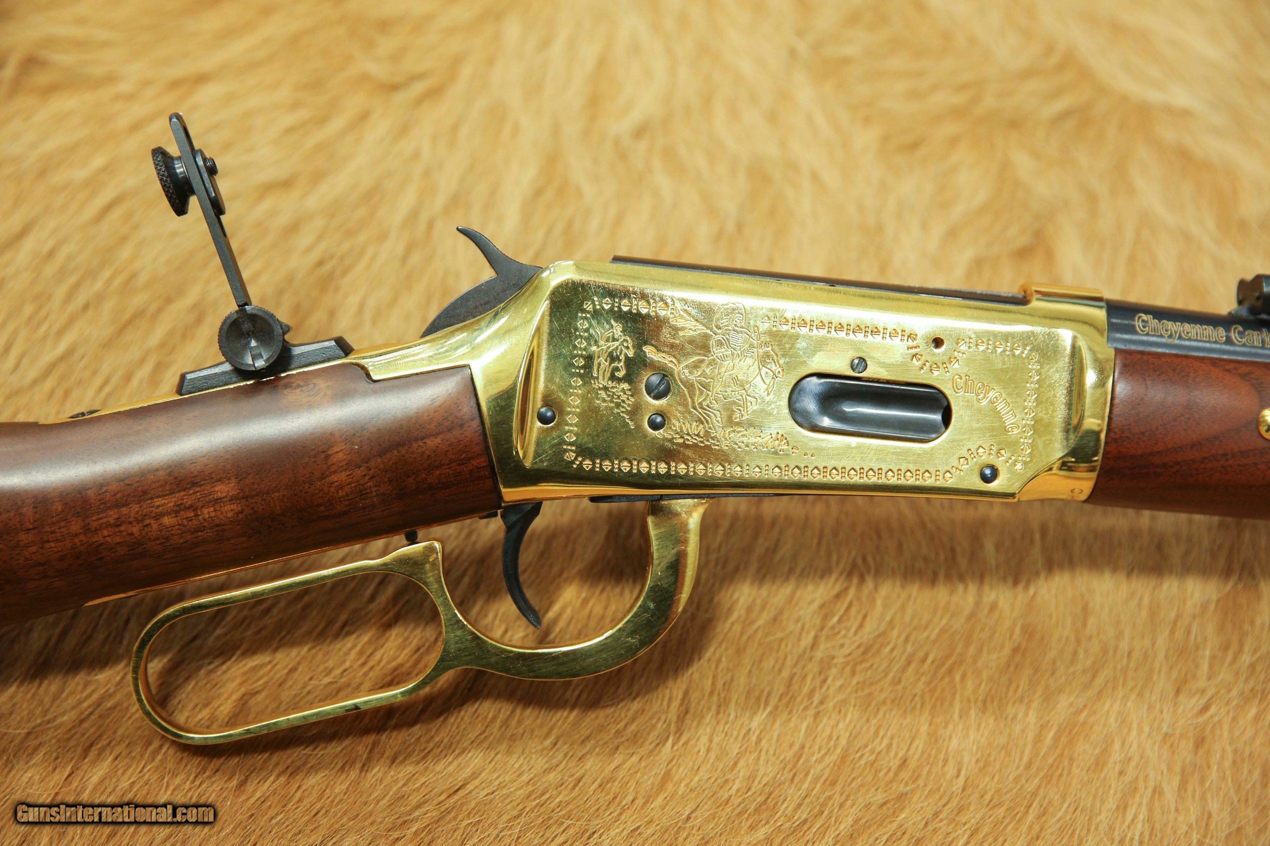 Description: Winchester Cheyenne Carbine 20” Model 94 in 44-40. Made in 1977. Unfired with box with sleeve. Little wear. Rifle Mint. Part of a collection. Pre-owned. Shipping cost is $45 and includes shipping insurance. We only ship to the CONTINENTAL US. There is a 3% charge for credit card transactions. PLEASE KNOW YOUR OWN LOCAL AND STATE LAWS PRIOR TO PURCHASE! Old West Guns Las Vegas. SOLD Manufacturer: Winchester Model: 94 Caliber Info: 44-40 |