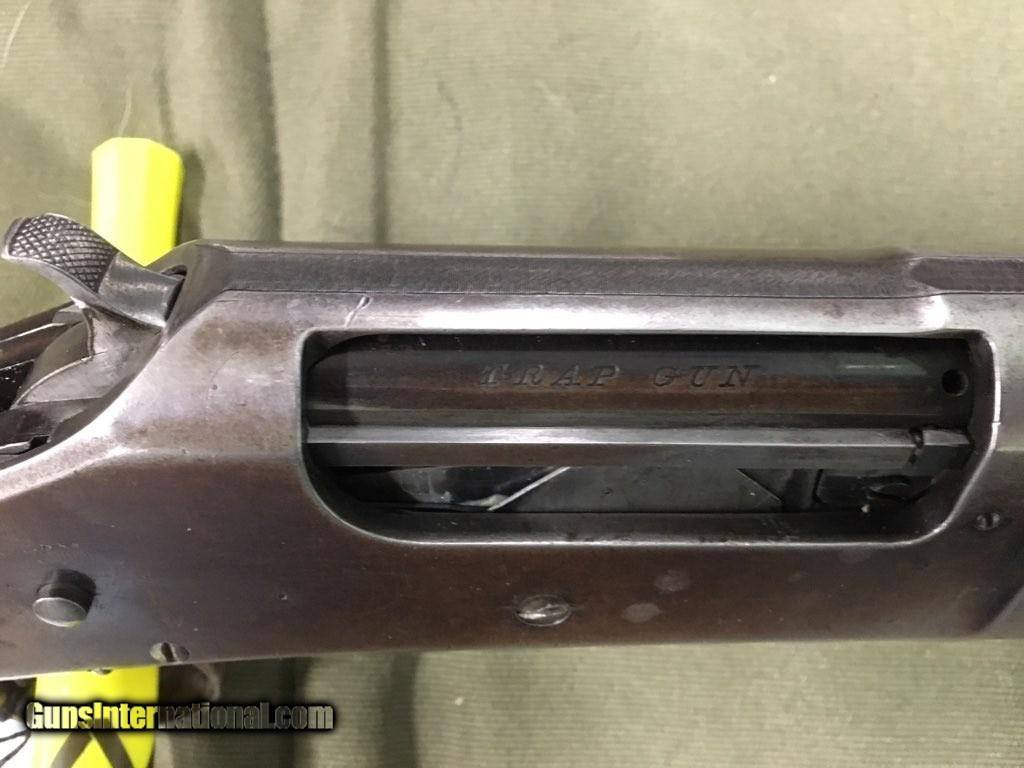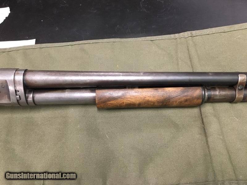 Description: Winchester M97 Black Diamond Trap Gun. 12 ga, 28" full choke. Reciever is matted barrel is not. Serial numbers do match. Checkered straight grip stock and fore end. Stock has been shortened and it needs a recoil pad. No rust or dents. Reciever finish mostly gone, barrel does retain most of the blueing. Bolt is marked "TRAP GUN". SOLD Curio/Relic: Yes Manufacturer: Winchester Model: 97 Barrel Length: 28 Condition: good Gauge Info: 12 ga. |