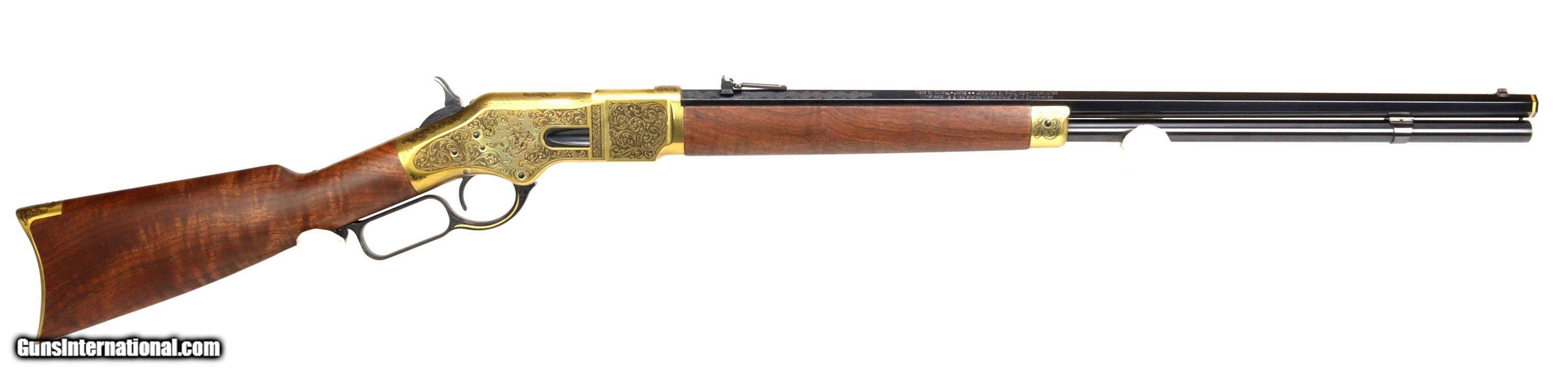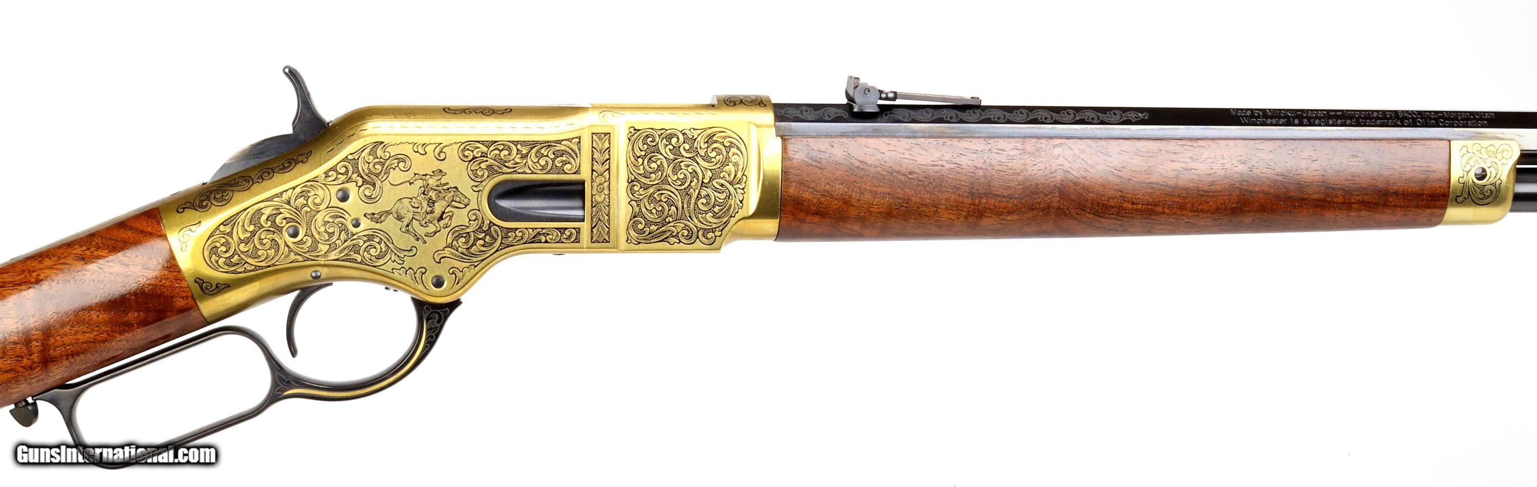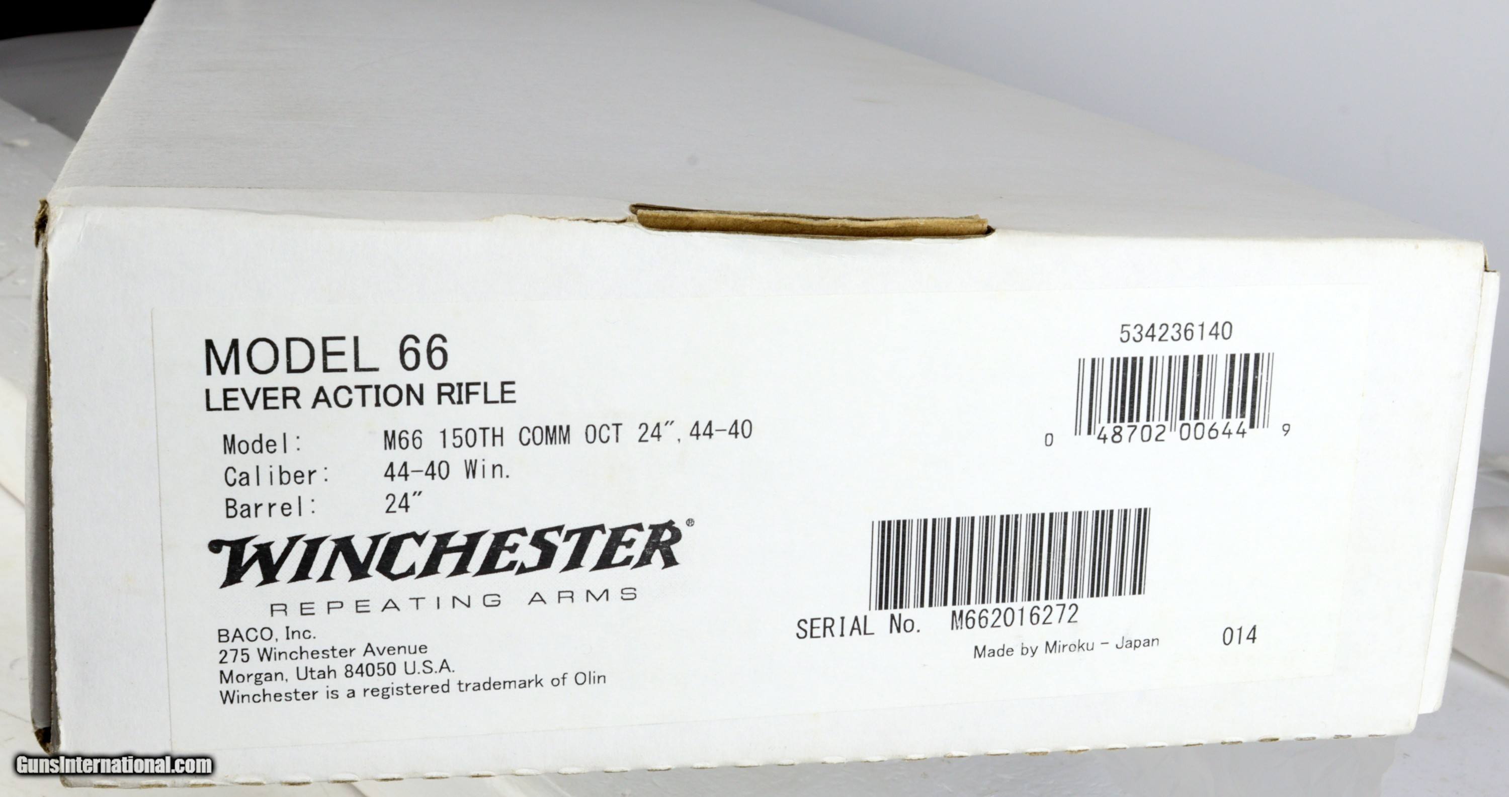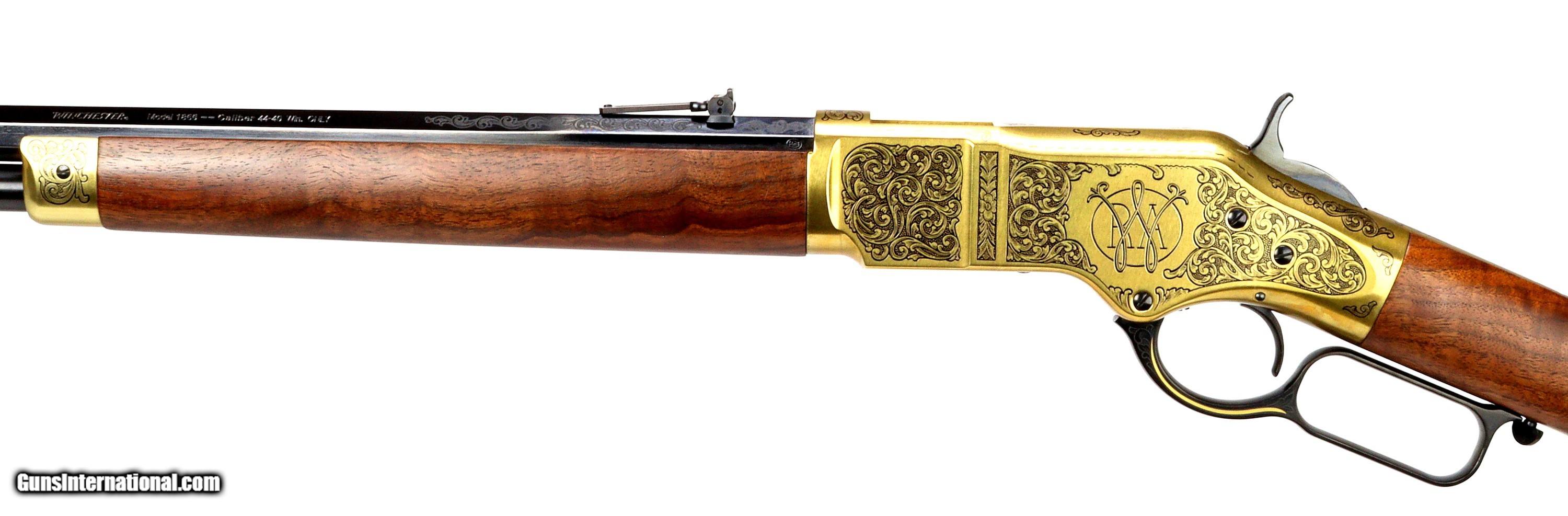 Description: WINCHESTER Model of 1866, COMMEMORATIVE, 1 0F 500, SN#M662016272, 44-40, MFG: 2016, 24" Barrel, Fully Engraved, New in Box. Unfired. Certain to be the "Centerpiece of a Winchester Collection. Weight: 8lbs, 2oz. SOLD Rifle Caliber: .44-40 Winchester |