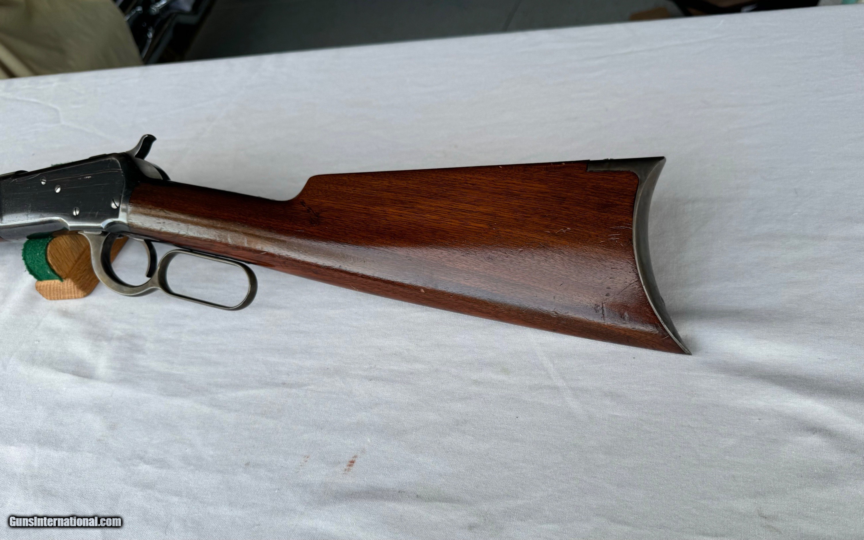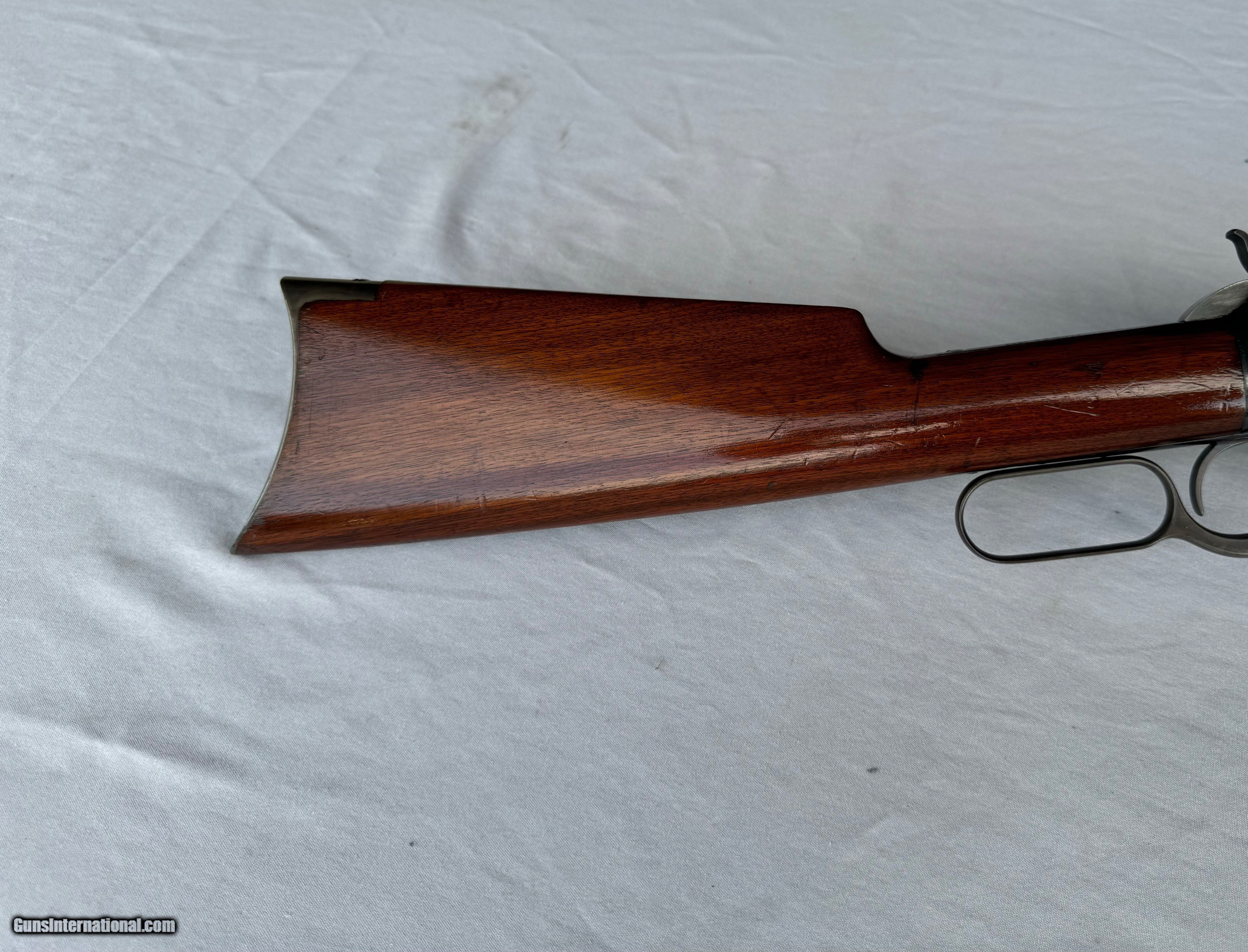 Description: Here's a High Condition Winchester Model 1892 in the Antique Range ! Serial number 147,465. Octagon Barrel, full magazine, original factory sights , rifle butt and in rare 25-20 caliber! These Antique 25-20's are scarce ! Gun has all of its solid blue finish still remaining on barrel and tube ! Frame also has all of its original solid blue finish still remaining ! With handling marks . Hammer , trigger and butt plate still have there Vivid Case Colors Remaining. Original walnut stocks have all of there original finish still remaining ! With lite handling marks . Bore is brilliant. Mechanics are in excellent condition , gun is in excellent working condition! Please review my photos and email me with any questions ? 3 day inspection as allways ! Thank you for looking, Little Jo SOLD Antique: Yes Rifle Caliber: .25-20 Winchester Manufacturer: Winchester Model: 1892 Serial Number: 147,465 Barrel Length: 24” Condition: Excellent Plus |