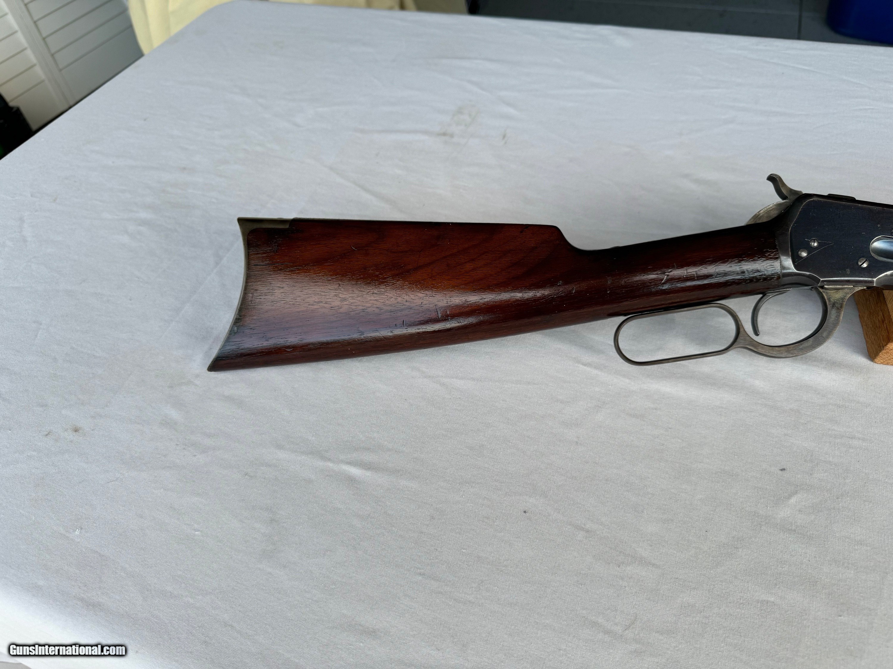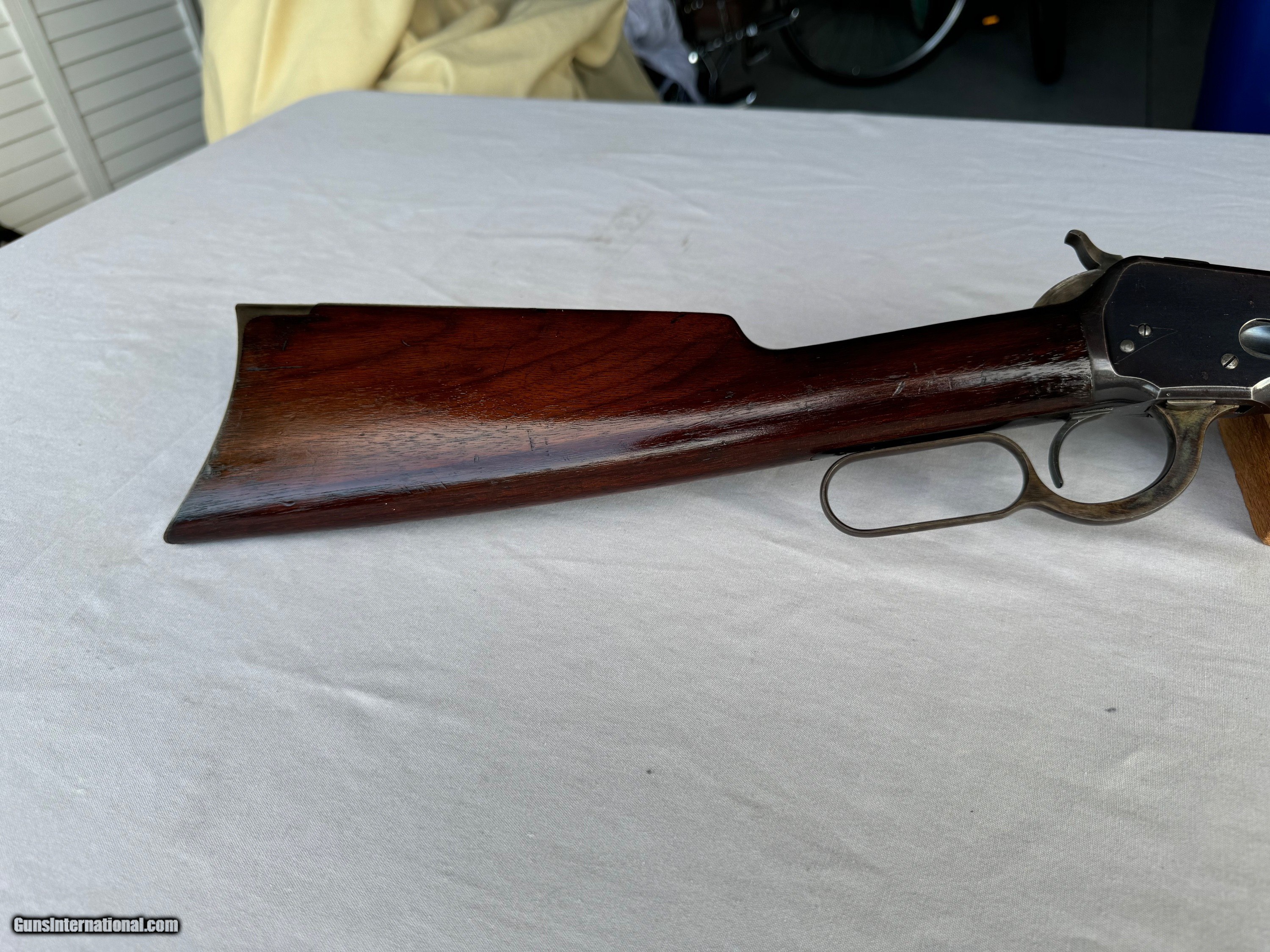 Description: Here's a High Condition Winchester Model 1892 in 44-40 and Antique! Serial number 19,585. R.B. , factory Winchester Sights , 44-40 caliber! Barrel and tube have most all of its solid blue finish slightly thinning . Frame has most all of its original finish still remaining with some lite edge wear and a few lite scratches and scuffs . Lever , hammer and butt plate still have Vivid Case Colors still remaining! Original Walnut Stocks have all there original finish still remaining. With lite handling marks . Bore and mechanics are in excellent plus condition. Gun locks up tight and is in excellent working condition ! Please review my photos and email me with any questions? 3 day inspection as allways ! Thank you for looking ! Little Jo SOLD Antique: Yes Rifle Caliber: .44-40 Winchester Manufacturer: Winchester Model: 1892 Antique Serial Number: 19,585 Barrel Length: 24” Condition: Stunning |