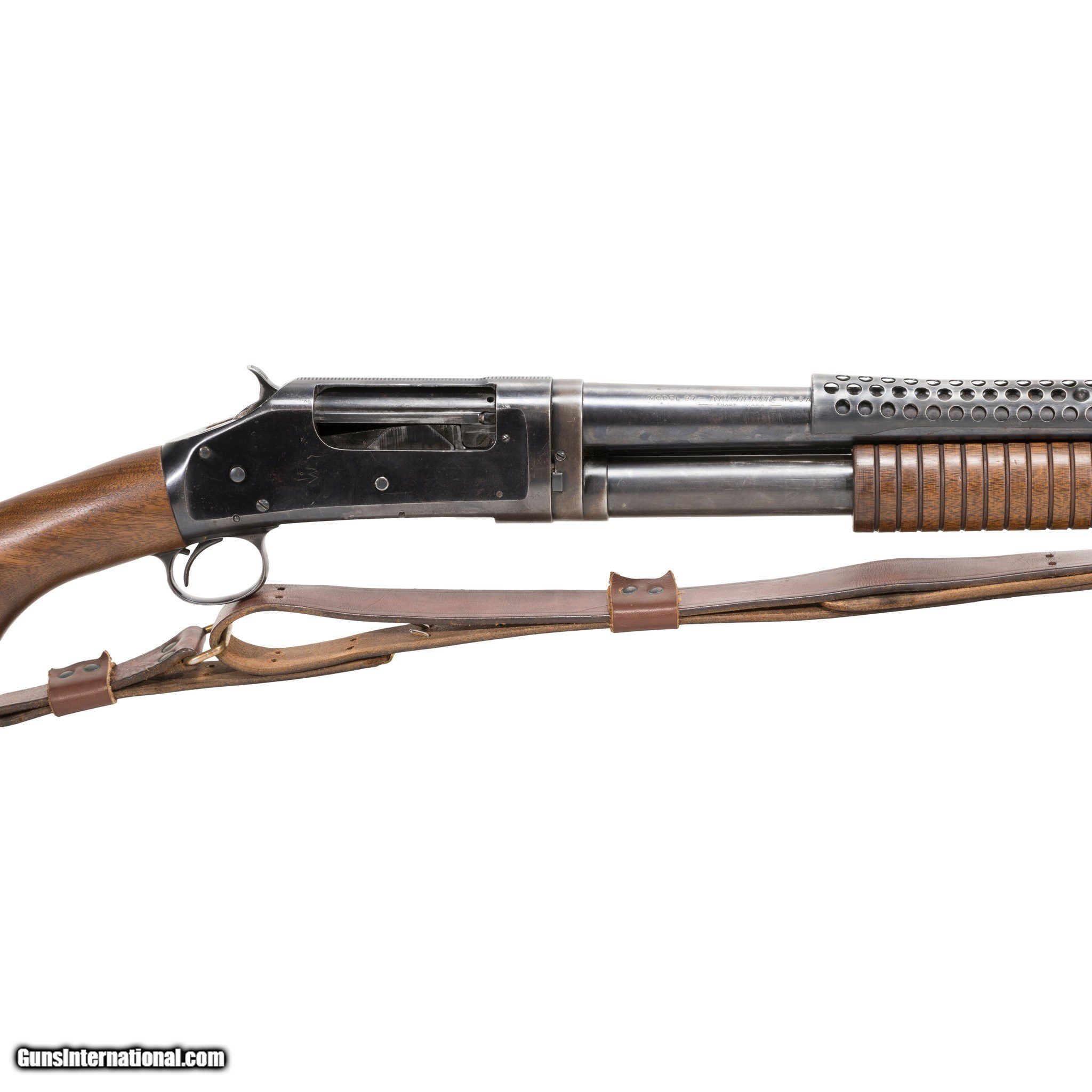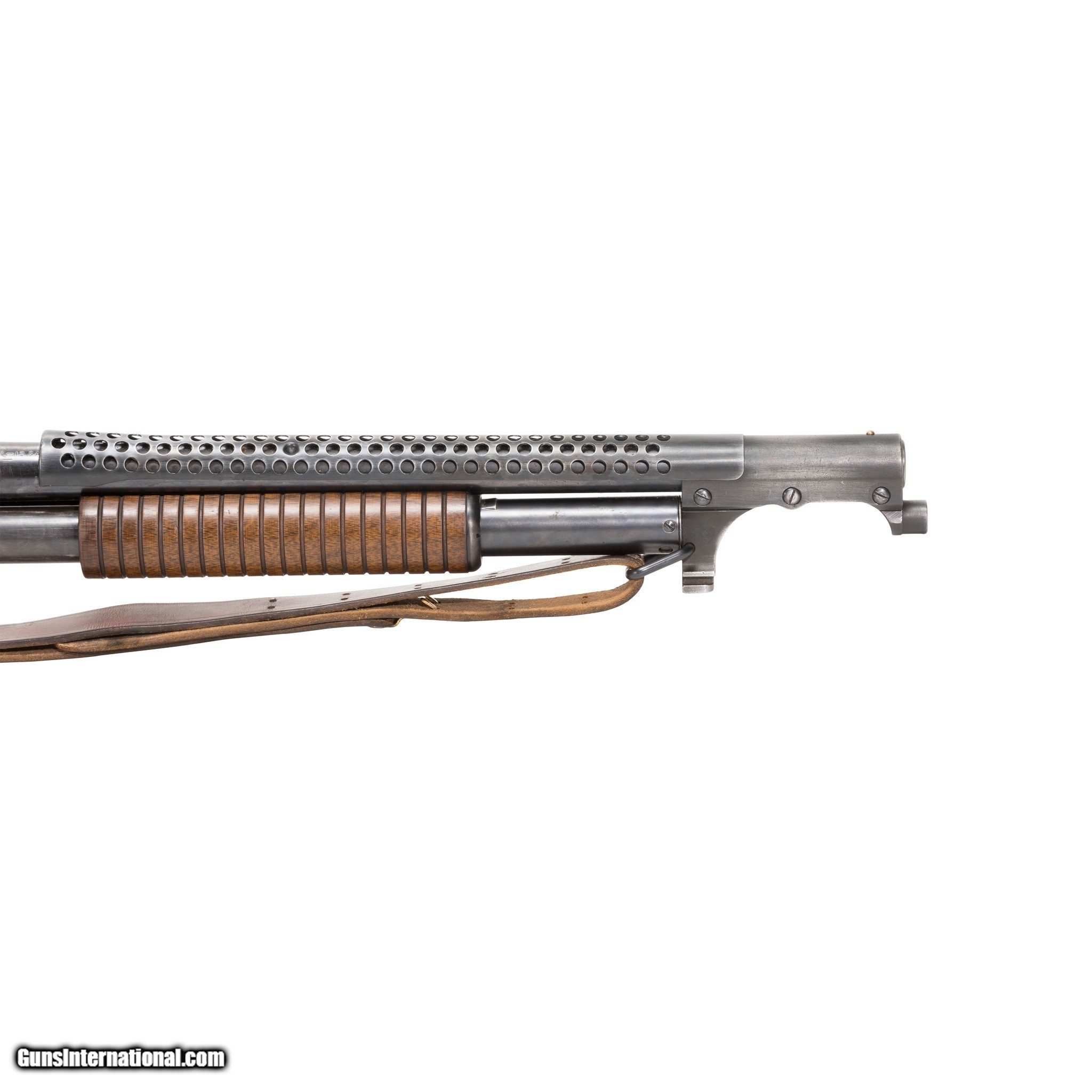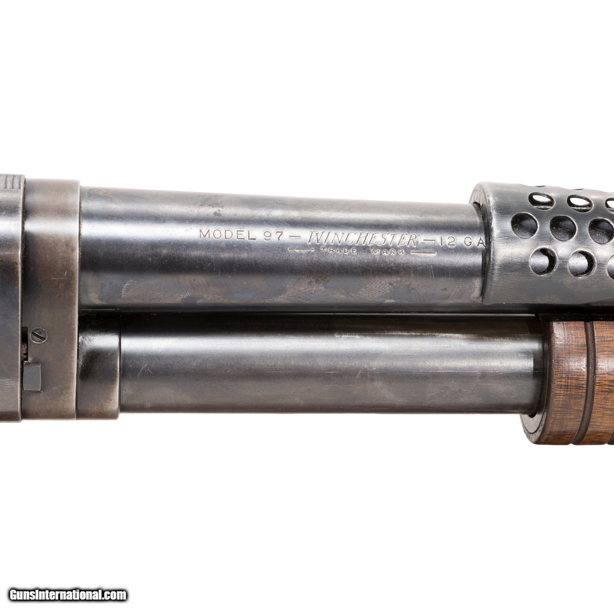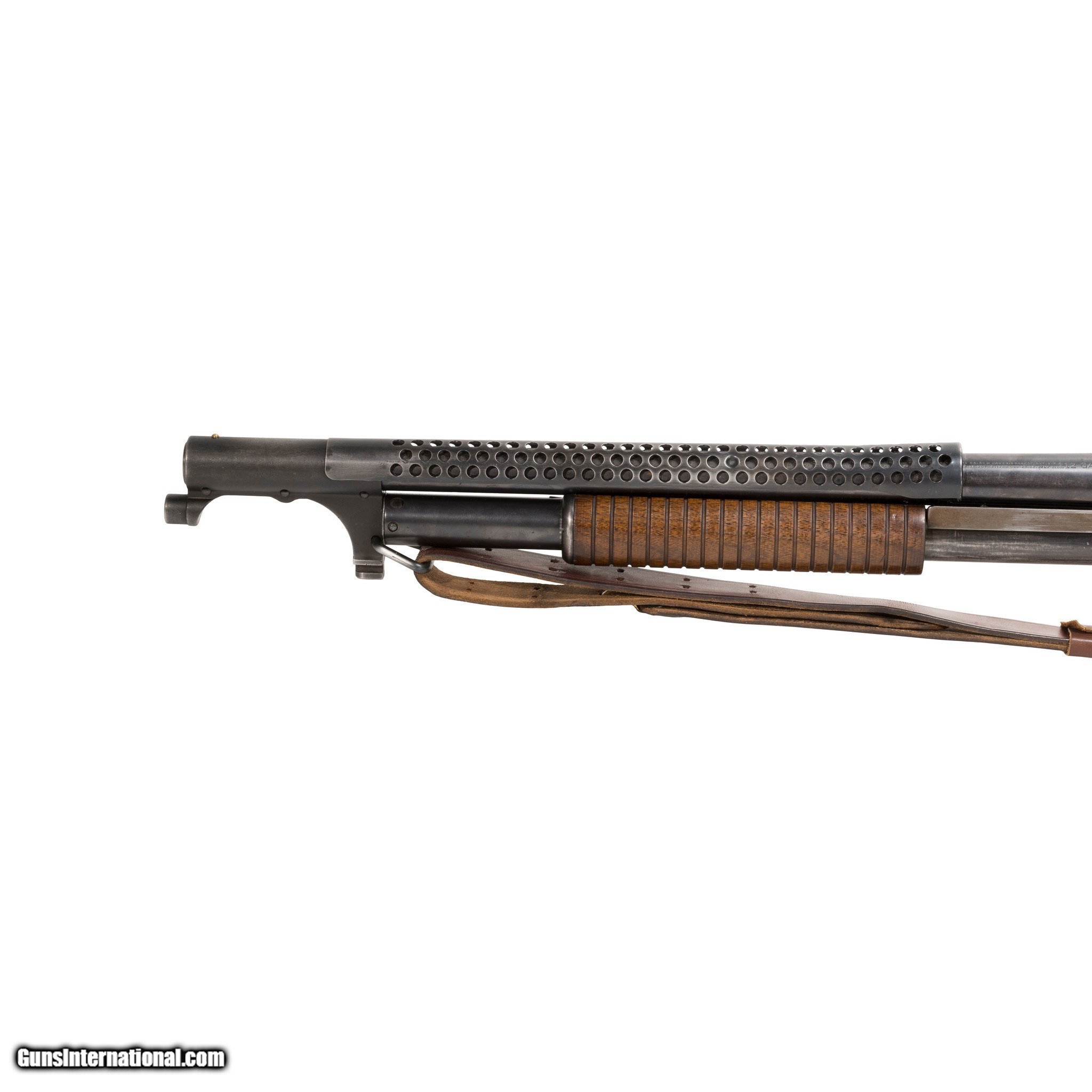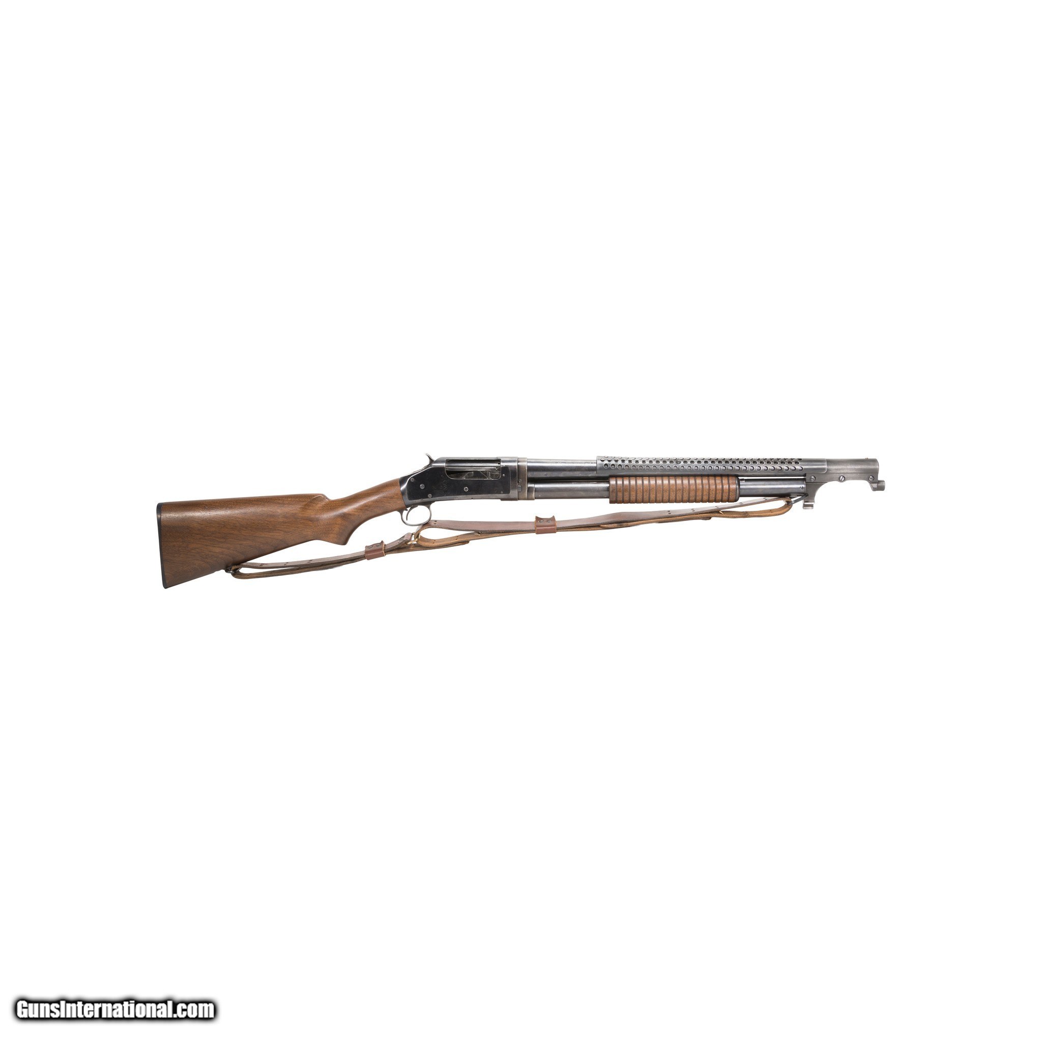 Description: Winchester Model 1897 slide-action 12 gauge w/ trench gun heat shield, bayonet attachment and leather sling. Manufactured in 1941. Serial #E885089 FFL required SOLD Shotgun Gauge: 12 Gauge Manufacturer: Winchester Model: 1897 Serial Number: E885089 Barrel Length: 19 |