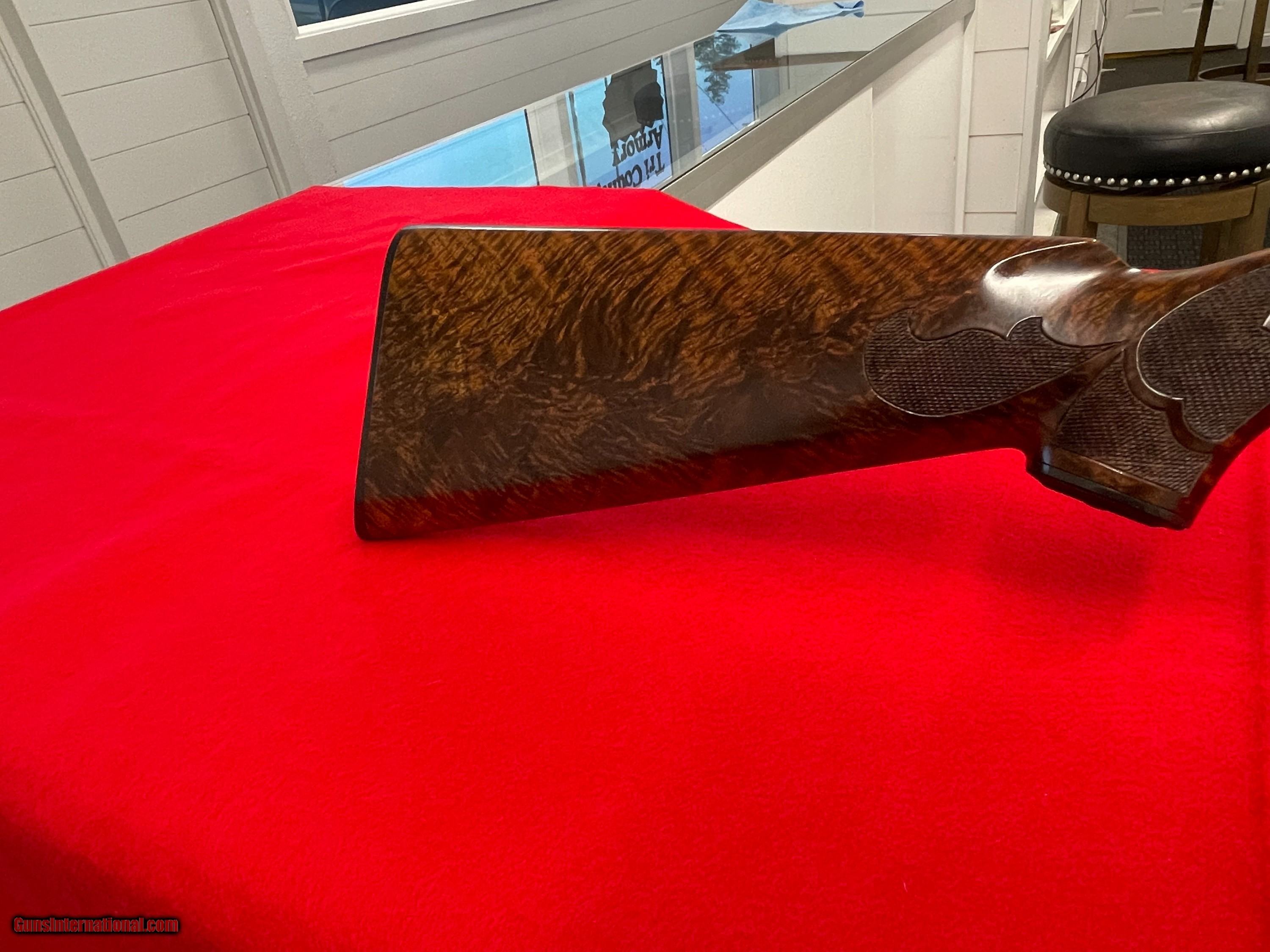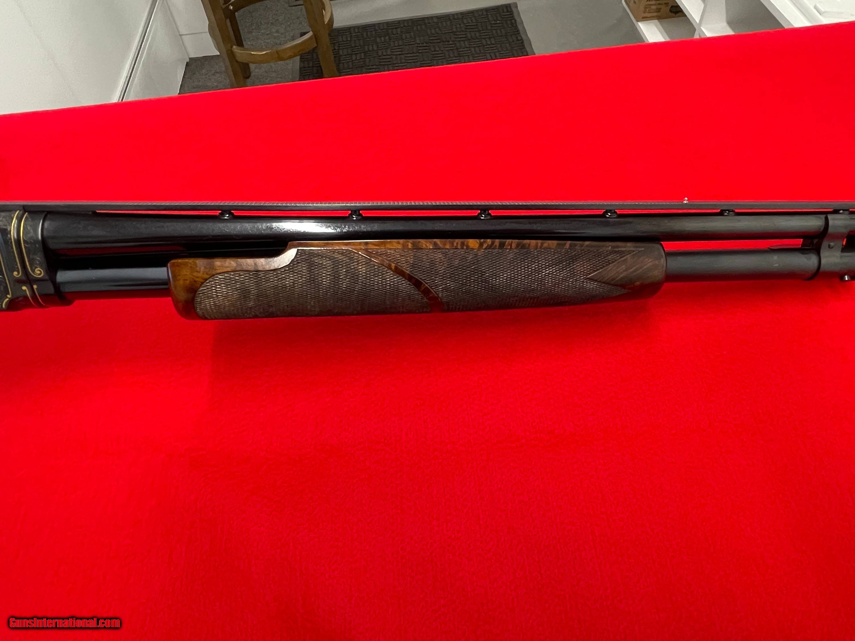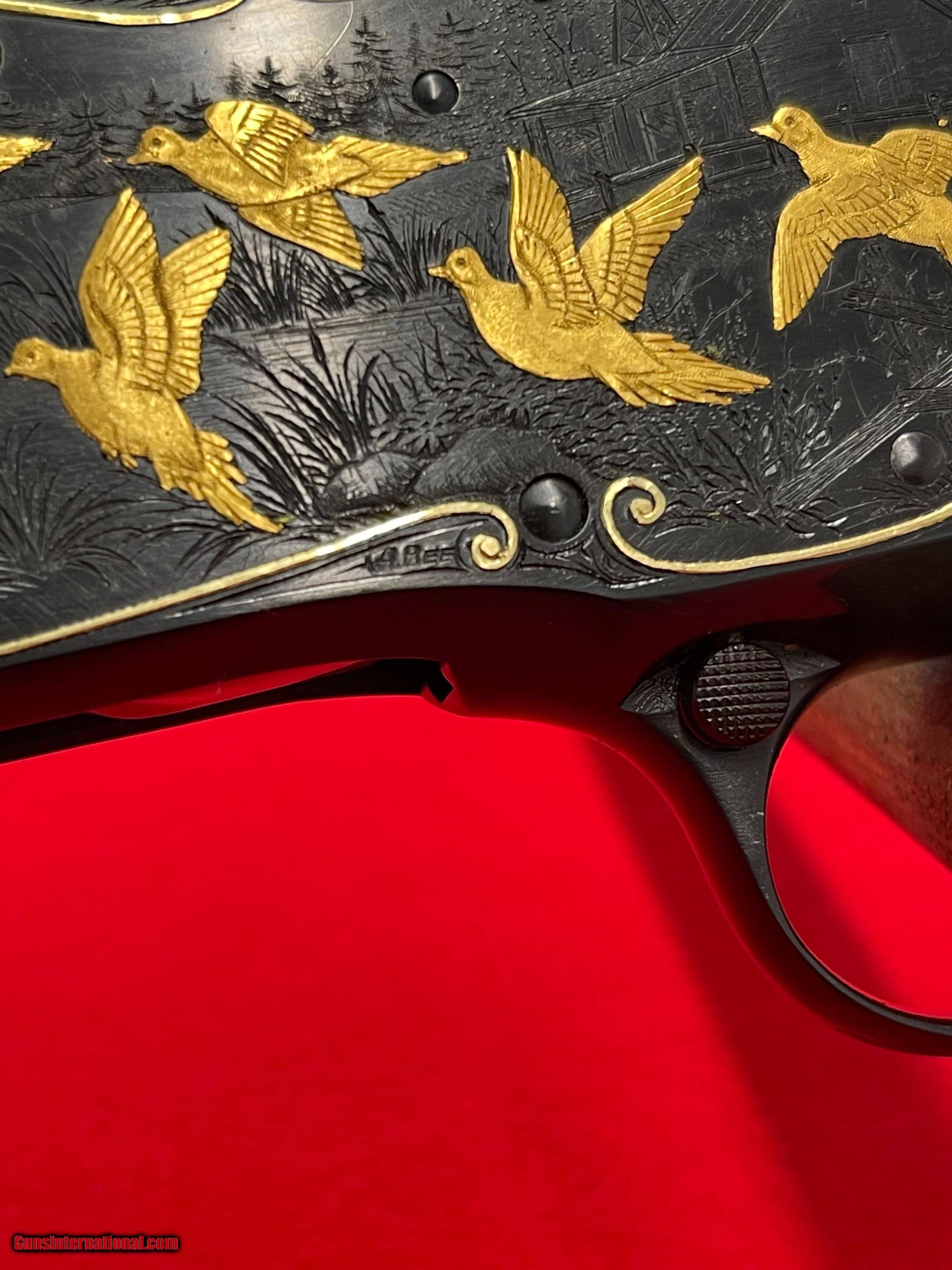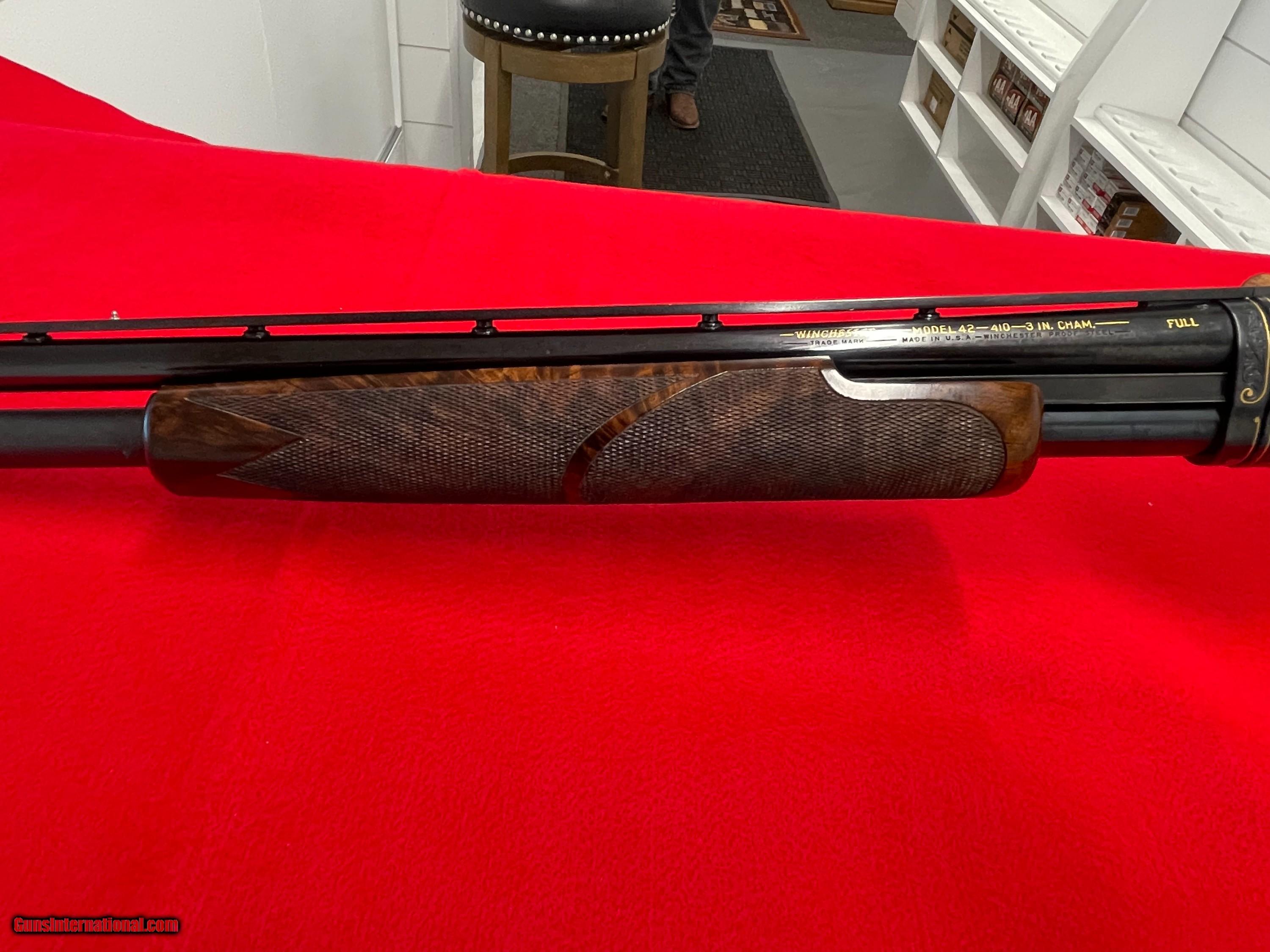 Description: This is the holy grail of Winchester shotguns, this is a model 42 deluxe grade ,ventilated rib MFG 1957 engraved by none other than Angelo Bee. This gun speaks for itself and would be a fine gun to add to any collection . SOLD Shotgun Gauge: .410 Gauge Manufacturer: Winchester Model: 42 Serial Number: 135498 |