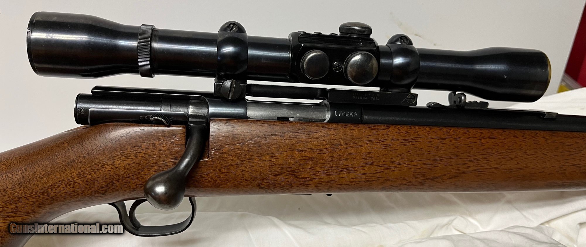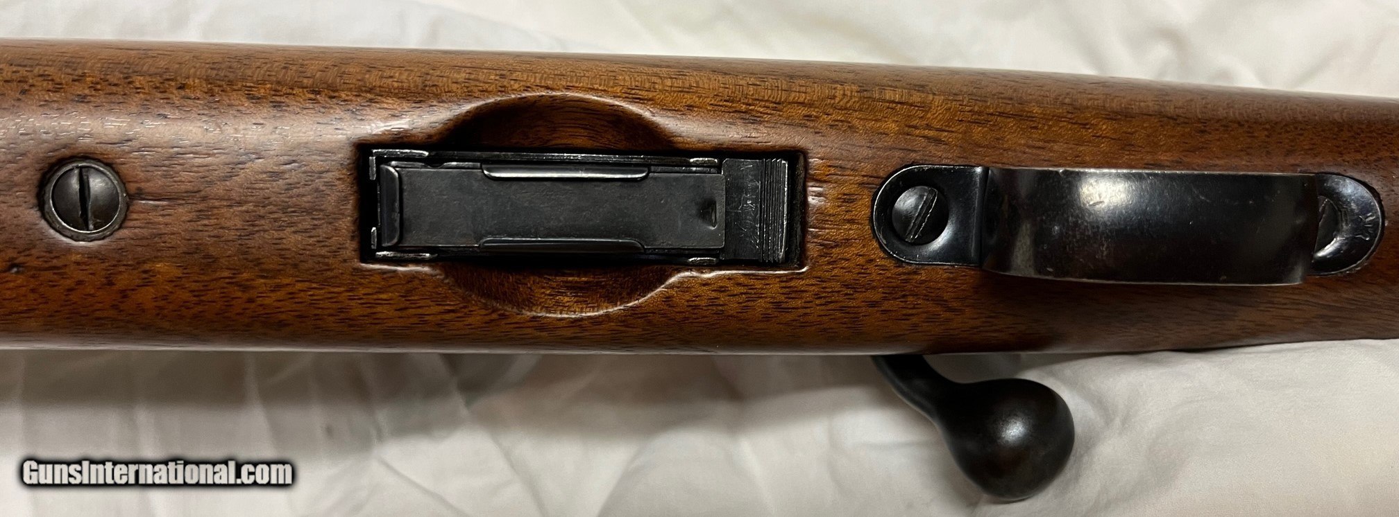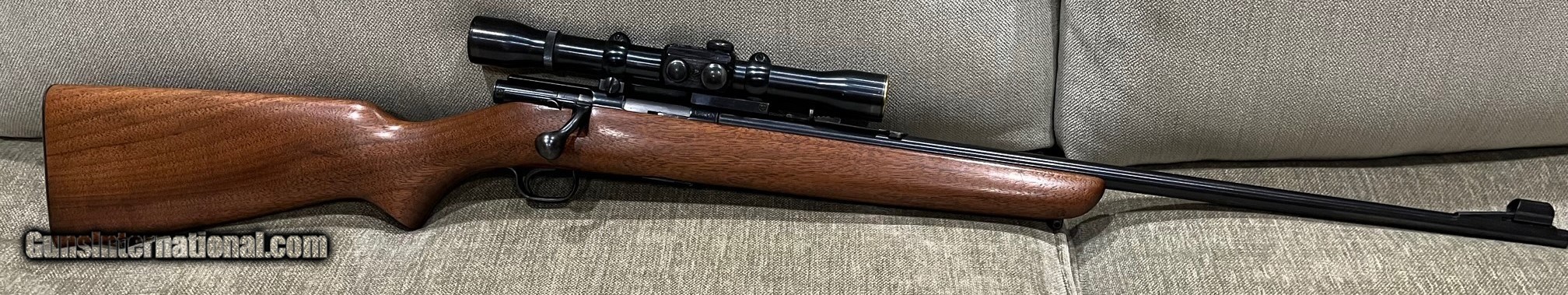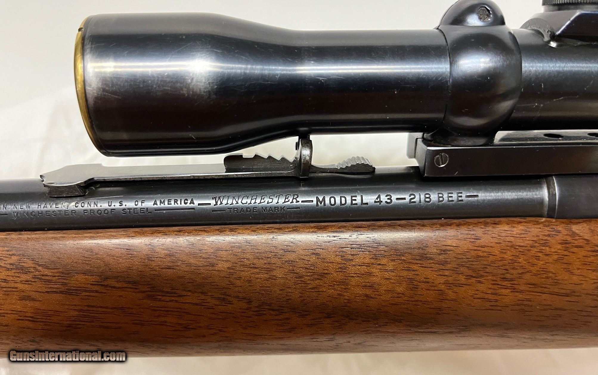 Description: For sale is a Winchester Model 43 .218 Bee in excellent condition/minty. This rifle was given to an acquaintance in 1953-54 when it was purchased. The Buehler mounts and vintage Weaver KV scope were added when purchased. The fine walnut stock has no dings or scratches, save for a couple of very small blemishes on the right side of the butt and the metal is in near perfect condition. The vintage Weaver scope works as designed and has the clarity of modern optics. You will be delighted with the accuracy of the this rifle as it will regularly shoot 1/4"-1/2" groups at 50 yards with factory ammo. For a vintage Winchester rifle, this one is about as close as one can be to perfection. For those who desire vintage Winchesters and vintage Weaver scopes, this is a fine specimen.Serial number: 17660A. Manufactured in 1950. Note: The rifle will come with the original sling rings as noted in the picture and two boxes of factory ammo. Payment by bank cashiers check or USPS money order only. Shipping will be $50 with appropriate insurance. FFL required. SOLD Rifle Caliber: .218 Bee |