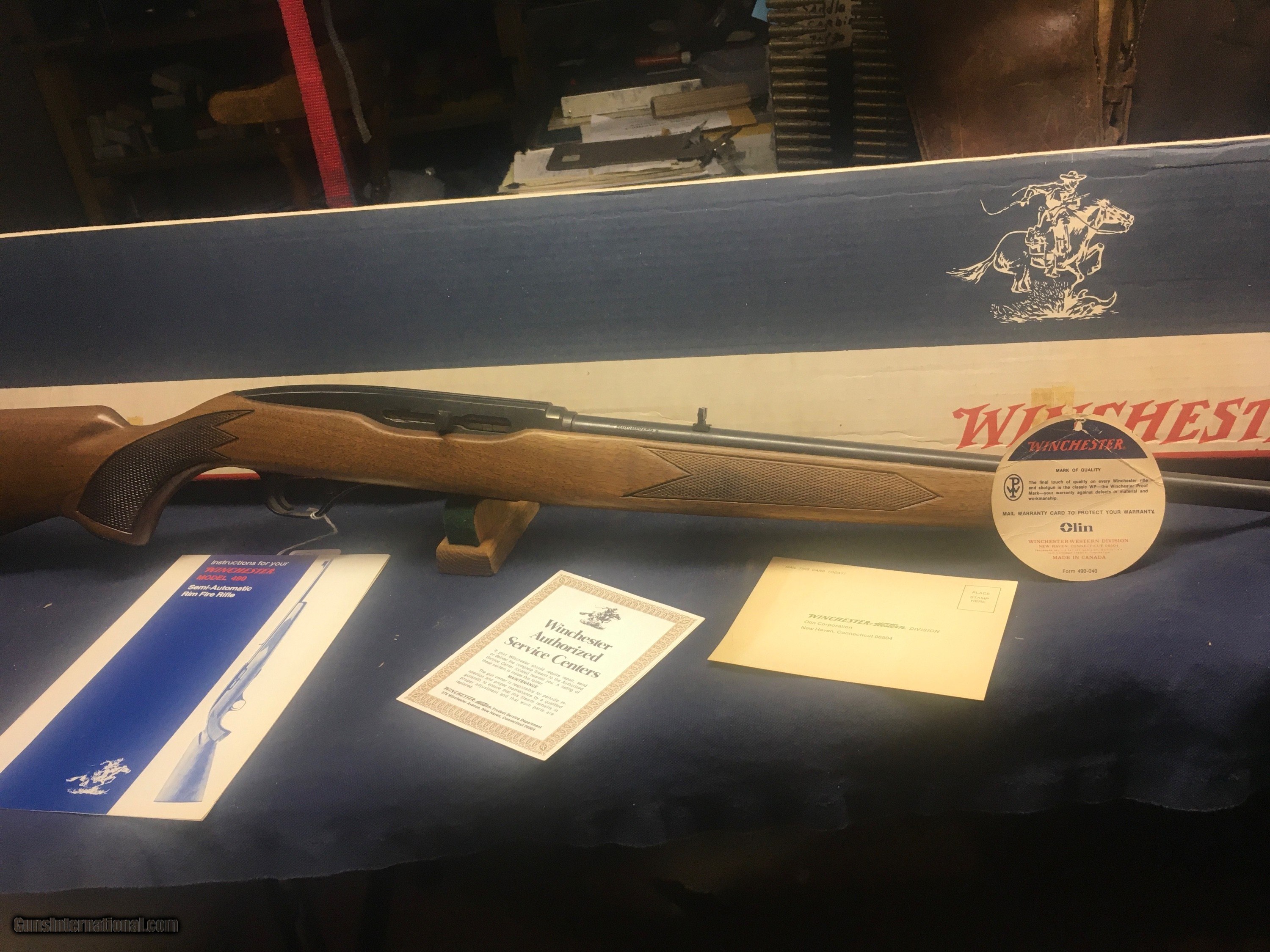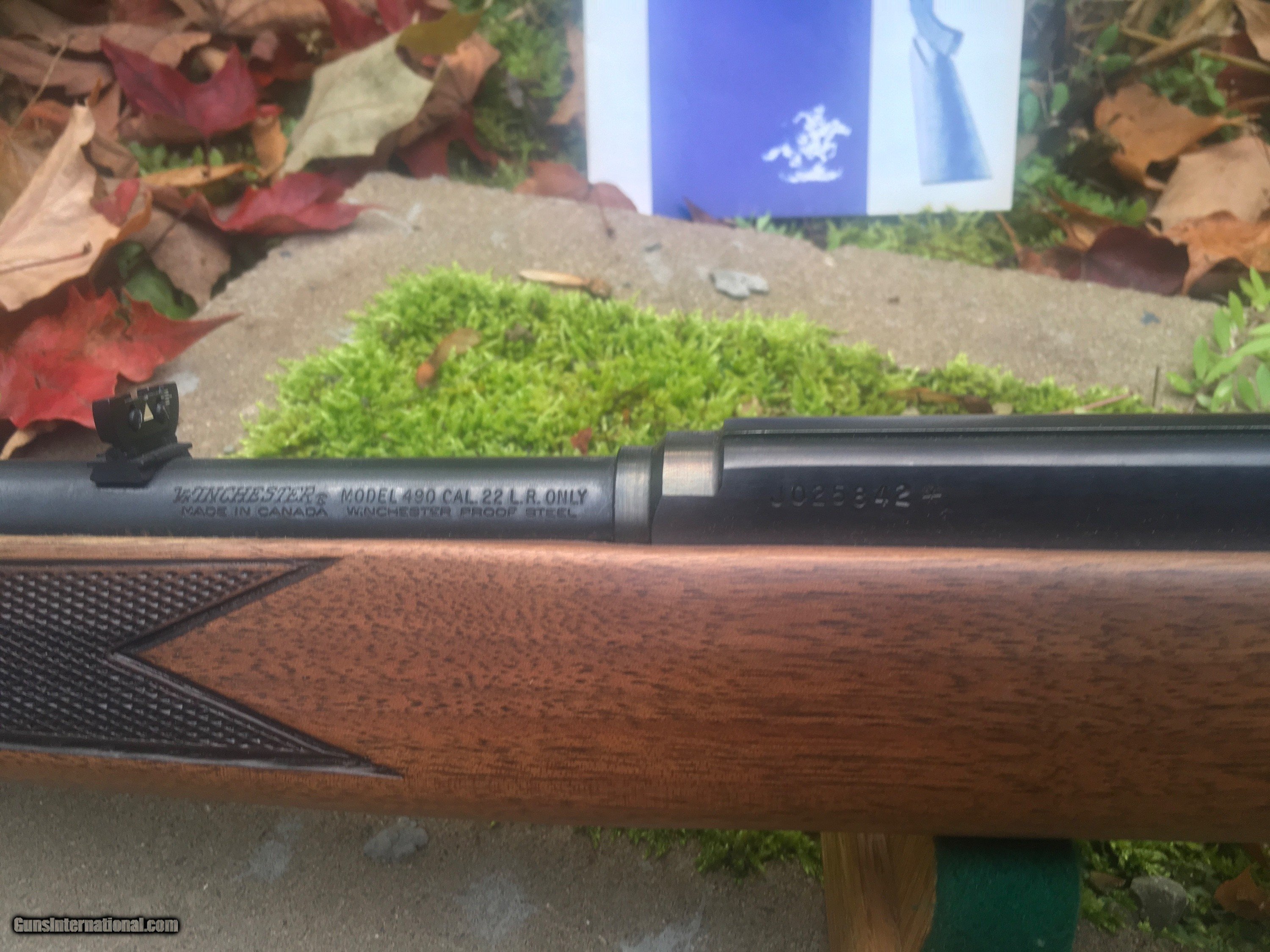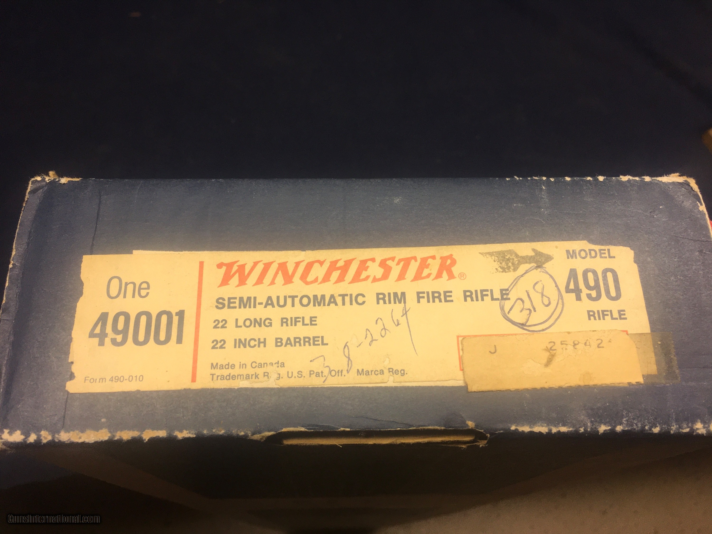 Description: SOLD Listing this Winchester model 490 22 auto rifle with box and original paper work as unfired new in the original box, I'd bought it as such and never fired it, it appears to have never been fired and bears the ( asterisk ) * after the serial number as being corrected as to a recall made on these fine looking rifles. Often referred to as the mini 100 it is 42" long and weigh's in at 7 lb's so fellas she's a rifle. They were Mfg'd at the Cooey Plant in Coboury, Ontario from 1974-77 , total of around 59k and were sold out by 1980., this one sn Jo 25842 looks to be in the middle of the production years. I ship only to a FFL on this fine rifle and my price includes priority insured through the USPO., tracking number provided to lower 48. I accept postal M.O. or cashiers check, any questions please call or text me at 920-590-3400 thanks and enjoy your day, if your a new in box collector this should please you, SOLD to Terry McDonald from Sagola , Mich , will pick up SOLD Rifle Caliber: .22 Long Rifle Manufacturer: Winchester Model: 490 Serial Number: Jo-25842* Condition: New Metal Condition: New Wood Condition: New Bore Condition: New Barrel Type: Round Action: Auto Triggers: Single Stock: Walnut Stock Drop: Checkered Fore End: Checkered Butt Pad: Plastic Finish: satin Weight: 7 lb Sights: Open Manufacture Date: 1974-1978 Extras: box- paper work |