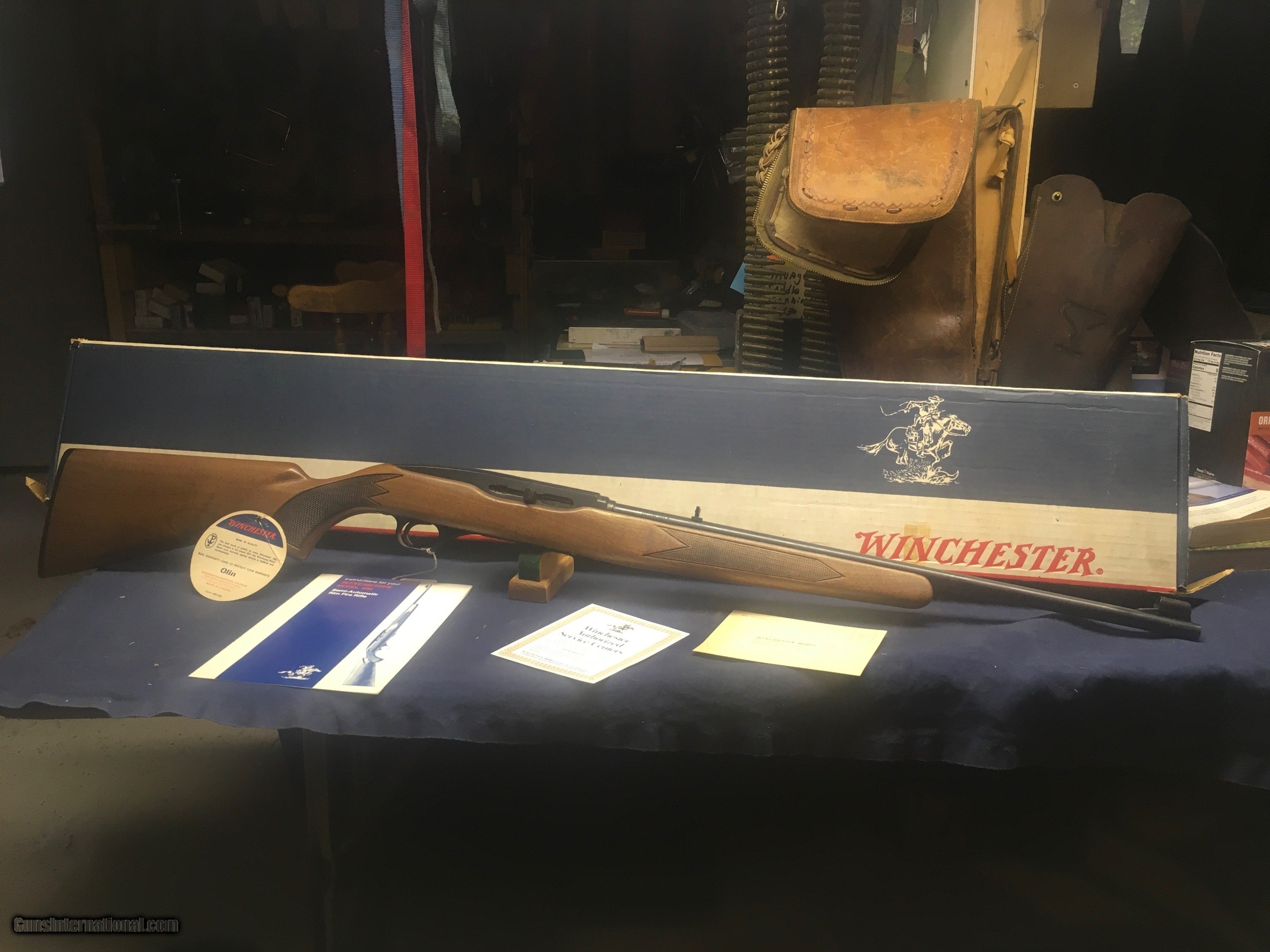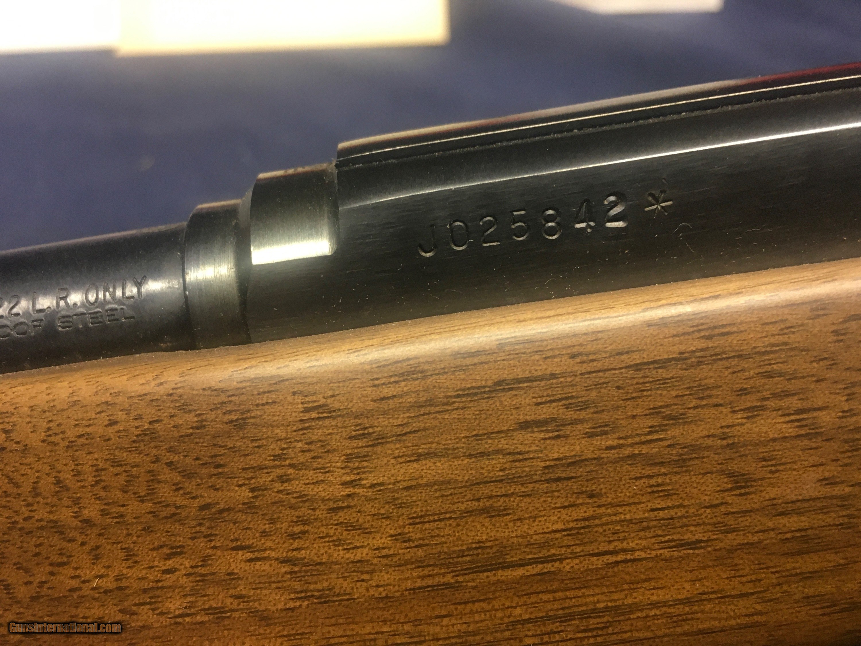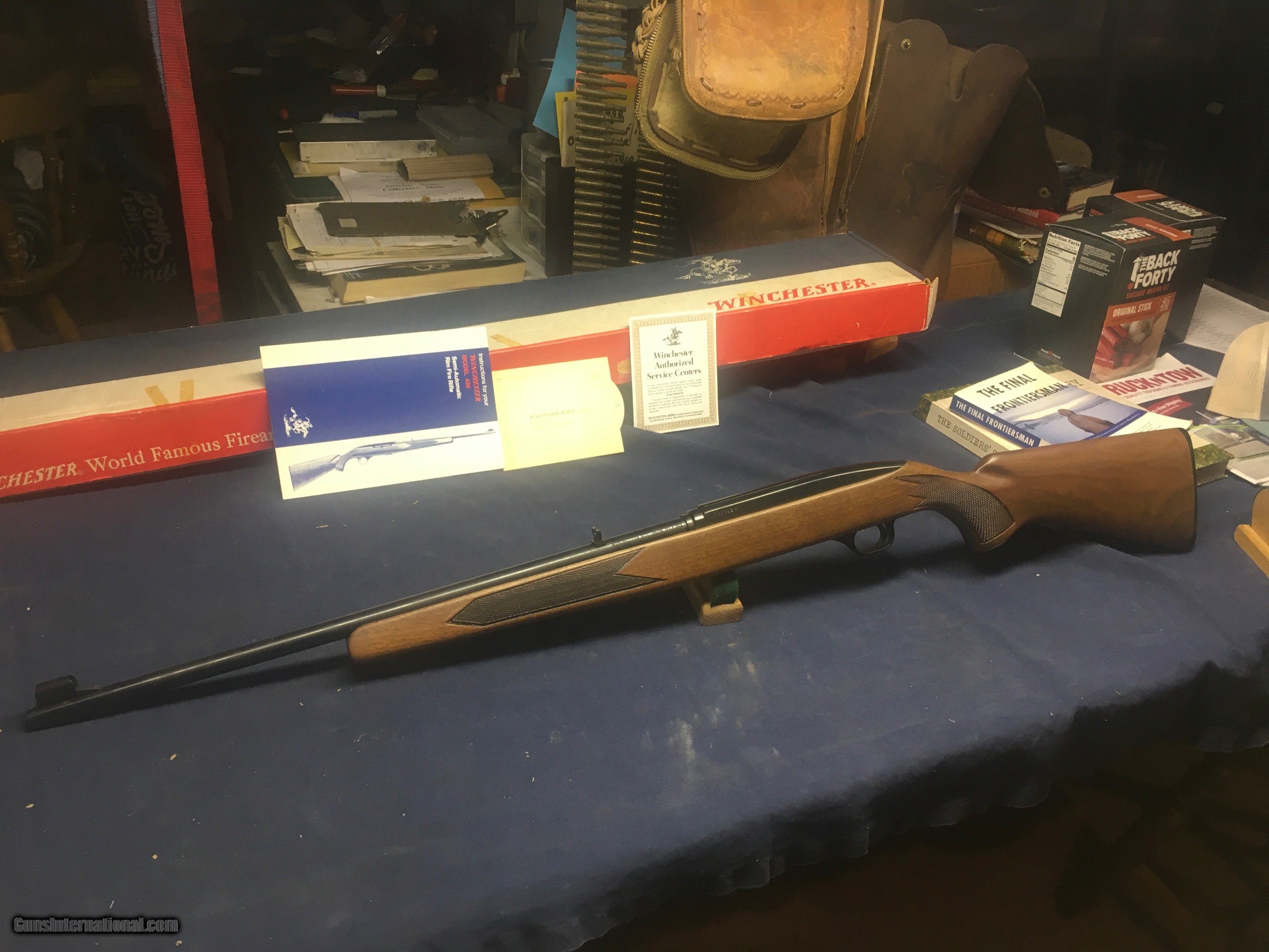 Description: SOLD Listing this Winchester model 490 22 auto rifle with box and original paper work as unfired new in the original box, I'd bought it as such and never fired it, it appears to have never been fired and bears the ( asterisk ) * after the serial number as being corrected as to a recall made on these fine looking rifles. Often referred to as the mini 100 it is 42" long and weigh's in at 7 lb's so fellas she's a rifle. They were Mfg'd at the Cooey Plant in Coboury, Ontario from 1974-77 , total of around 59k and were sold out by 1980., this one sn Jo 25842 looks to be in the middle of the production years. I ship only to a FFL on this fine rifle and my price includes priority insured through the USPO., tracking number provided to lower 48. I accept postal M.O. or cashiers check, any questions please call or text me at 920-590-3400 thanks and enjoy your day, if your a new in box collector this should please you, SOLD to Terry McDonald from Sagola , Mich , will pick up SOLD Rifle Caliber: .22 Long Rifle Manufacturer: Winchester Model: 490 Serial Number: Jo-25842* Condition: New Metal Condition: New Wood Condition: New Bore Condition: New Barrel Type: Round Action: Auto Triggers: Single Stock: Walnut Stock Drop: Checkered Fore End: Checkered Butt Pad: Plastic Finish: satin Weight: 7 lb Sights: Open Manufacture Date: 1974-1978 Extras: box- paper work |