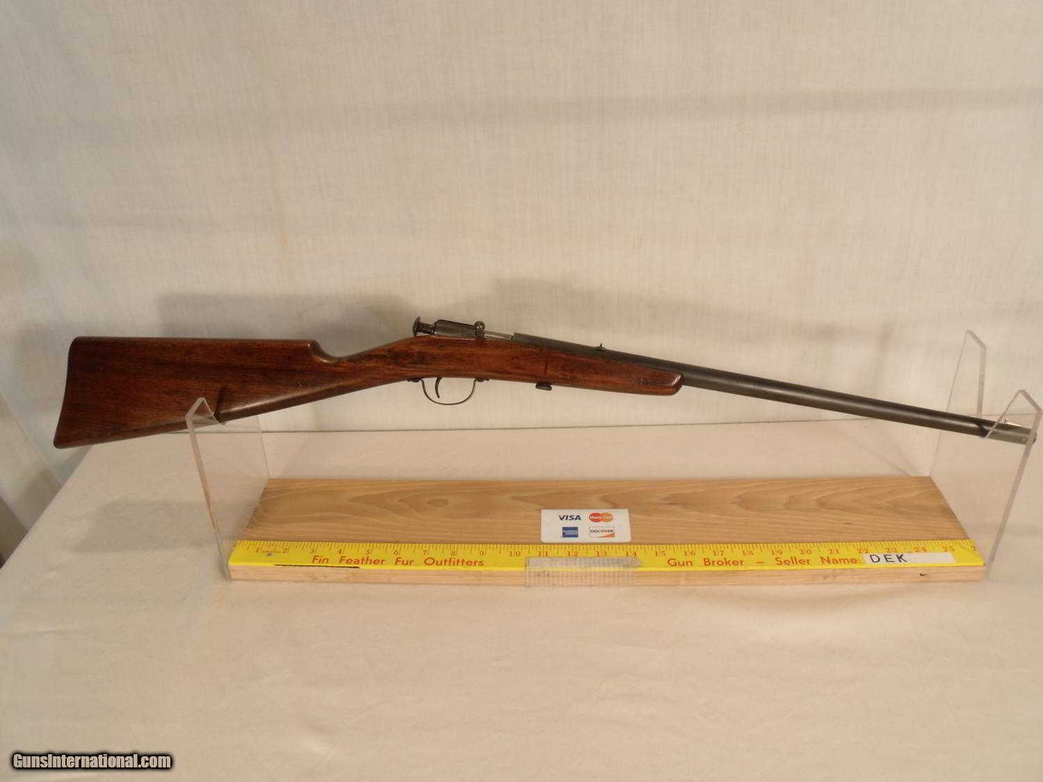 Description: Winchester Model 58 single shot 22 short, long and long rifle. 18 inch barrel with a perfect bore, unusual on a gun of this period. Weighs only 2 3/4 pounds. repared crack in wrist. The usual dings for a gun of this age. $40.00 shipping and insurance. I take plastic for 3% SOLD Curio/Relic: Yes Antique: Yes |