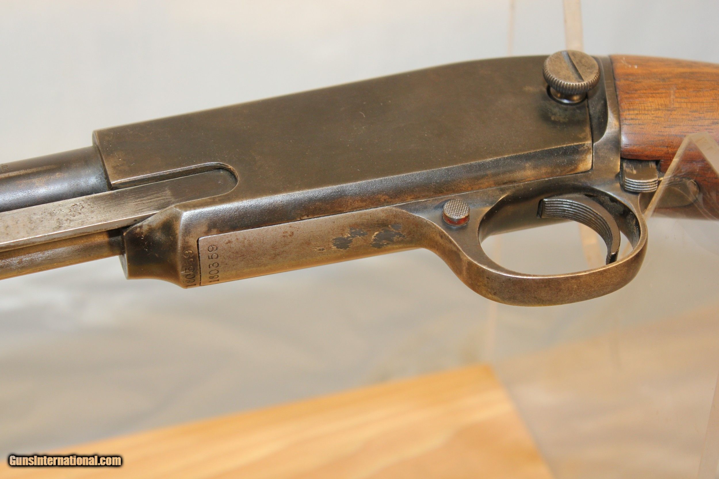 Description: A nice solided Winchester Model 61 pump rifle with sound wood and good blue. The fore arm has some damage on the left side. All original parts. Very good bore and a 24 inch barrel. Steel checkered butt plate. The pictures are part of the discription and should be examined closely. This gun was made in 1952. C&R OK $50.00 Shipping via Priority Mail SOLD |