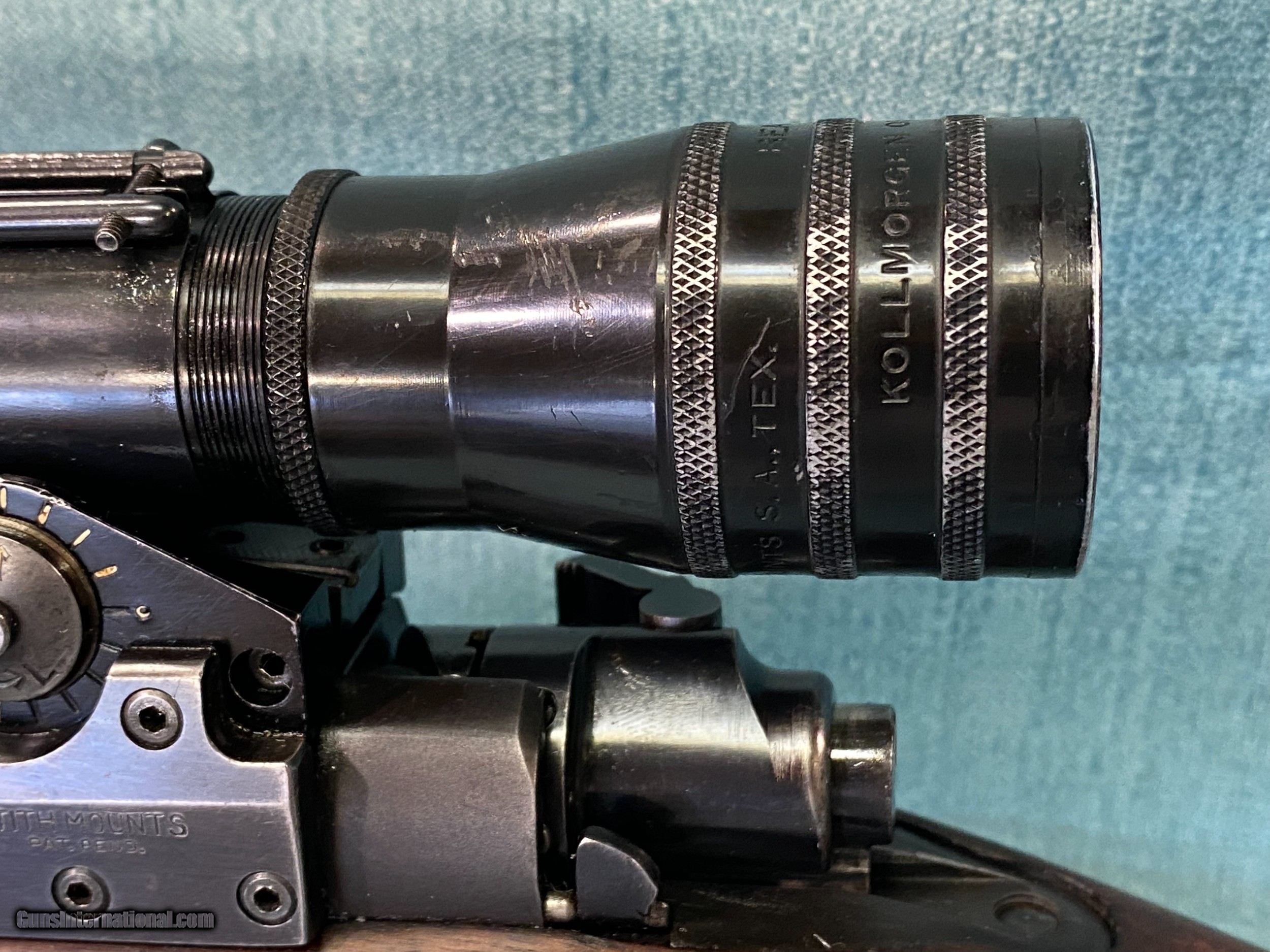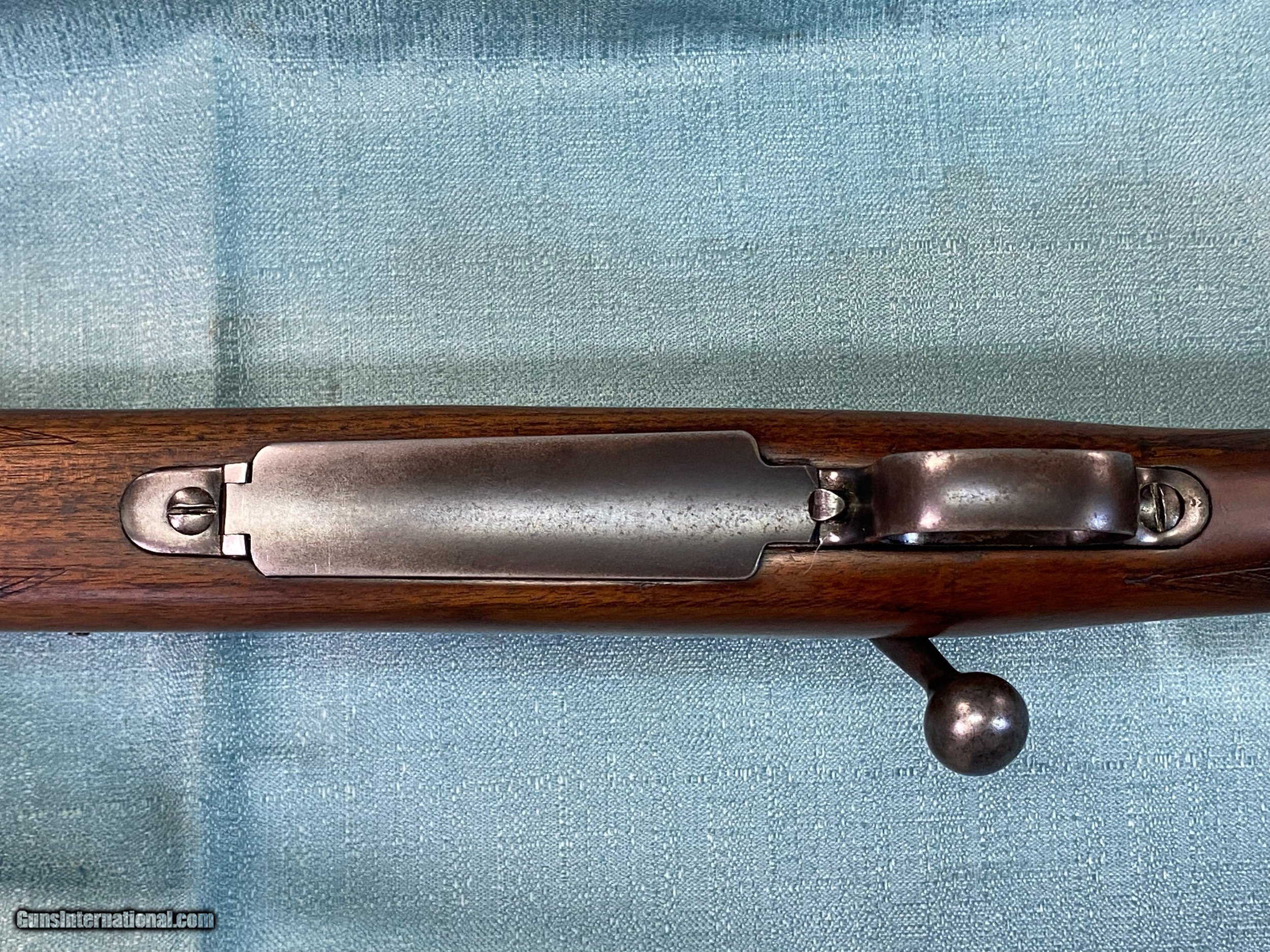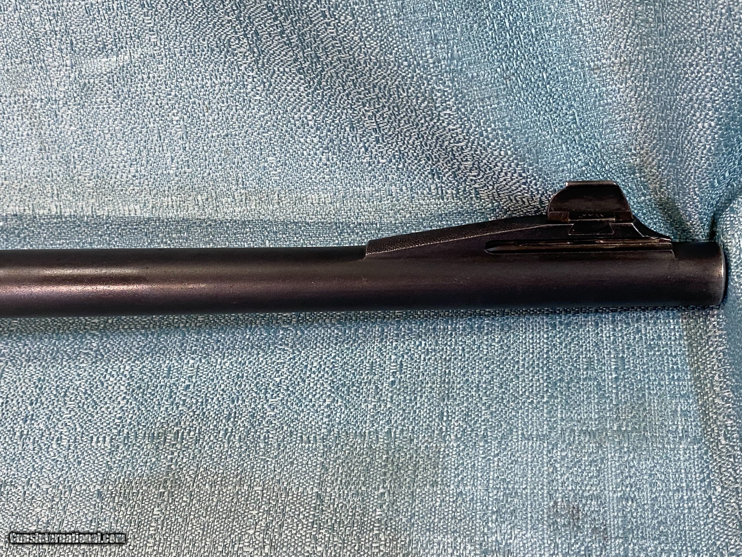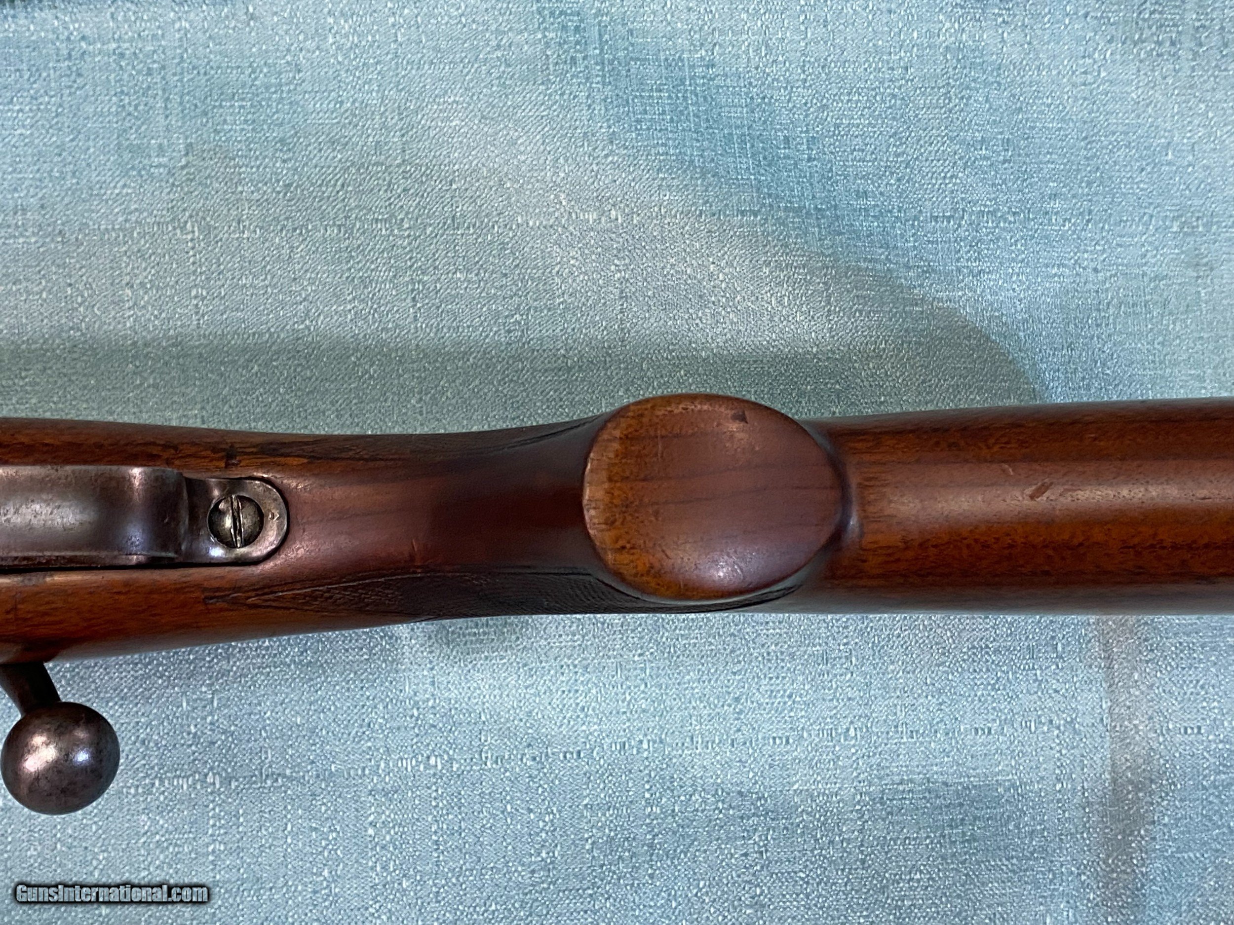 Description: This is a pre 64 Winchester model 70 Chambered in 300 H&H mag. This is one of the more desirable chambering in the early model 70. Manufactured in 1948 puts this rifle at the end of the "Transitional" period rifles between the post war models and the standard pre 64 model. It has a mirror like bore. This des not appear to be drilled and tapped at the top of the rear bridge but is on the side. It is drilled and tapped on the front of the receiver on the top. It has a 3 position forward swing safety lever and the bolt serial # matches the rifle. It has a secondary magnum stock bolt part way down the barrel. There are no cracks in this stock. the left side has some scratches it has acquired over the years. It has a Vintage scope mounted that says "Bear Cub Master" on the rear ring and "Kollmorgan Optical Corp" behind that. It uses external windage and elevation adjustments on "Smith Mounts" this scope has fine cross hairs and still has clean glass. Please do not hesitate to call and inquire about any items I may have missed that are pertinent to this rifle. Maine Residents add 5.5% sales Tax SOLD Rifle Caliber: .300 H&H Magnum Manufacturer: Winchester Model: 70 Pre 64 Serial Number: 84486 Barrel Length: 26 Condition: Very Good Metal Condition: Very Good Wood Condition: Good Bore Condition: Excellent Action: Bolt Controlled round Feed LOP: 12-5/8 Manufacture Date: 1948 Item Location: Buxton Maine |
