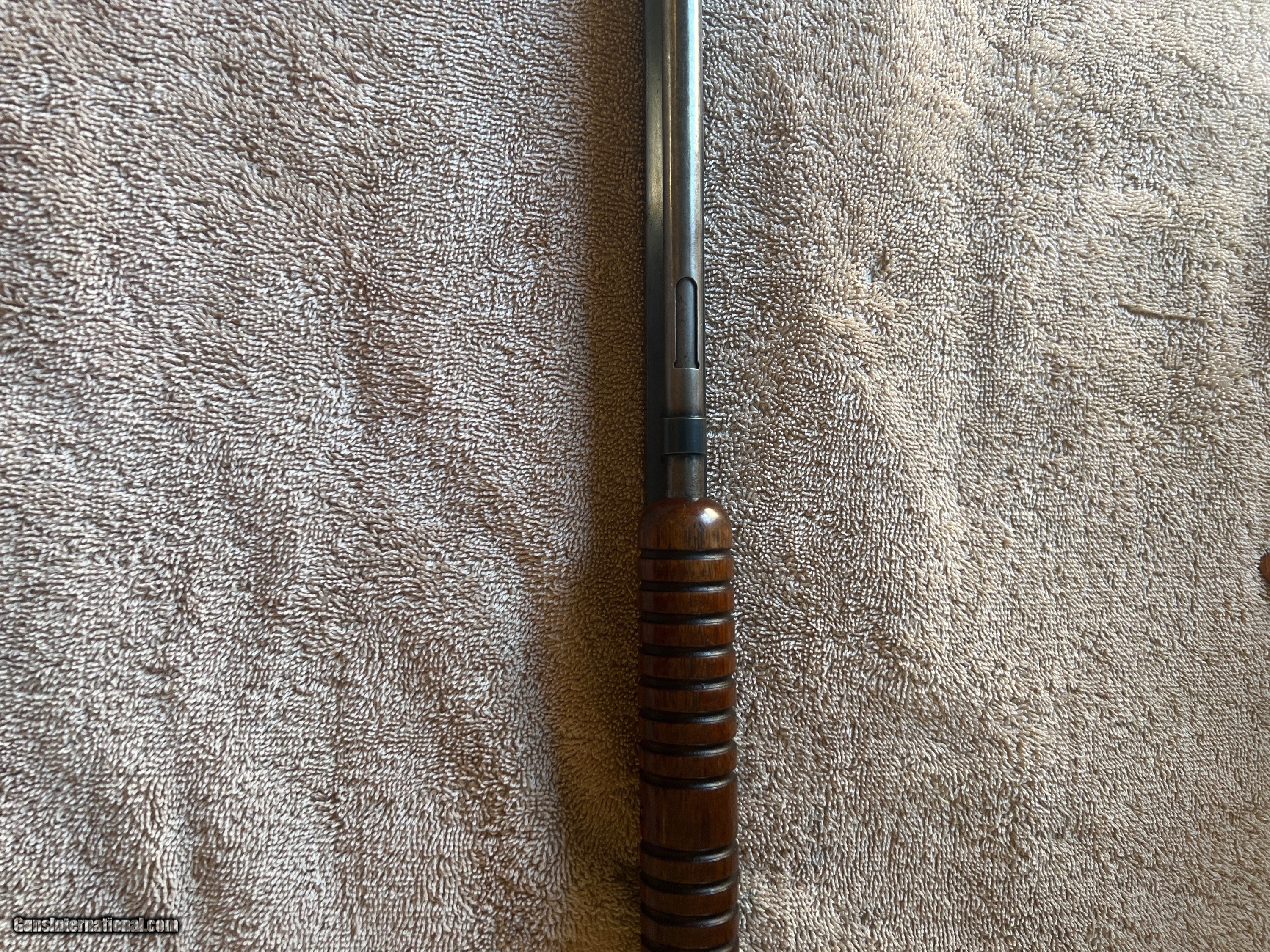 Description: This is a 1925 true model 90 22 long rifle. Perfect operating condition. Clear rifling. Standard rear Peepsight. I have a beautiful custom-made scabbard that was made to fit only this model of rifle. Fits like a glove. Normal wear for a rifle that is almost 100 years old. Slight repair done on wrist of the rifle which looks like it was done at the factory upon closer inspection. One would not even notice it unless they were looking for it. Please contact seller with any questions or for any more defined photographs. Hate to sell but have to SOLD Curio/Relic: Yes Rifle Caliber: .22 Long Rifle Manufacturer: Winchester Model: Model 90 Serial Number: 689712 Bore: .22 Chambers: Single Condition: Very good Metal Condition: Very good Wood Condition: Normal Bore Condition: Clear rifling Barrel Type: Octagon Action: Slide Triggers: Manufacture Stock: Wood Butt Pad: Crescent. No pad. Sights: Crescent. No pad. Manufacture Date: 1925 Item Location: Idaho |