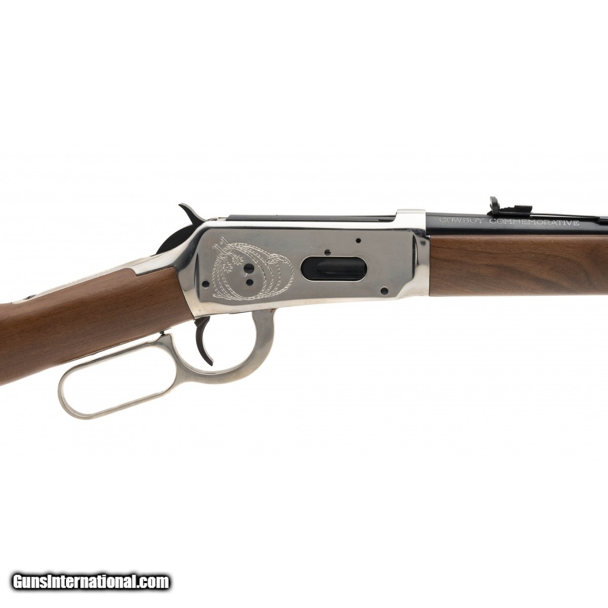 SN:CB27728. Made in 1970. .30-30 Win with a 20"" barrel. Bore is in excellent condition. Commemorative lever action carbine. Engraved Chrome recvier and blued barrel are in excellent condition. Wooden stock with cowboy coin are in excellent condition. Commemorative Winchester commemorating the cowboys of American Overall condition is excellent. Comes with original box. (CONSIGNMENT)
