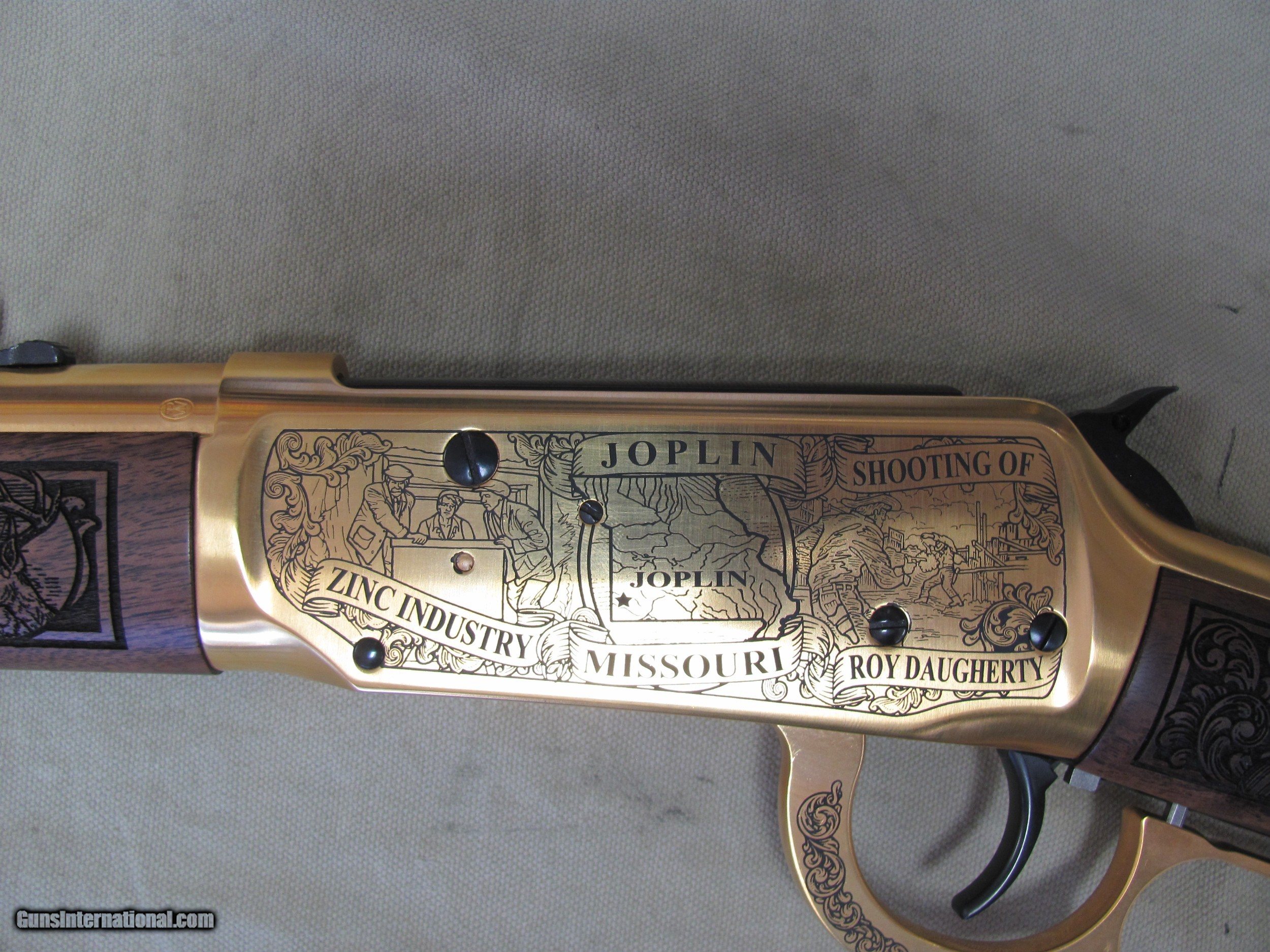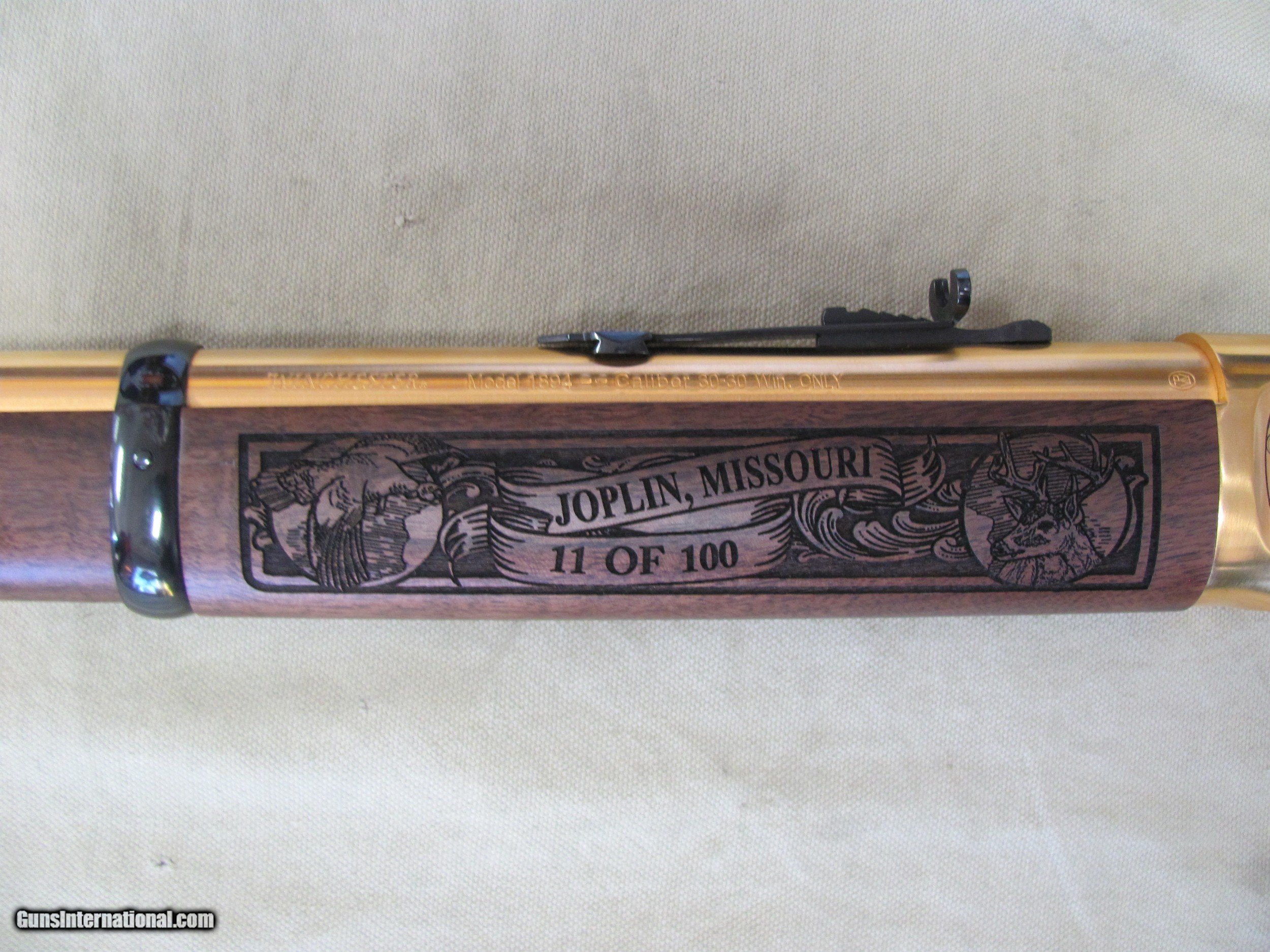 Description: THIS IS A BEAUTIFUL LIMITED #11 OUT OF 100 WINCHESTER 1894 ROUTE 66 30-30 LEVER ACTION CARBINE FEATURING ETCHED AND ENGRAVED SCENES FROM JOPLIN MISSOURI THE BLUE AND GOLD METAL FINISH WOULD GRADE NRA EXCELLENT AS WOULD THE LASER ETCHED WALNUT STOCK AND FOREND UNFIRED THE BORE OF THE 19-1/2” BARREL IS NRA GRADE EXCELLENT THE WIDOW WHO OWNS THIS DISTINGUISHED PIECE CAN NOT FIND THE ORIGINAL BOX. THE CARBONE SPORTS ENGRAVED AND ETCHED SCENES AND NAMES FROM JOPLIN LIKE, "THE CONNOR HOTEL, THE SHOOTING OF ROY DAUGHERTY, THE ZINC INDUSTRY, JOPLIN UNION DEPOT, JASPER COUNTY, ROUTE 66, BONNIE AND CLYDE HIDEOUT, ELLIOT RAINES MOFFETT AND SOME LOCAL GAME THE WIDOW BELIVES IT WAS PURCHASED NEW ON OR ABOUT 2013 BECAUSE THIS IS A CONSIGNMENT GUN WE WILL GIVE NO INSPECTION PERIOD. IF YOU WANT MORE INFO OR MORE PHOTOS ASK “BEFORE” YOU BUY. SHIPPED AS SHOWN WITH NOTHING ELSE UNDERSTAND THAT WE WILL PUT A SIGNATURE ON THE PACKAGE SO IT WON'T GET LEFT ON A PORCH BUYER PAYS A FIXED AMOUNT OF 35.00 INSURED SHIPPING TO THE LOWER MAINLAND STATES. SHIPPING TO ALASKA, HAWAII OR PUERTO RICO WOULD BE 78.00 WE WILL ONLY SHIP THIS GUN TO WHERE LEGAL NO SHIPMENTS OUTSIDE THE USA. MISSOURI RESIDENTS DO PAY A 8.575% SALES TAX. NO EXTRA CHARGE FOR CREDIT CARDS. BRANDON'S GUN TRADING CO LLC 321 EAST 20TH ST JOPLIN MO. 64804 (417)-623-8787 FAX (417)-623-2326 9-5 TUESDAY-SATURDAY CENTRAL TIME WE ARE ALSO CLOSED THE 1'ST SATURDAY OF EVERY MONTH AND HOLIDAYS. INVENTORY REFERENCE : CONSIGNMENT PLEASE NOTE, UPS SERVICE HAS GOTTEN SO BAD UNDER CURRENT MANAGEMENT THAT WE WON’T SHIP UPS UNLESS WE ABSOLUTELY HAVE TOO. WHEN WE DOUBLE PACK, INSURE, ADD SIGNATURE, USE GOOD BOXES AND UPS EVEN NOTES THEY DAMAGED THE ITEM AND THEY STILL WONT PAY. ALSO, ANY INSURANCE WE DO PUT ON OUR PACKAGES IS VOID IF YOU OR YOUR DEALER THROWS AWAY THE BOX, ANY PACKING MATERIALS OR FAILS TO PICTURE AND NOTIFY US AND THE SHIPPING COMPANY IMMEDIATELY SOLD Rifle Caliber: .30-30 Winchester Manufacturer: MIROKU IMPORTED BY BROWNING Model: 1894 Barrel Length: 19-1/2 Condition: EXCELLENT Metal Condition: EXCELLENT Wood Condition: EXCELLENT Bore Condition: EXCELLENT Item Location: JOPLIN MO |
