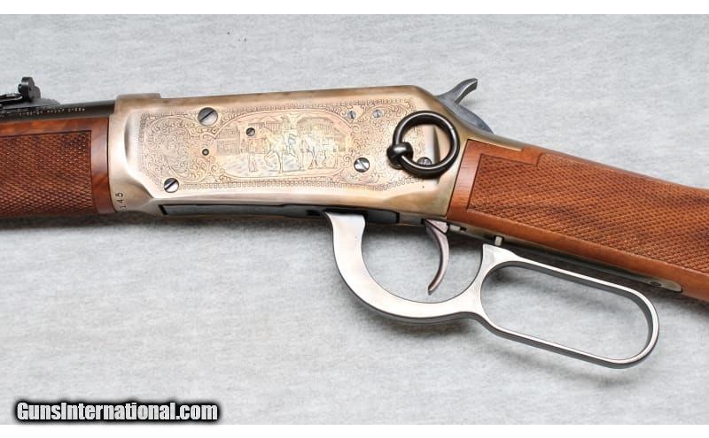 Description: Appears as new with original box. Classic Commemorative Winchester .30-30 lever rifle with 16" barrel, premium wood, and engraved reciever. An excellent choice for Winchester collectors or Old West fans. .30-30 Winchester SOLD Chambers: Lever action Metal Condition: As new Wood Condition: As new Barrels: 16 Triggers: Factory Stock Dimensions: 13 Fore End: Checkered Butt Pad: Curved metal butt plate Sights: Iron sights Item Location: La Vista, NE |