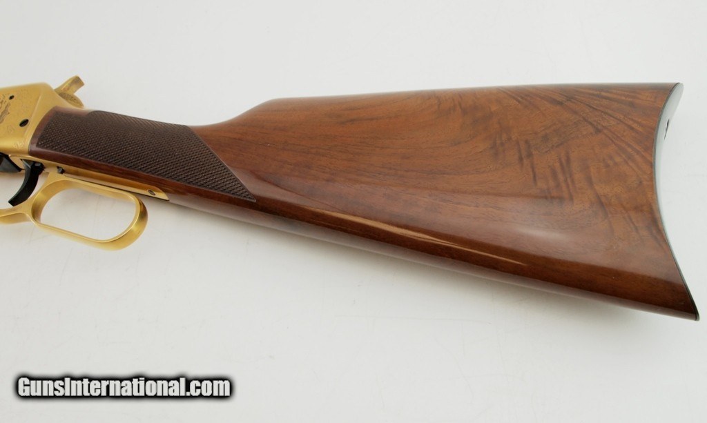 Description: Winchester 1894 Limited Edition II MFG 1979 1500 Produced .30-30, 20" barrel, blued finish, adjustable buck horn rear sight, fixed front sight, beautiful gold plated engraved receiver - trigger - hammer, "Limited Edition II by Winchester" in gold on right side of barrel, premium checkered walnut straight stock - forearm, metal butt plate, very light handling marks, blue felt lined walnut presentation case, and paperwork. Add 3% for Credit Card Shipping $40.00 SOLD |