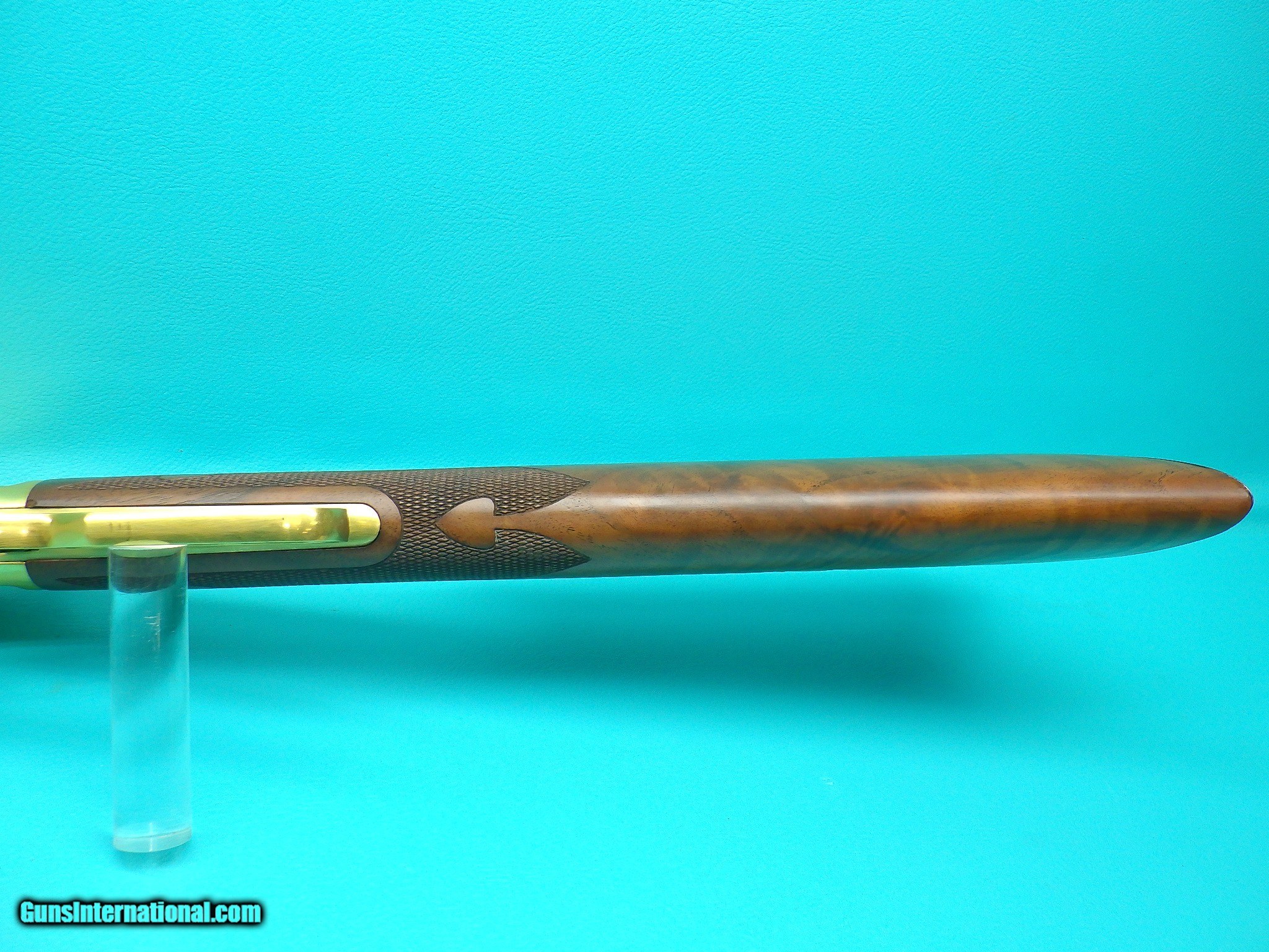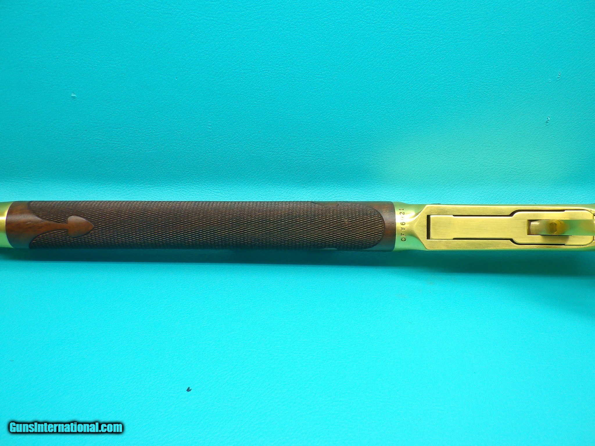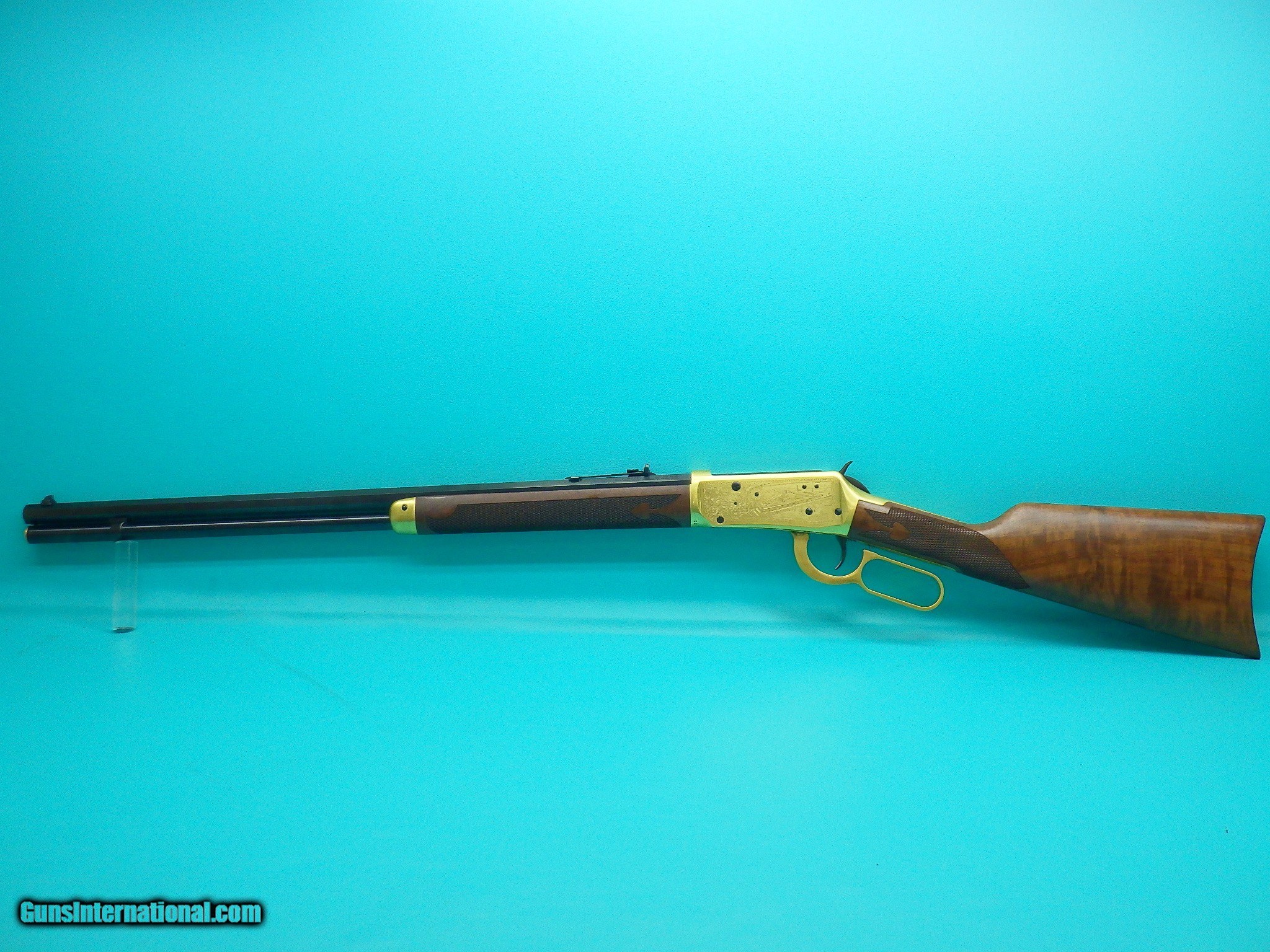 Description: ***SOLD***Winchester 1894 Oliver F Winchester commemorative .38-55Win 24" barrel rifle made in 1980. It features Winchester's tried and true lever action, octagon barrel, gold plated receiver with Winchester factory scene on one side & early frontier scenes on the left with W.R.A. Co. scroll, Oliver Winchester gold inlay signature on the barrel, medallion 1810-1880 in the butt stock, other gold accents on the lever & magazine tube cap, high polish blued finish, adjustable rear sight with blade front, with a fancy checkered walnut stock and forend. The finish is in excellent shape with some very minor handling marks. The action is smooth with strong ejection. The barrel has sharp rifling with a shiny bore. Great for any collector! We do not have the factory box. Please refer to the photos for the overall condition. FFL is required. Shipping is $100.00.***SOLD*** SOLD Rifle Caliber: .38-55 Winchester Manufacturer: Winchester Model: 1894 Oliver Winchester Commemorative Serial Number: OFW6921 |