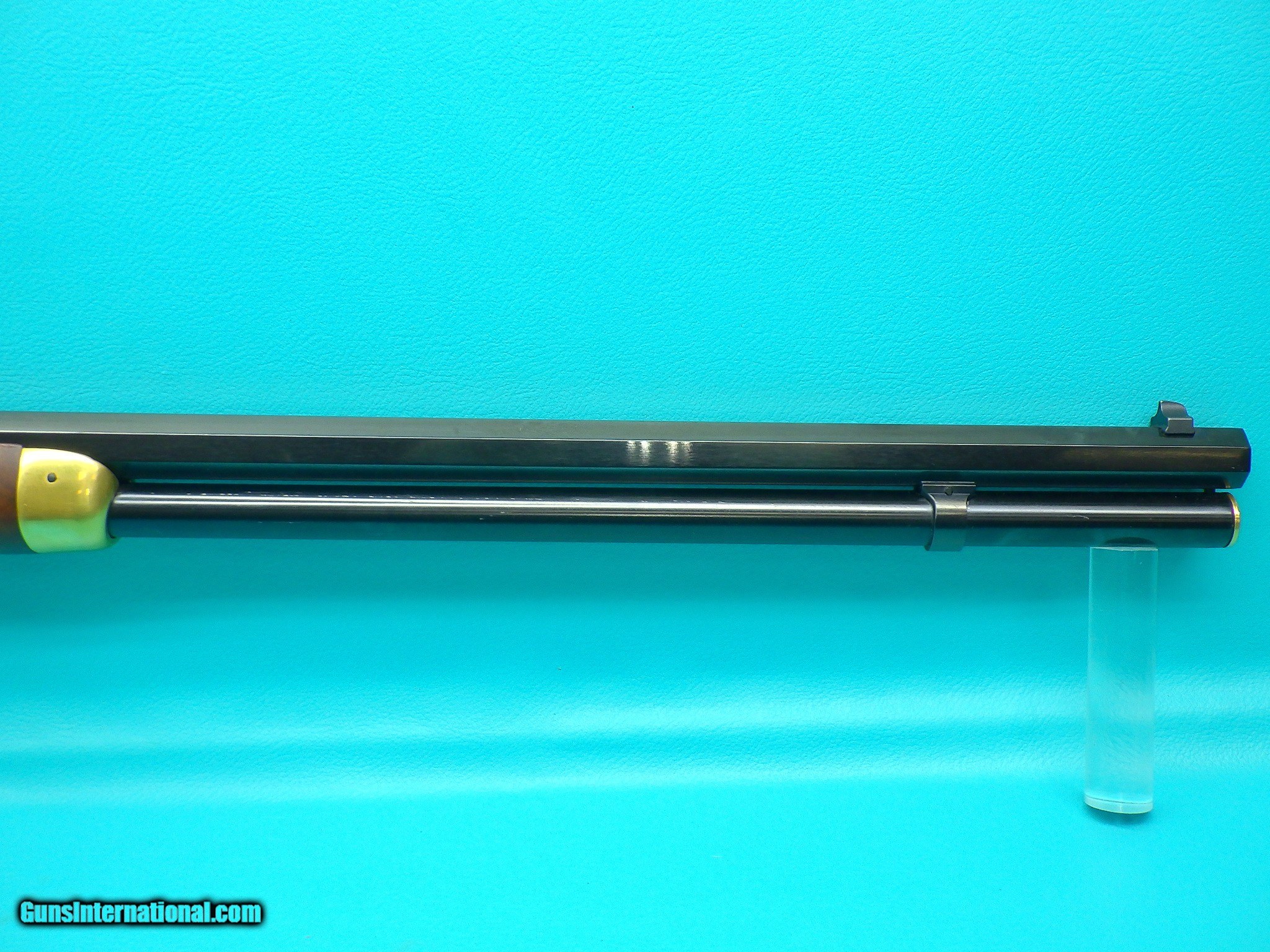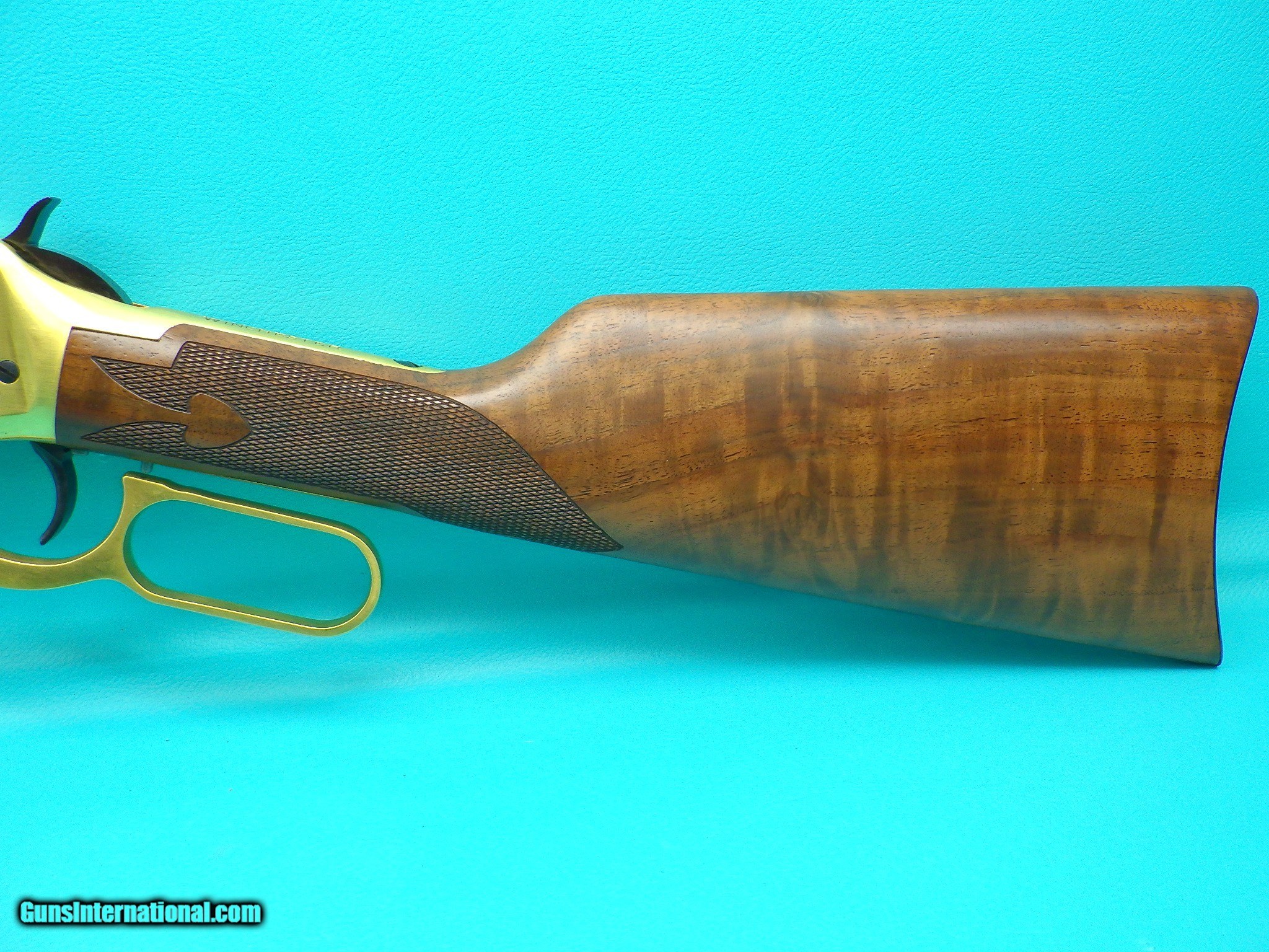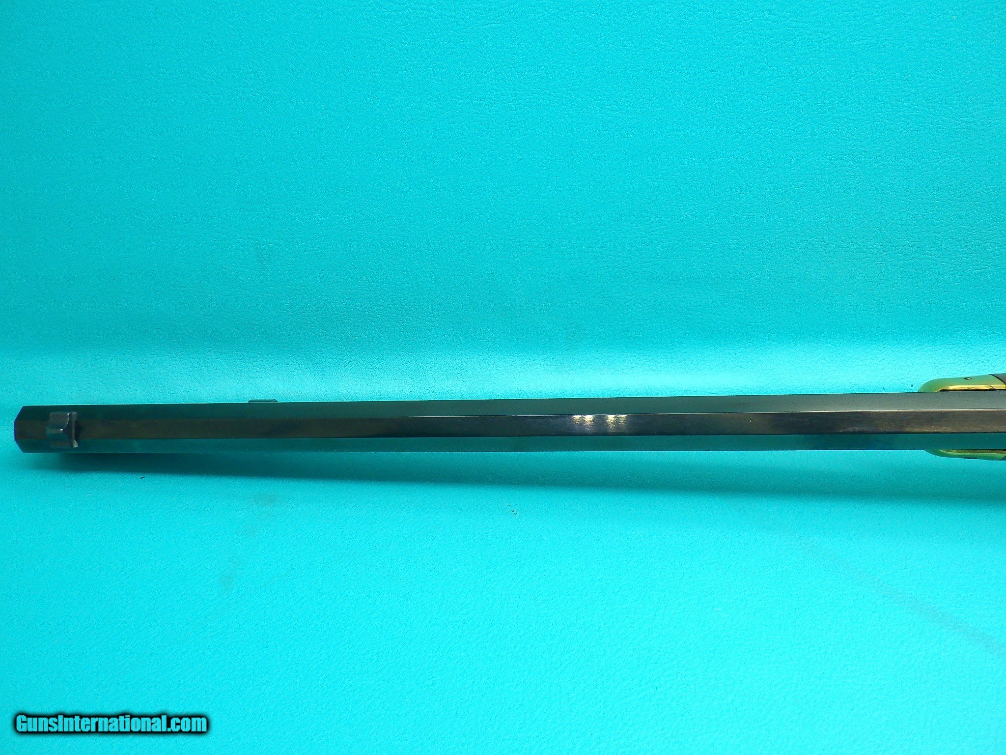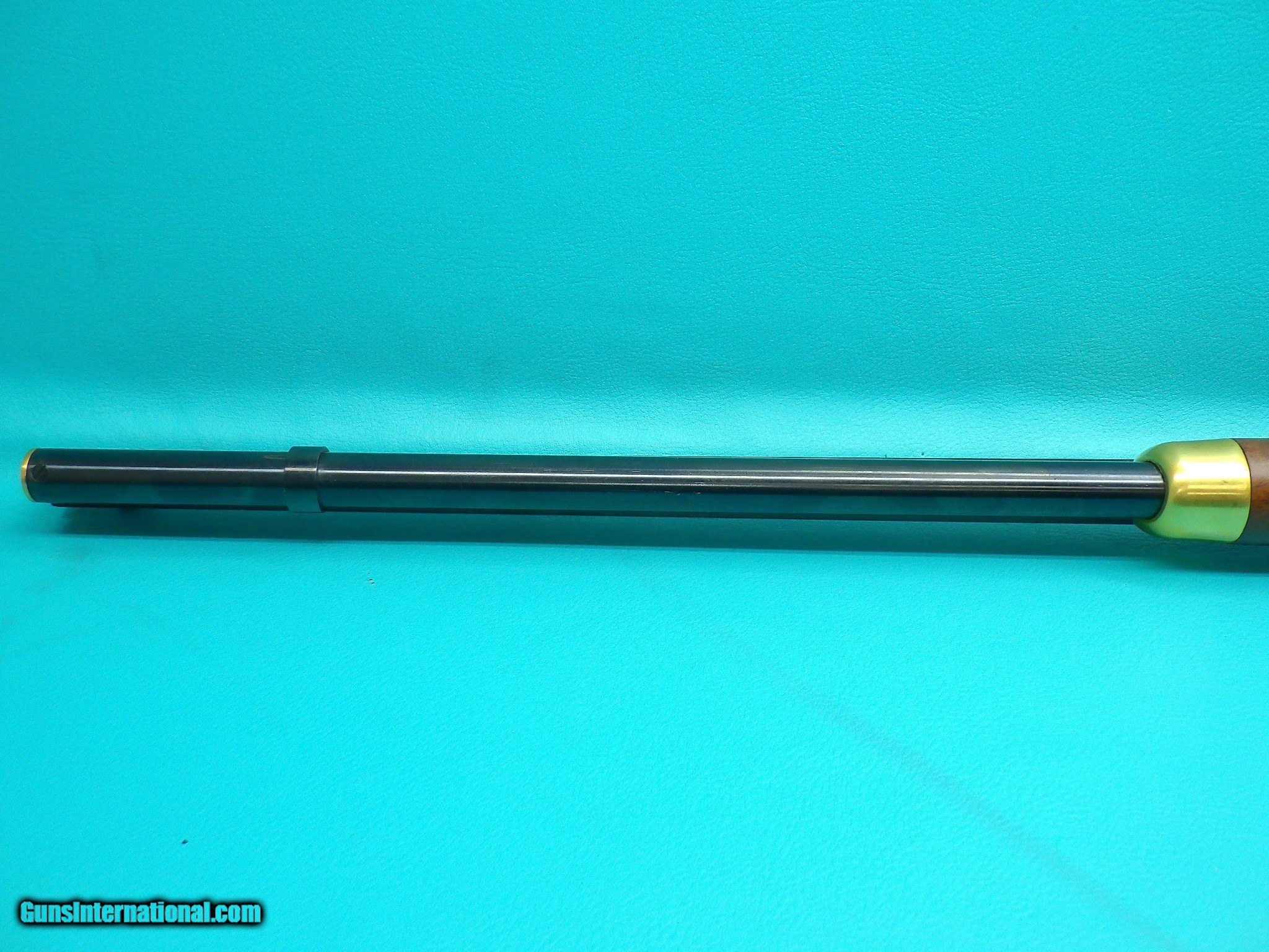 Description: ***SOLD***Winchester 1894 Oliver F Winchester commemorative .38-55Win 24" barrel rifle made in 1980. It features Winchester's tried and true lever action, octagon barrel, gold plated receiver with Winchester factory scene on one side & early frontier scenes on the left with W.R.A. Co. scroll, Oliver Winchester gold inlay signature on the barrel, medallion 1810-1880 in the butt stock, other gold accents on the lever & magazine tube cap, high polish blued finish, adjustable rear sight with blade front, with a fancy checkered walnut stock and forend. The finish is in excellent shape with some very minor handling marks. The action is smooth with strong ejection. The barrel has sharp rifling with a shiny bore. Great for any collector! We do not have the factory box. Please refer to the photos for the overall condition. FFL is required. Shipping is $100.00.***SOLD*** SOLD Rifle Caliber: .38-55 Winchester Manufacturer: Winchester Model: 1894 Oliver Winchester Commemorative Serial Number: OFW6921 |