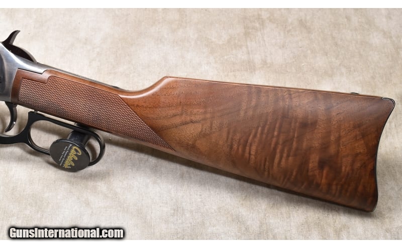 Description: Built to commemorate the Wells, Fargo, and Co., 125th Anniversary, Winchester chose best wood, and workmanship for these rifles. They feature highly figured stocks, and blue metal parts. The receiver is lightly blued to simulate usage by the coach guard. We tend to think of the Wells Co as a banker and an investment , but in the days of the old west, the company was a shipper of high value goods as well as money. They can be thought of as a cross between the Federal Express and Brinks armored cars. Their deliveries were the lifeblood of commerce all over the West. This made them an attractive target for all kinds of badness, and they were armed to defend their cargo. .30-30 Winchester SOLD Chambers: 7 rounds Metal Condition: AsNIB. Wood Condition: AsNIB. Bore Condition: AsNIB. Barrels: 20 inches Triggers: Factory trigger. Stock Dimensions: LOP: 13-1/4 inches Fore End: Matching high grade walnut with lots of figure. Butt Pad: Curved steel plate. Weight: 6 lb - 7 oz. Sights: Post and notch iron sights. Item Location: Rogers |