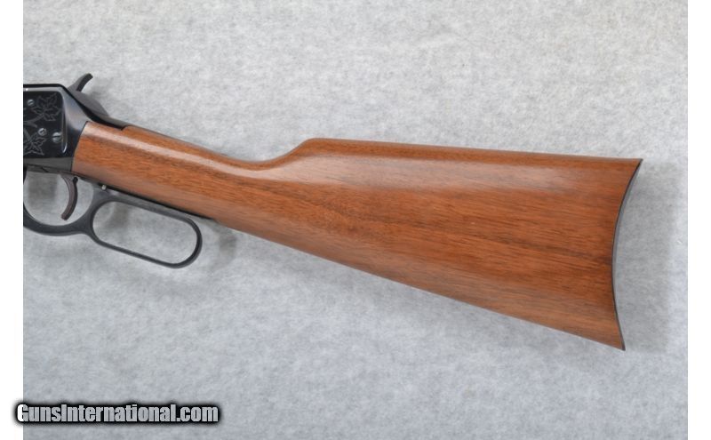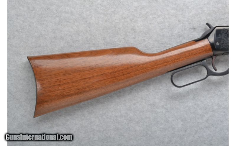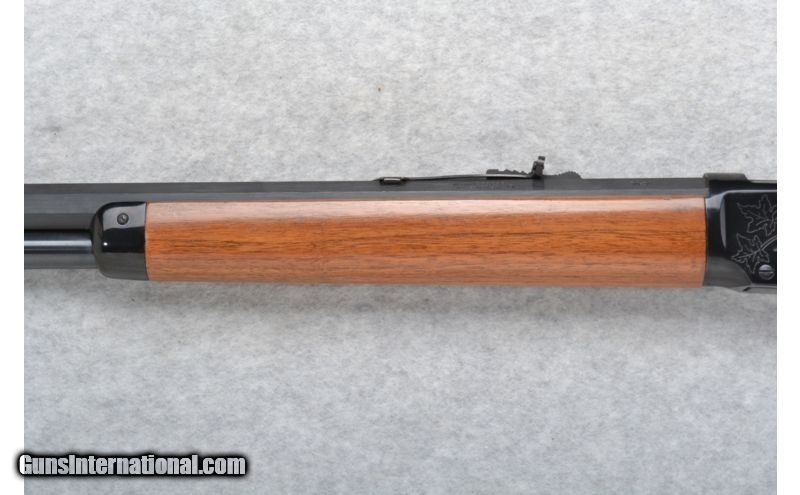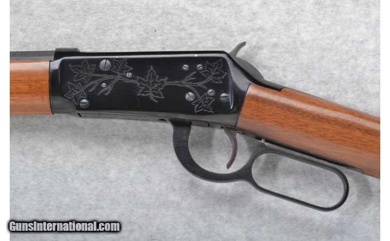 Description: Top tang has CANADIAN CENTENNIAL '67 in gold. Barrel right side has CANADIAN CENTENNIAL 1867 - 1967 in gold. Both sides of the receiver has Maple leaves on branch engraved. SOLD Caliber Info: .30-30 Win. Chambers: Full tube magazine. Metal Condition: Excellent. A couple minor handling marks. Wood Condition: Excellent with some minor handling marks. Bore Condition: Excellent. Barrels: 26 inch octogon. Stock: Smooth walnut straight stock. Stock Dimensions: LOP 13 1/2 inches. Fore End: Smooth walnut with a black metal tip. Butt Pad: Smooth black steel crescent. Weight: 7 lbs. 14 oz. Sights: Short blade front. Adjustable middle. Item Location: Richfield, WI |