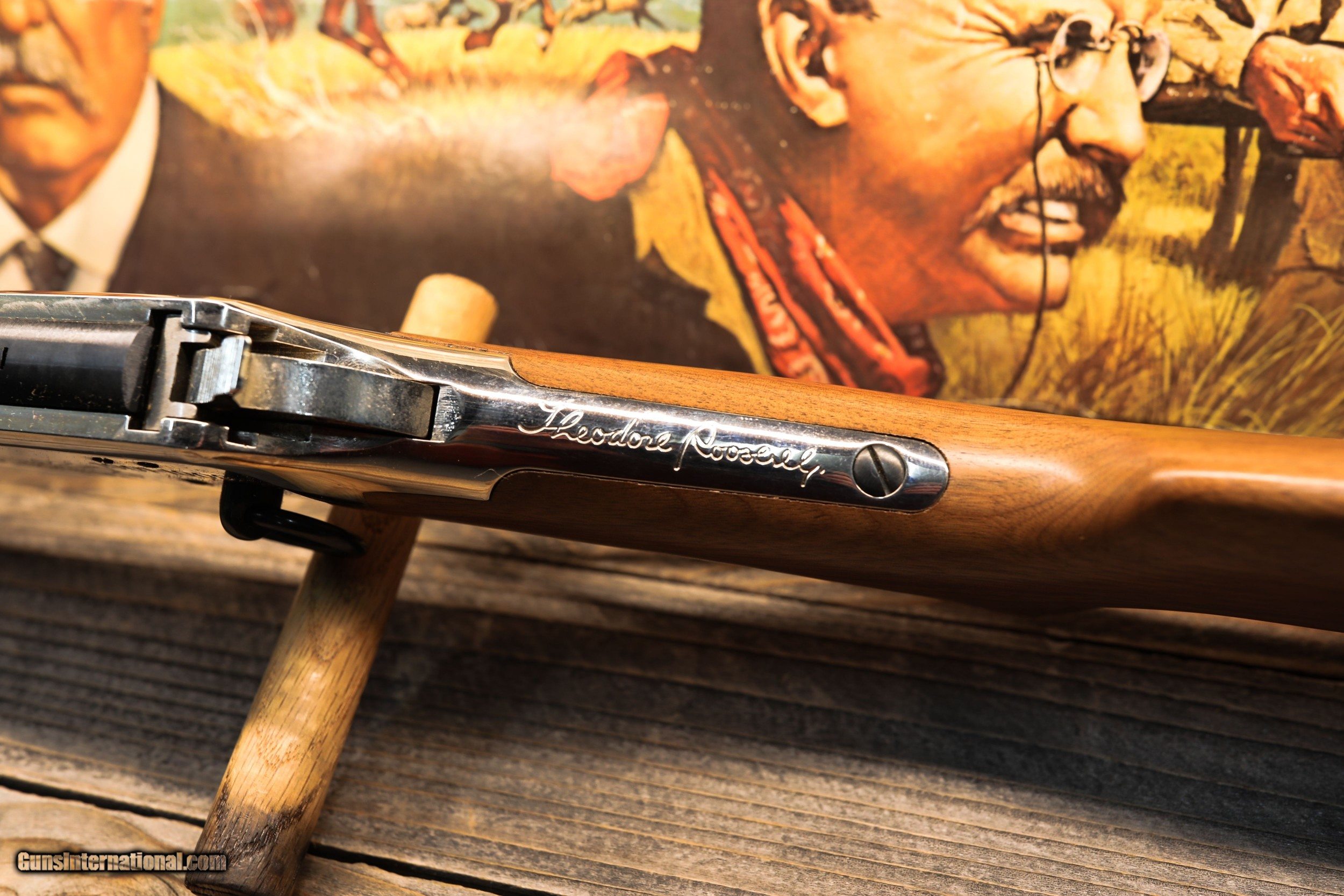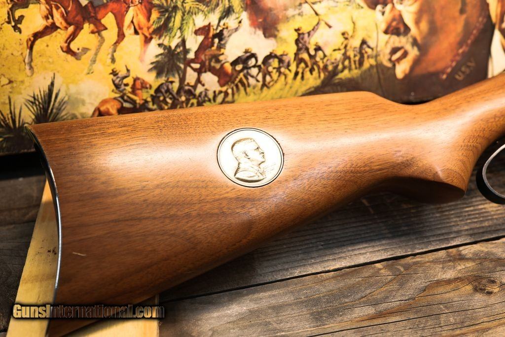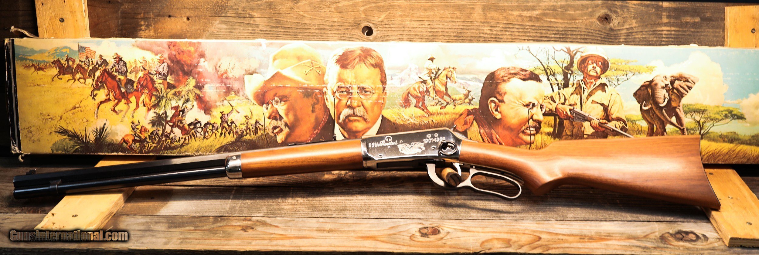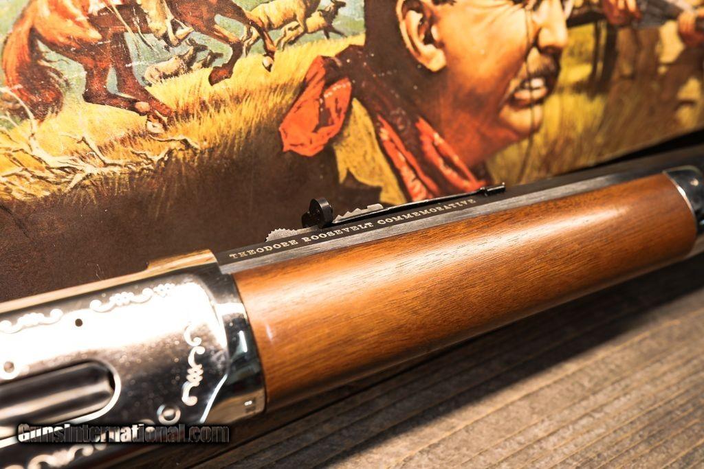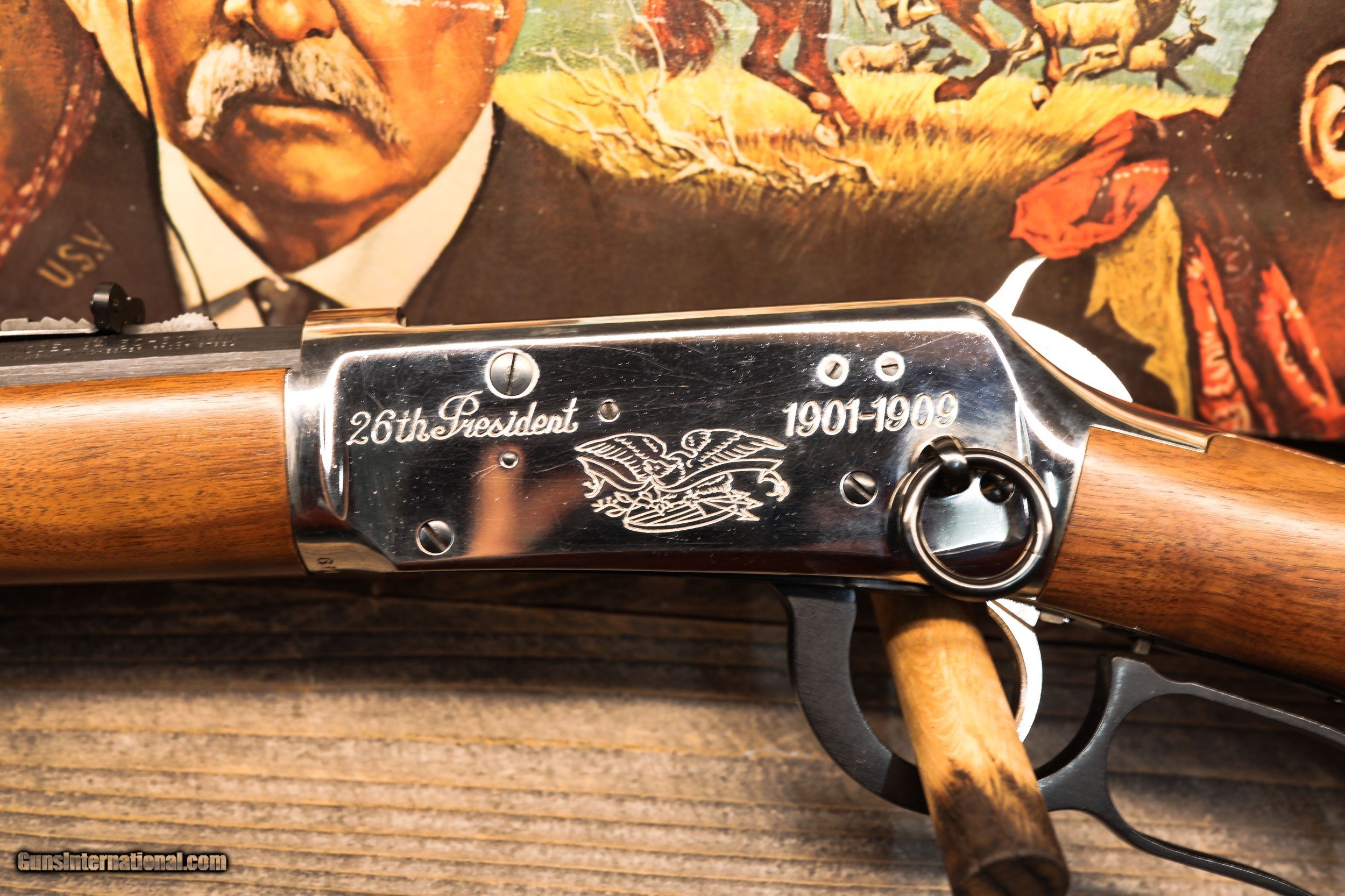Description: Winchester 94 30-30 Theodore Roosevelt Commemorative With Commemorative Box At this time, we do not sell or ship firearms to NY, NJ, CA, or HI. SOLD Rifle Caliber: .30-30 Winchester Manufacturer: Winchester Model: 94 Serial Number: TR7449 Condition: Excellent Metal Condition: Excellent Wood Condition: Excellent |