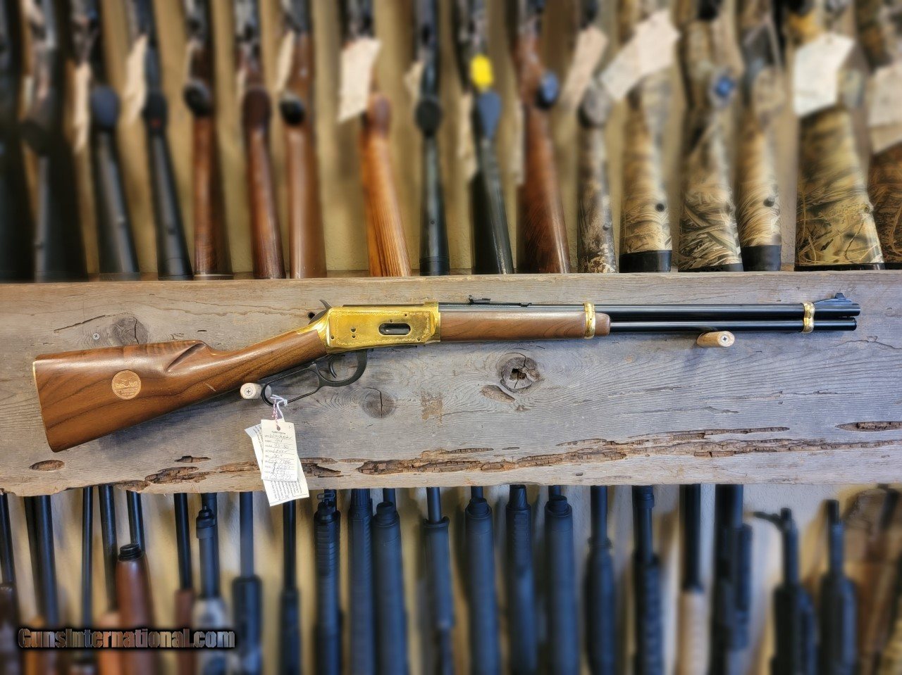 Description: C3-377 WINCHESTER ???????94 30-30 GOLDEN SPIKE COMMEMERITIVE THE RECIEVER AND BAREL BANDS ARE GOLD PLATED THIS RIFLE WAS PRODUCED IN 1969 SOLD Curio/Relic: Yes Rifle Caliber: .30-30 Winchester Manufacturer: WINCHESTER Model: 94 Serial Number: GS7786 Barrel Length: 20 Condition: GREAT Action: LEVER |