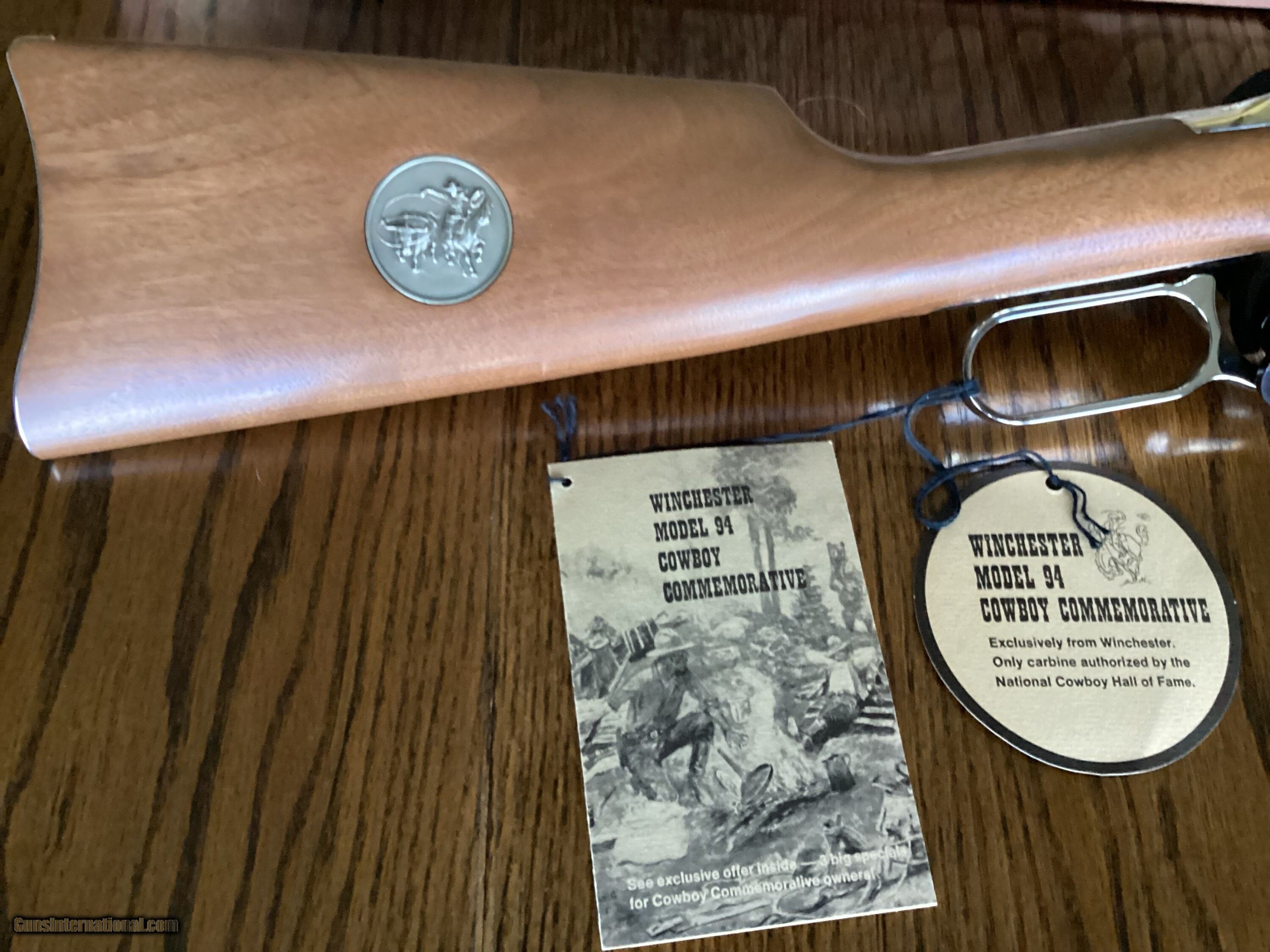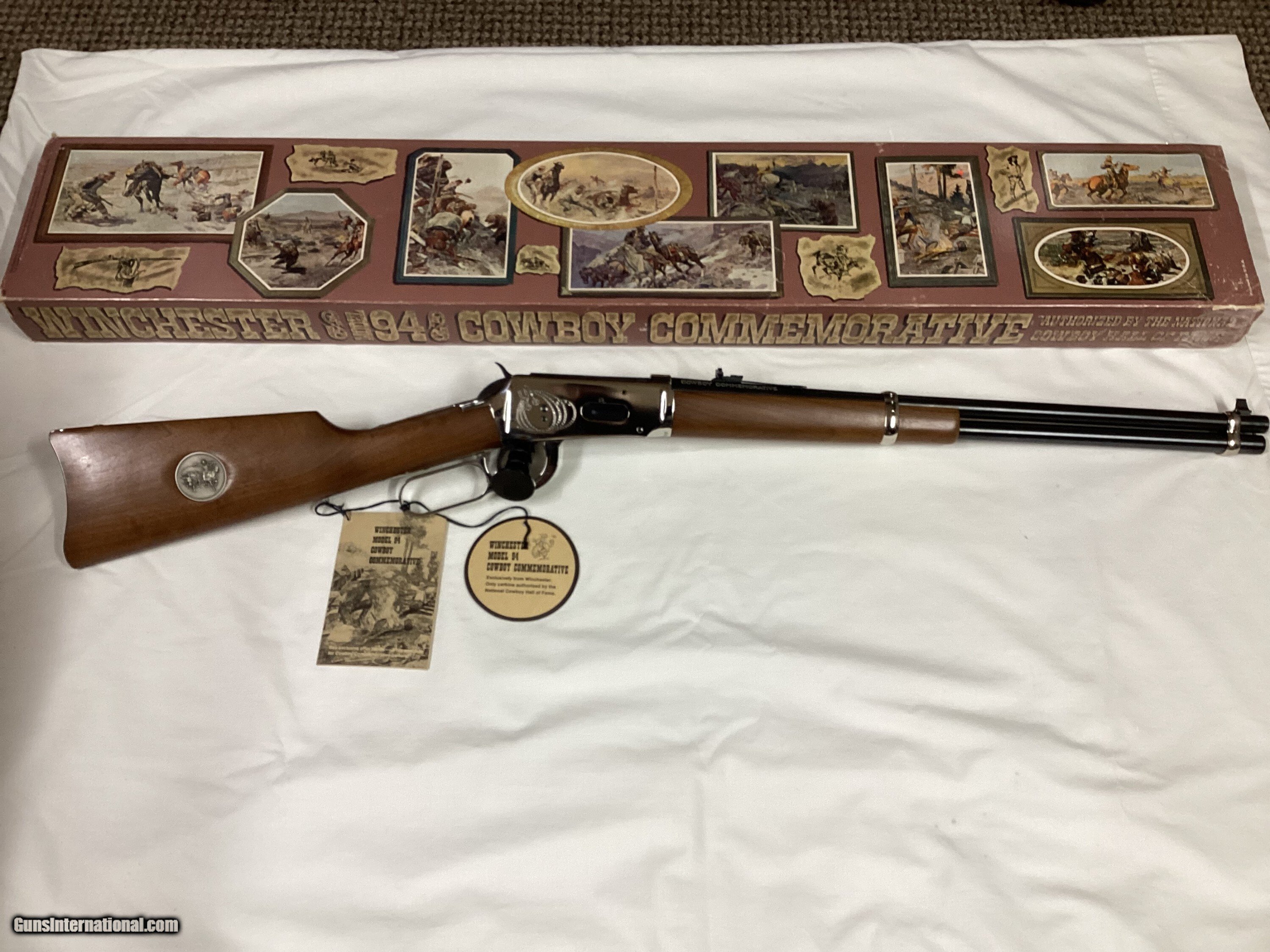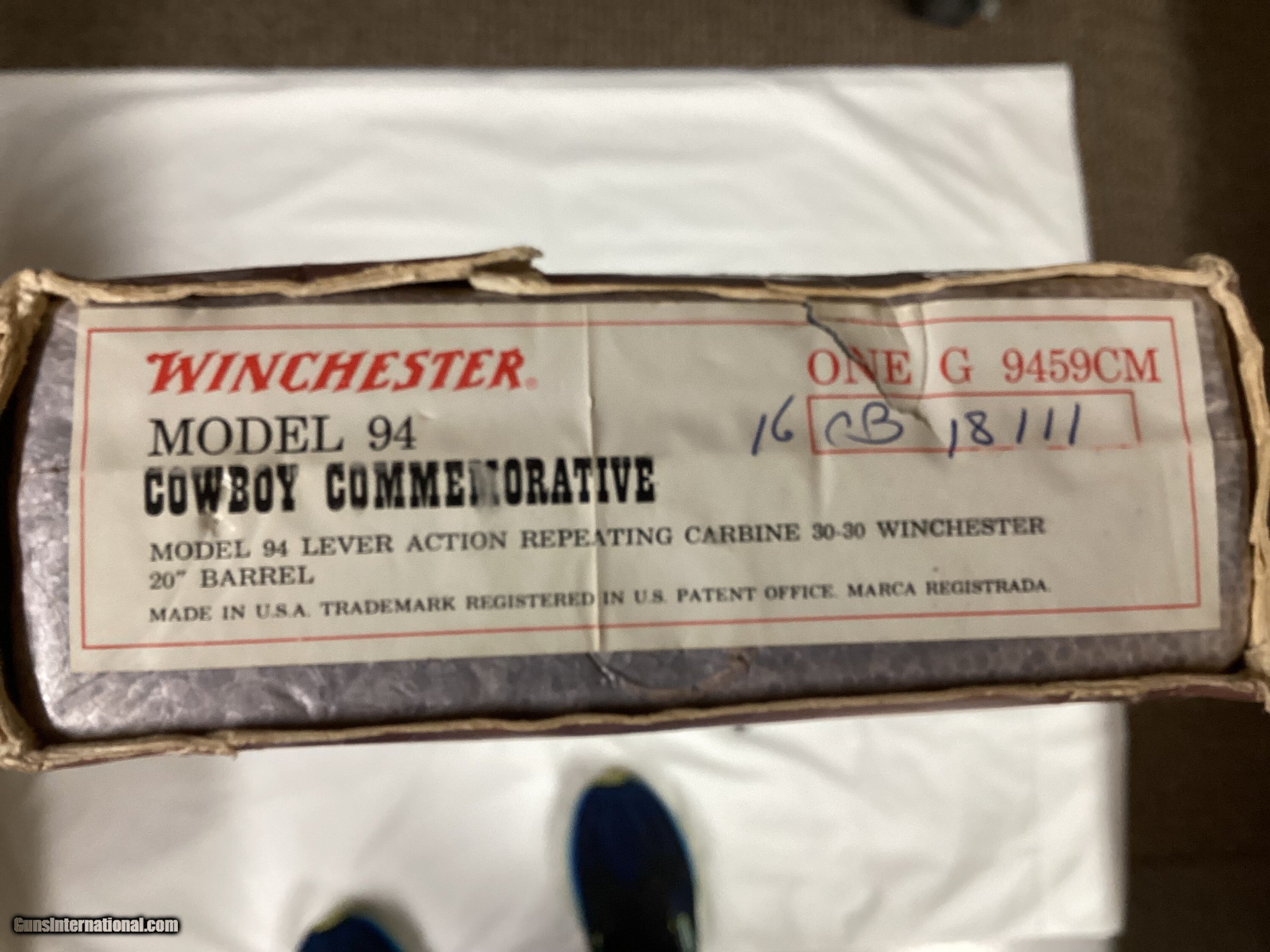 Description: WINCHESTER MODEL 94 COWBOY COMMEMORATIVE LEVER ACTION REPEATING CARBINE 30-30 WINCHESTER NEW IN THE BOX NEVER FIRED MANUF DATE1970 HALL OF FAME ASKING 1600 + ACTUAL SHIPPING COASTS TO YOUR FFL DEALER. IF INTERESTED YOU CAN CALL OR EMAIL ME. Rifle Caliber: .30-30 Winchester Manufacturer: WINCHESTER Model: 94 Barrel Length: 20'' Condition: 100% Metal Condition: 100% Wood Condition: 100% Action: LEVER Price: $1,600.00 Contact Seller |