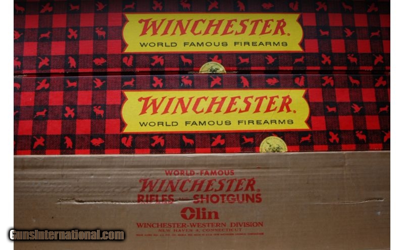 Description: This Winchester Canadian Centennial Rifle/Carbine Set is as new in box. Both have Maple leaf roll stamping the both sides of the receiver and a nice gloss finish on the walnut stock and forearm. This set has been in a warehouse since 1967 in a sealed box. Any marks you see on the gun are nothing more than dry oil. This is a consecutive serial numbers set. SOLD Manufacturer: 1967 Caliber Info: .30-30 Win Chambers: Lever action repeaters. Metal Condition: ANIB. Wood Condition: ANIB. Bore Condition: ANIB. Barrels: Carbine 20 inch Octagon with sights, Rifle 26 inch Octagon with sights. Triggers: Both have a single blue trigger. Stock: Both have very nice straight grain walnut with a gloss finish. Fore End: Both have matching walnut with a steel cap. Butt Pad: Both have crescent steel. Sights: Both have adjustable rear with elevator and a blade front. Extras: Both have the factory box, paperwork, hangtag. Also comes with a single outer shipping box. Item Location: Owatonna, MN |