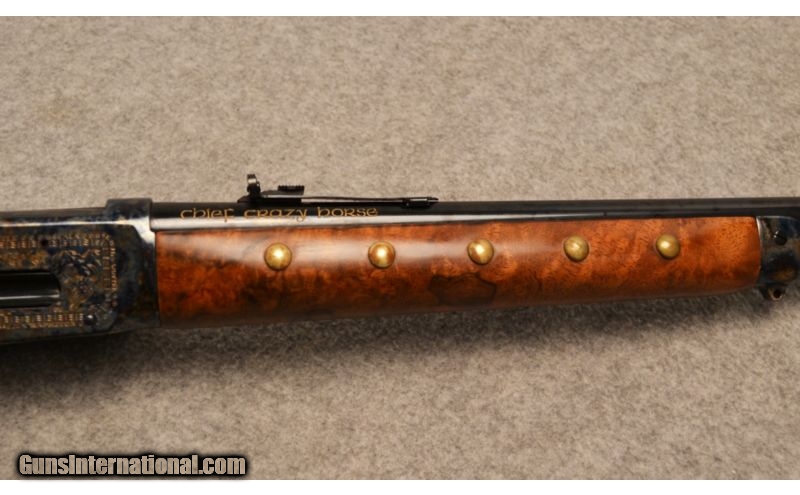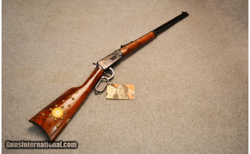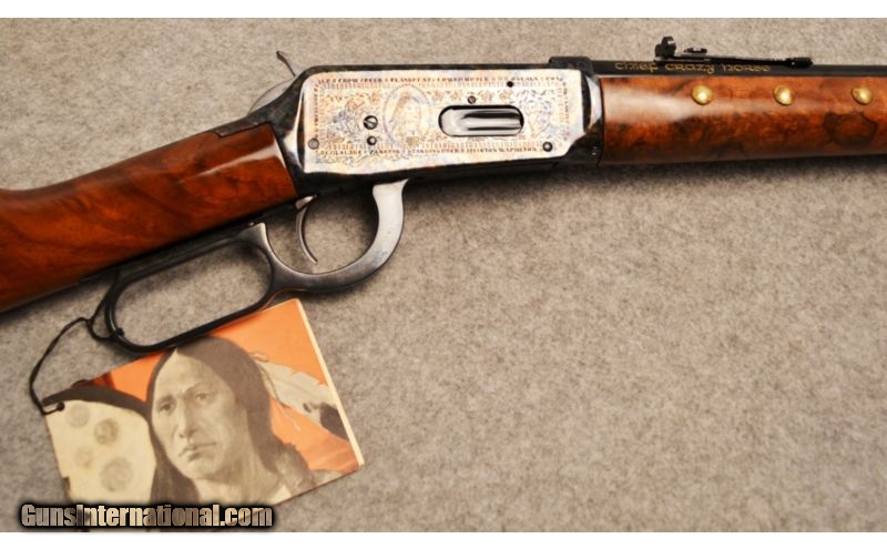 Description: Winchester Model 94 Crazy Horse Commerative in 38-55 With Original Box. SOLD Caliber Info: 38-55 Metal Condition: Excellent Wood Condition: Excellent Bore Condition: Shiny and Bright Barrels: 24 Inch Round Barrel Triggers: Factory Trigger Stock: Walnut Stock with Crazy Horse Medallion and Decorative Brass Tacks Fore End: Walnut Stock with Decorative Brass Tacks Butt Pad: Metal Butt Pad Weight: 6 Lbs 10 Oz Sights: Factory Iron Sights Extras: Firearm Is In Excellent Condition With Very Few Handling Marks On Wood And Metal, With Original Box. Item Location: Rogers, AR |