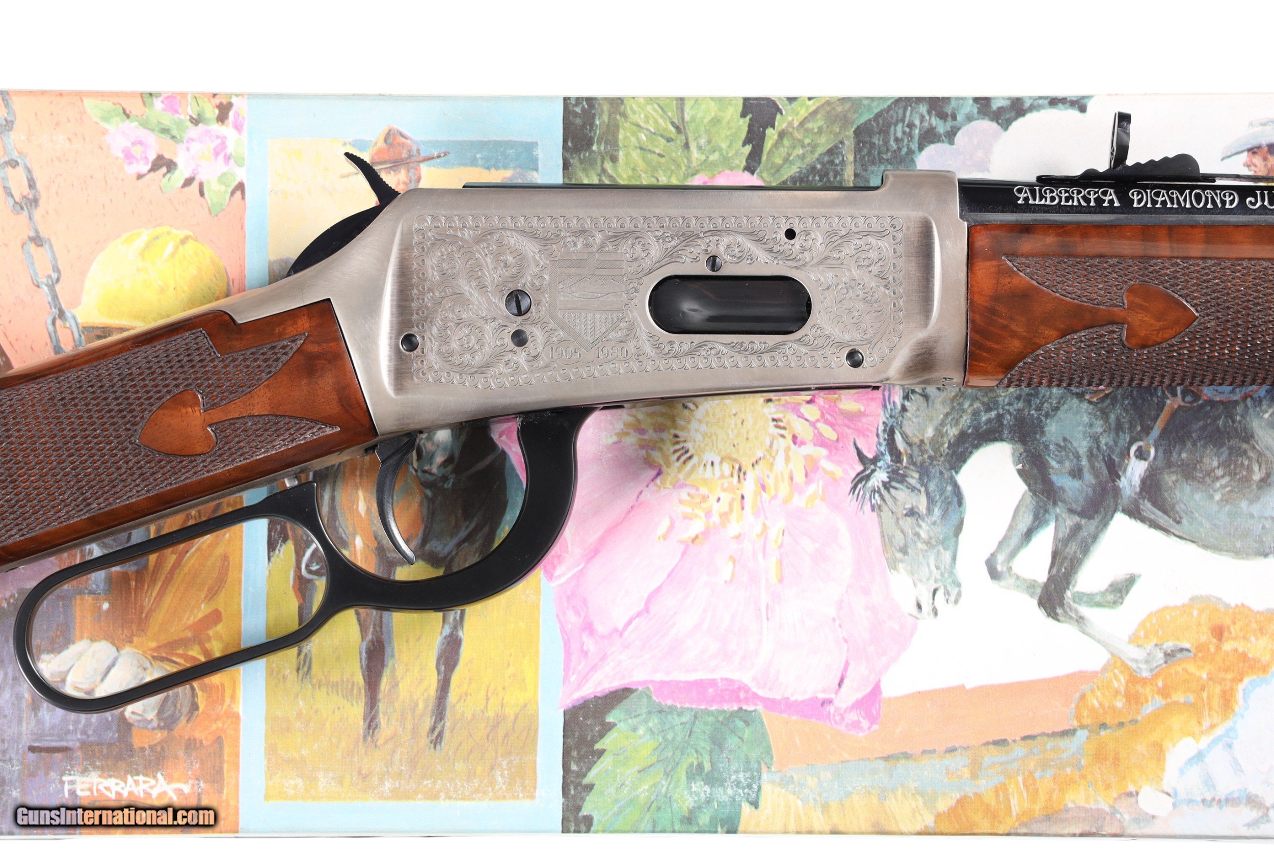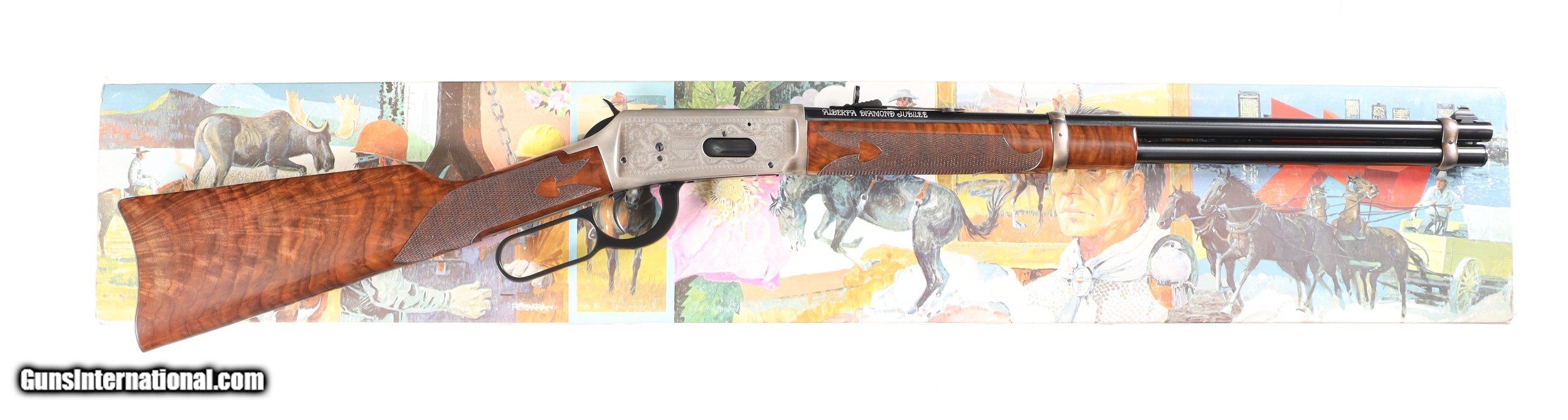 Description: Alberta Diamond Jubilee Commemorative in excellent plus overall condition, appears unfired, Commemorative Firearms Ltd. import marked. With matching factory box and papers. • Free Shipping, No Credit Card Fees. • Lay-a-way available for this firearm. • 1/3 Down, a 1/3 in 30 Days 1/3 in 60 Days. SOLD Curio/Relic: Yes Manufacturer: Winchester Model: 94 Serial Number: ADJ99 Barrel Length: 20 |